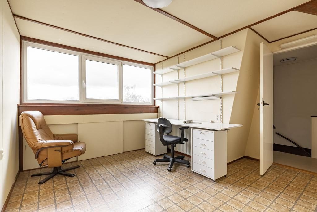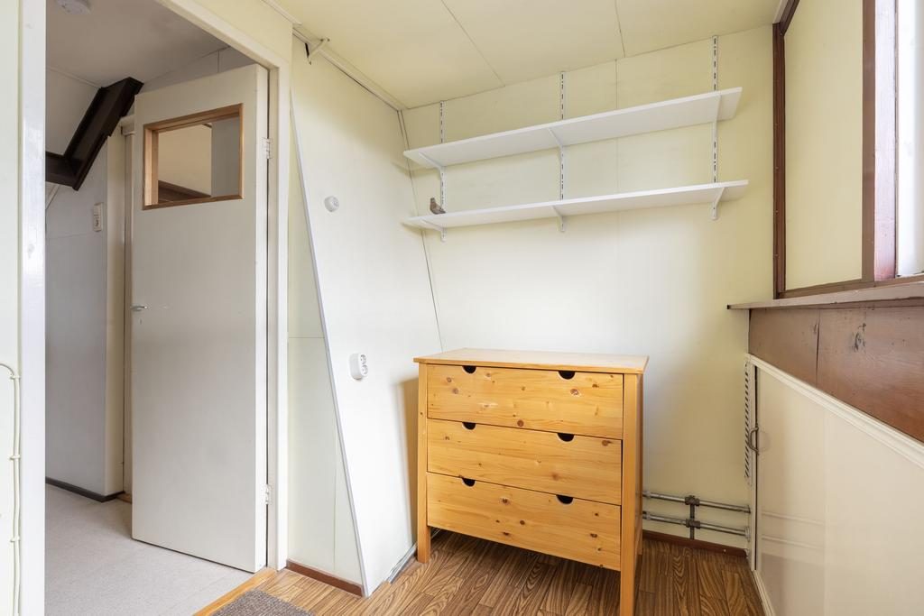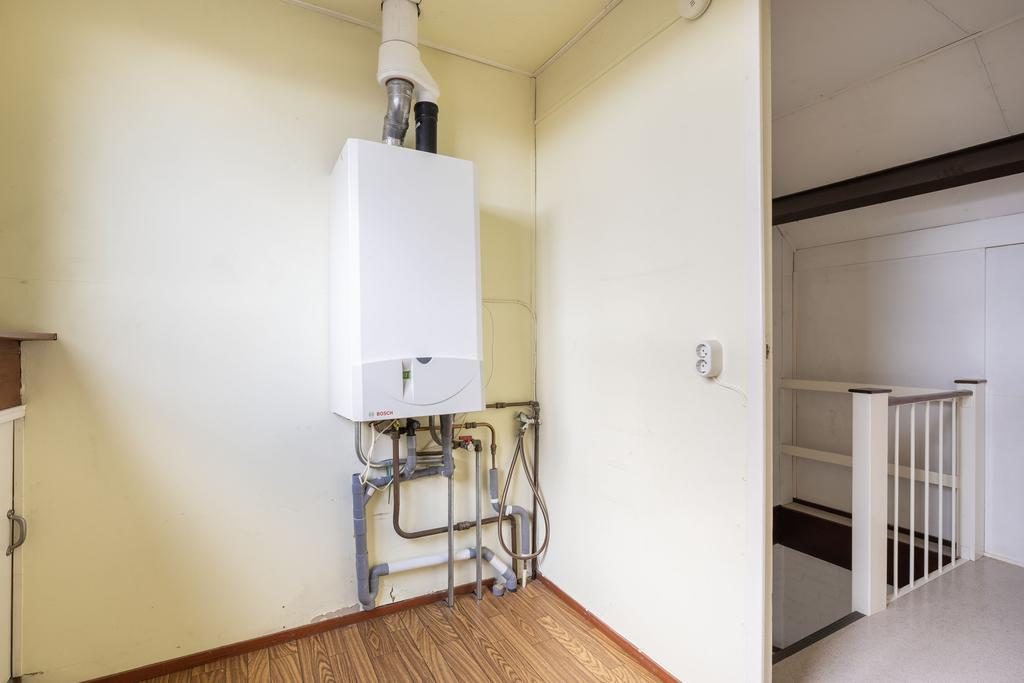 Op de tweede verdieping, welke is voorzien van een groot dakkapel aan de achterzijde, beschik je over een vierde (slaap)kamer, wasruimte en bergruimte achter het knieschot. In de wasruimte van circa 5m² is de C.V. ketel opgesteld en beschik je over een witgoed aansluiting. Ideaal op deze verdieping is de bergruimte achter het knieschot waar genoeg ruimte is voor seizoensgebonden spullen, koffers etc.
