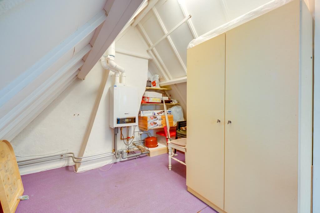 De zolder herbergt de C.V.-opstelling en beschikt over een vierde kamer met een dakraam. Momenteel wordt deze zolderverdieping niet meegerekend als woonoppervlakte van de woning, maar biedt wel extra ruimte en mogelijkheden.