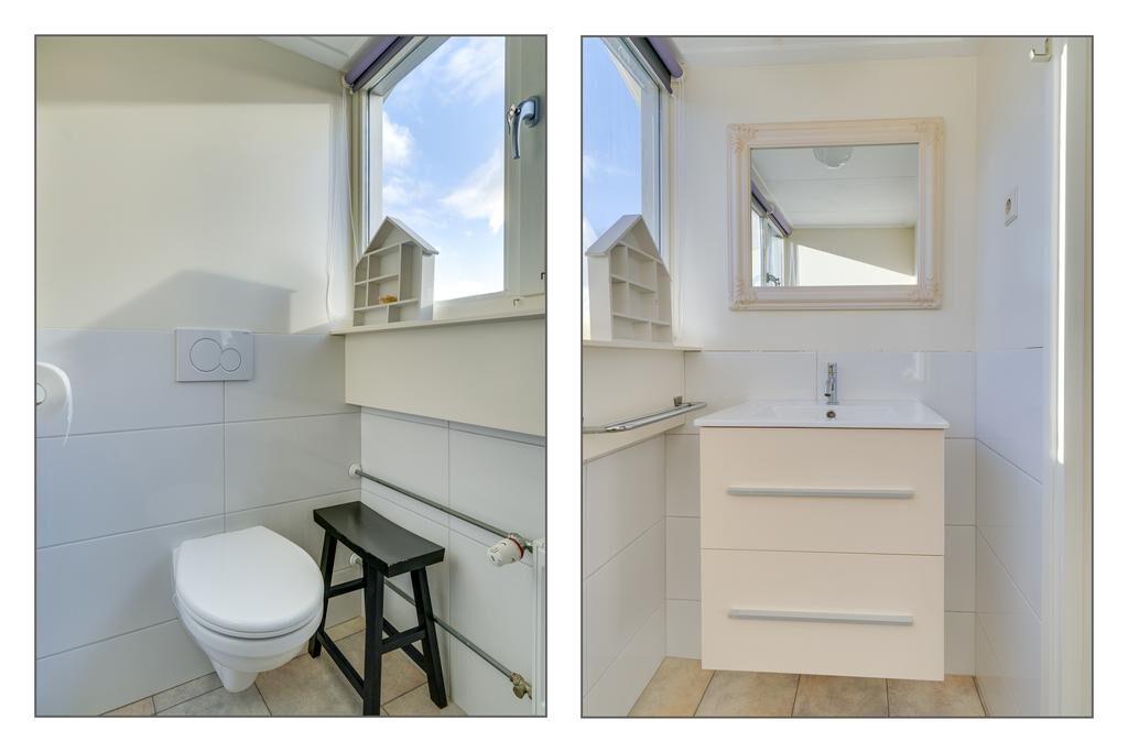 Tevens beschik je op deze verdieping over een ruime toiletruimte met wastafelmeubel. De overloop biedt toegang tot de zolder via een vaste steektrap, wat extra opslagruimte of de mogelijkheid voor extra slaapkamers biedt.