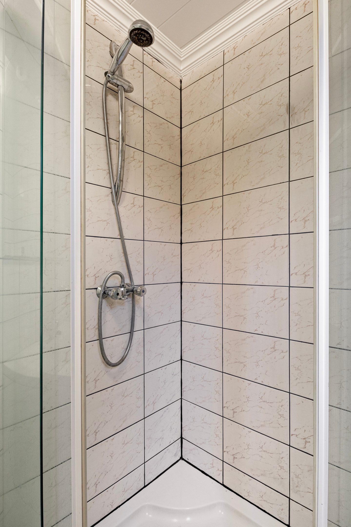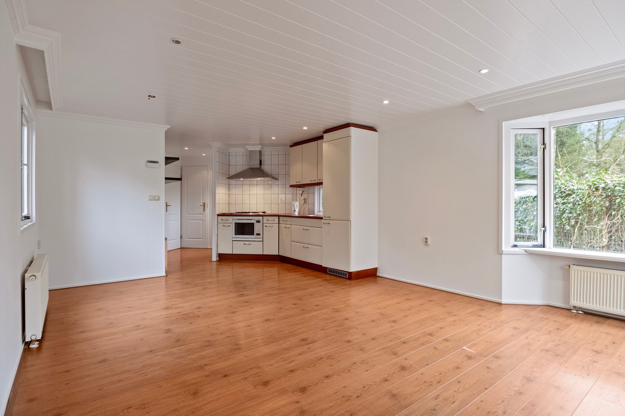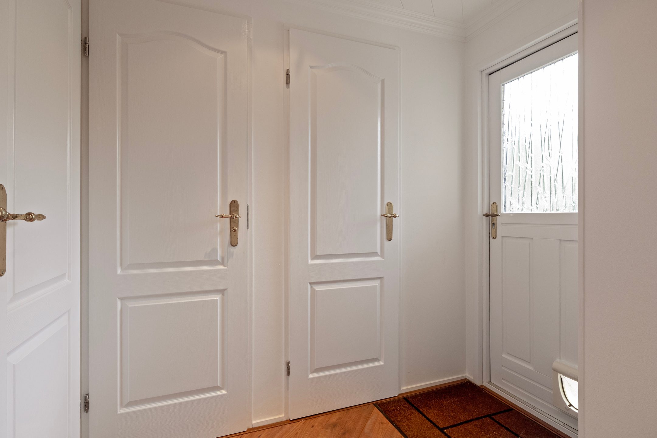 Entree/hal met toegang tot de woonkamer met open keuken, 2 slaapkamers en de badkamer met toilet, douche en wastafel. De grootste slaapkamer is voorzien van een vaste kastenwand.