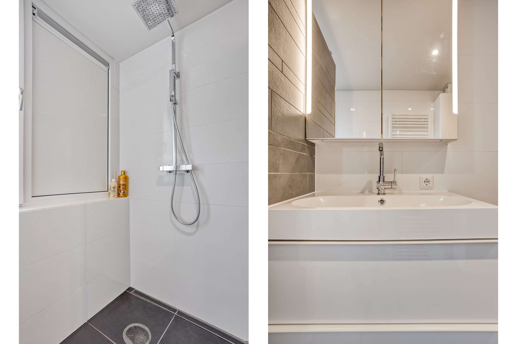 Via de trap bereik je de tweede verdieping, waar je toegang hebt tot de slaapkamers en de badkamer. Deze verdieping beschikt over drie slaapkamers, van circa 14 m², 11 m² en 10 m². De ouderslaapkamer is bovendien voorzien van een wastafel met ladekast. Alle kamers zijn uitgerust met airconditioning die zowel kan koelen als verwarmen, kunststof kozijnen en HR+++ glas, wat zorgt voor comfort en energiezuinigheid. De moderne badkamer (2017) ligt aan de achterzijde en is volledig betegeld. Deze is uitgerust met een ruime inloopdouche, wastafelmeubel, zwevend toilet, hoge kast en een designradiator. Het glas in de badkamer is melkglas HR++ en er is toegang tot de mechanische ventilatie.