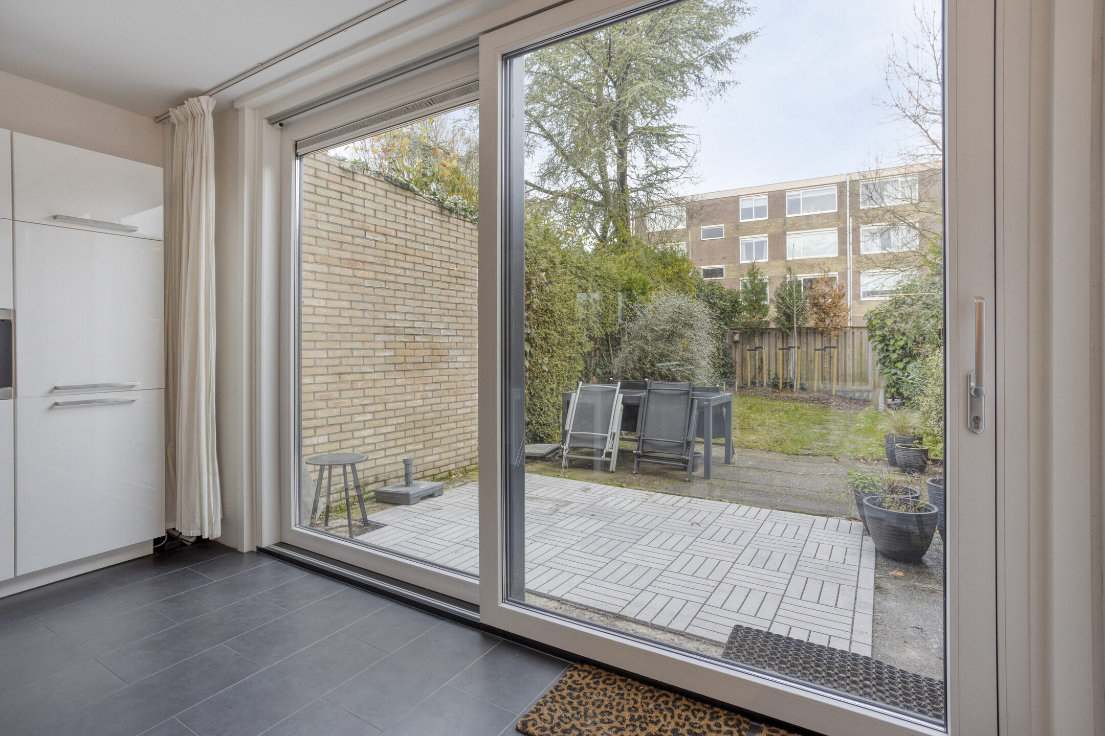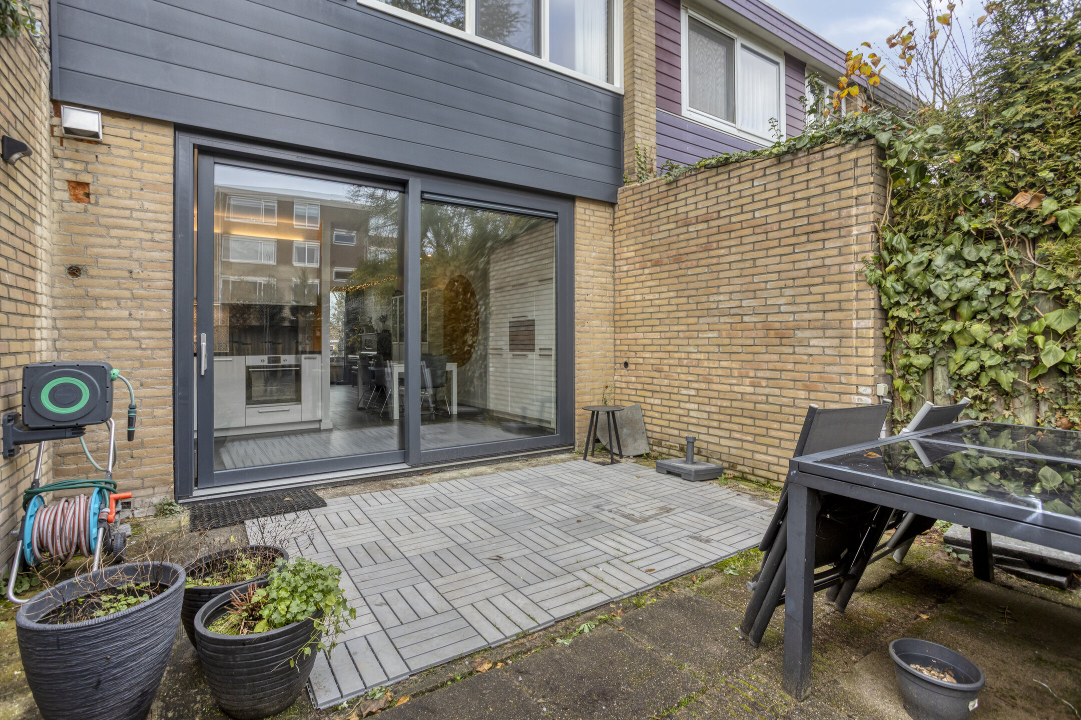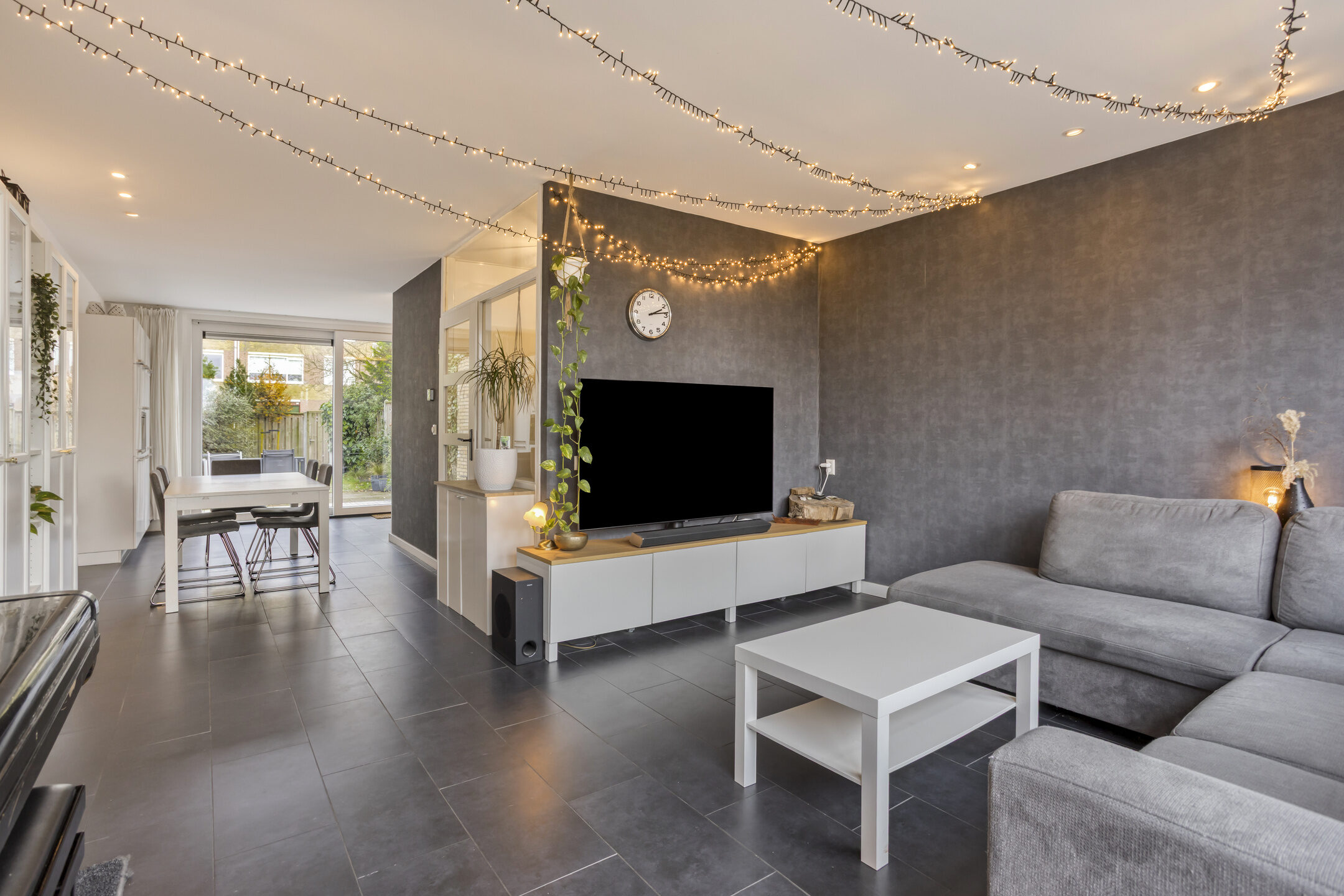 Op de eerste verdieping vind je de lichte en ruime woonetage. Via de hef-schuifpui stap je direct de zonnige achtertuin in. In de zomer vormt deze tuin een prachtige verlenging van de woonruimte en is het dé ideale plek voor een gezellige barbecue met het gezin, vrienden of familie. Aan de achterzijde bevindt zich de moderne open keuken (2017), compleet uitgerust met een inductiekookplaat, afzuigsysteem, vaatwasser (2025), oven, magnetron, inbouwkoel-/ vriescombinatie.