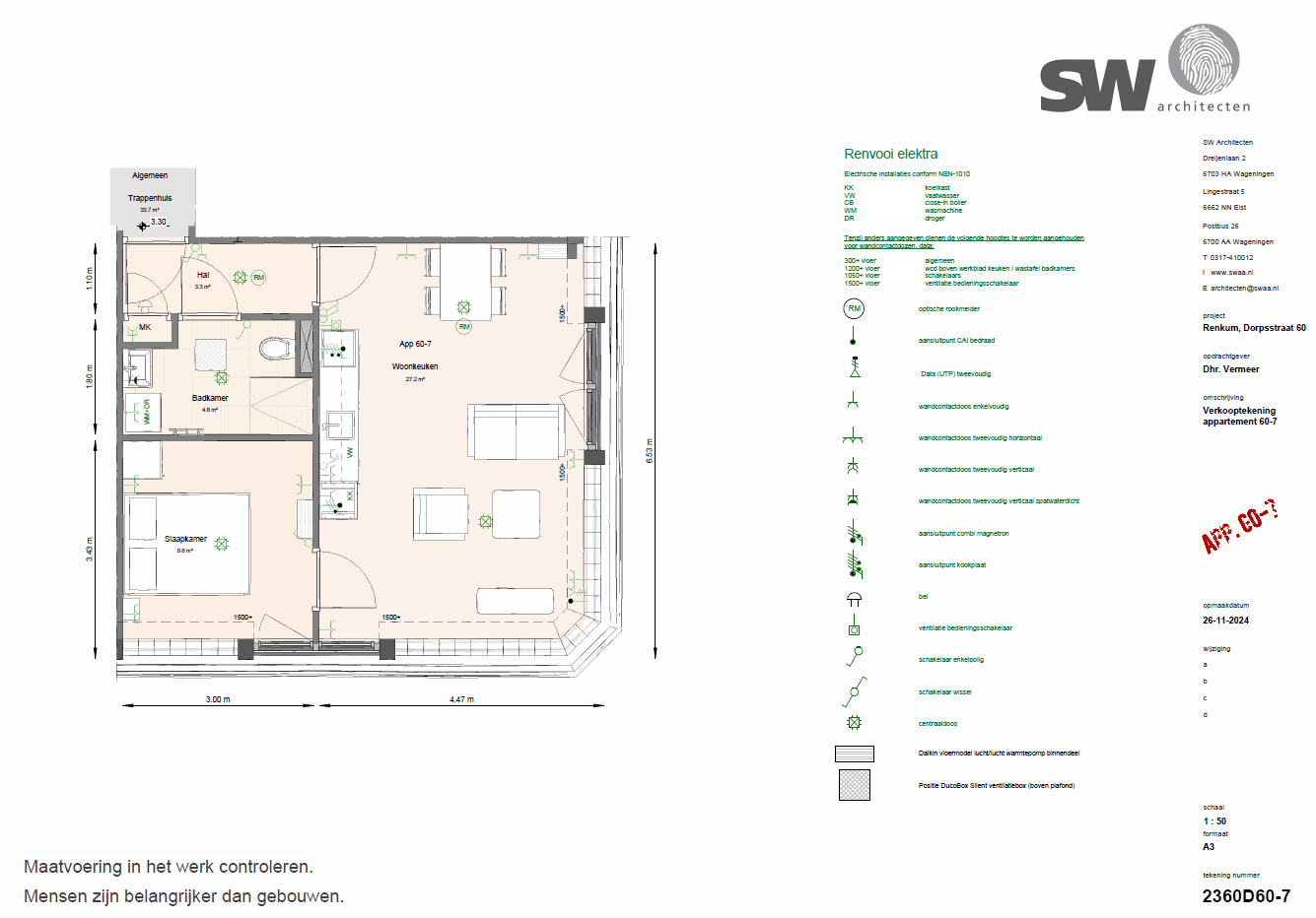 De informatie is nauwkeurig en met zorg samengesteld aan de hand van gegevens en tekeningen, welke onder andere zijn verstrek door de architect en de adviseurs van dit plan alsmede gemeentelijke instanties. Ondanks het bovenstaande moeten we een voorbehoud maken ten aanzien van wijzigingen voortvloeiende uit de eisen van de overheid en/of nutsbedrijven. De ontwikkelaar is gerechtigd tijdens de ontwikkeling en (af)bouw die wijzigingen in het plan aan te brengen, waarvan noodzakelijkheid bij de uitvoering blijkt mits deze wijzigingen geen afbreuk doen aan de kwaliteit van de woning. Deze wijzigingen geven geen recht tot het vragen van verrekening van mindere of meerdere kosten.