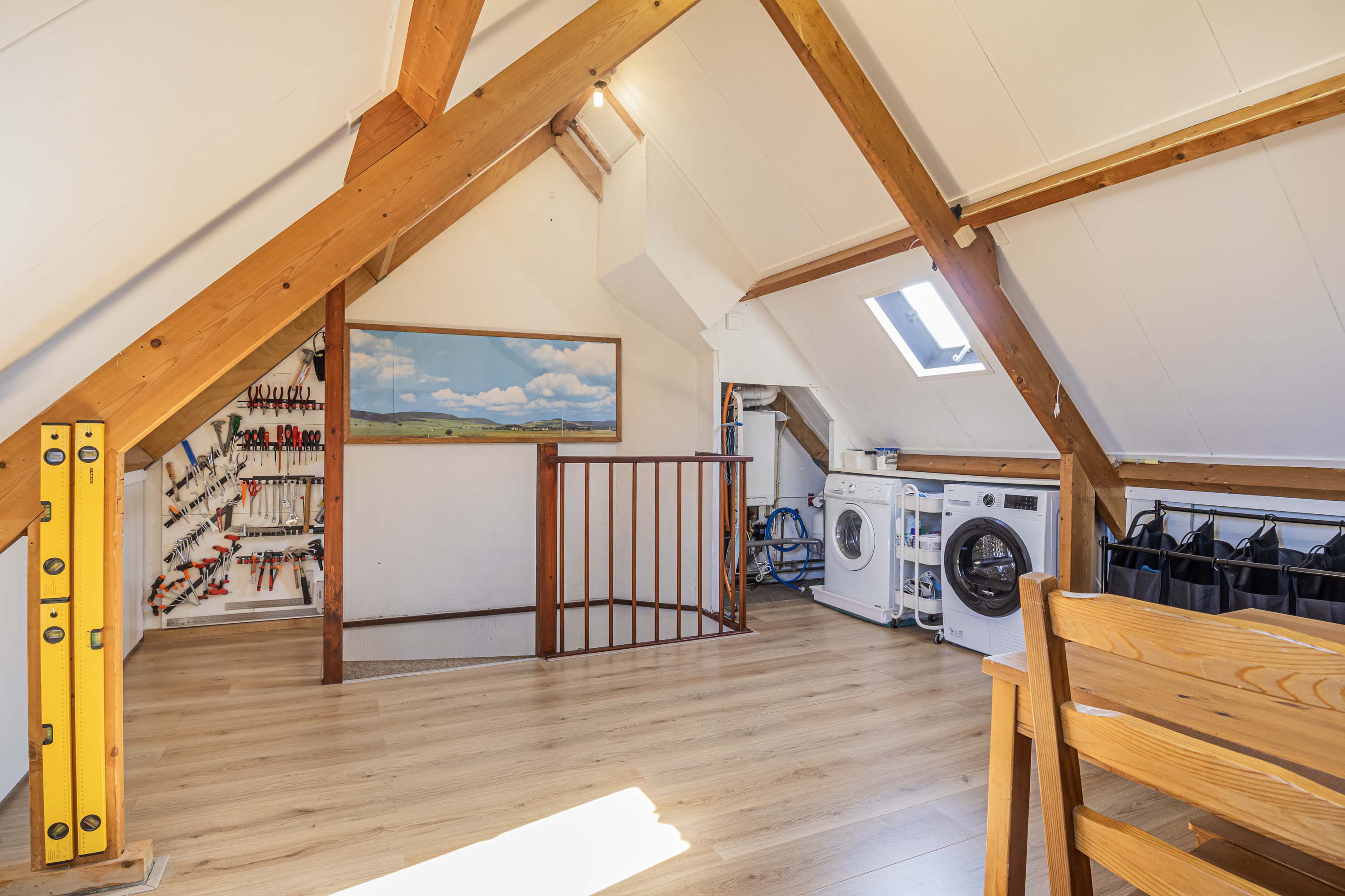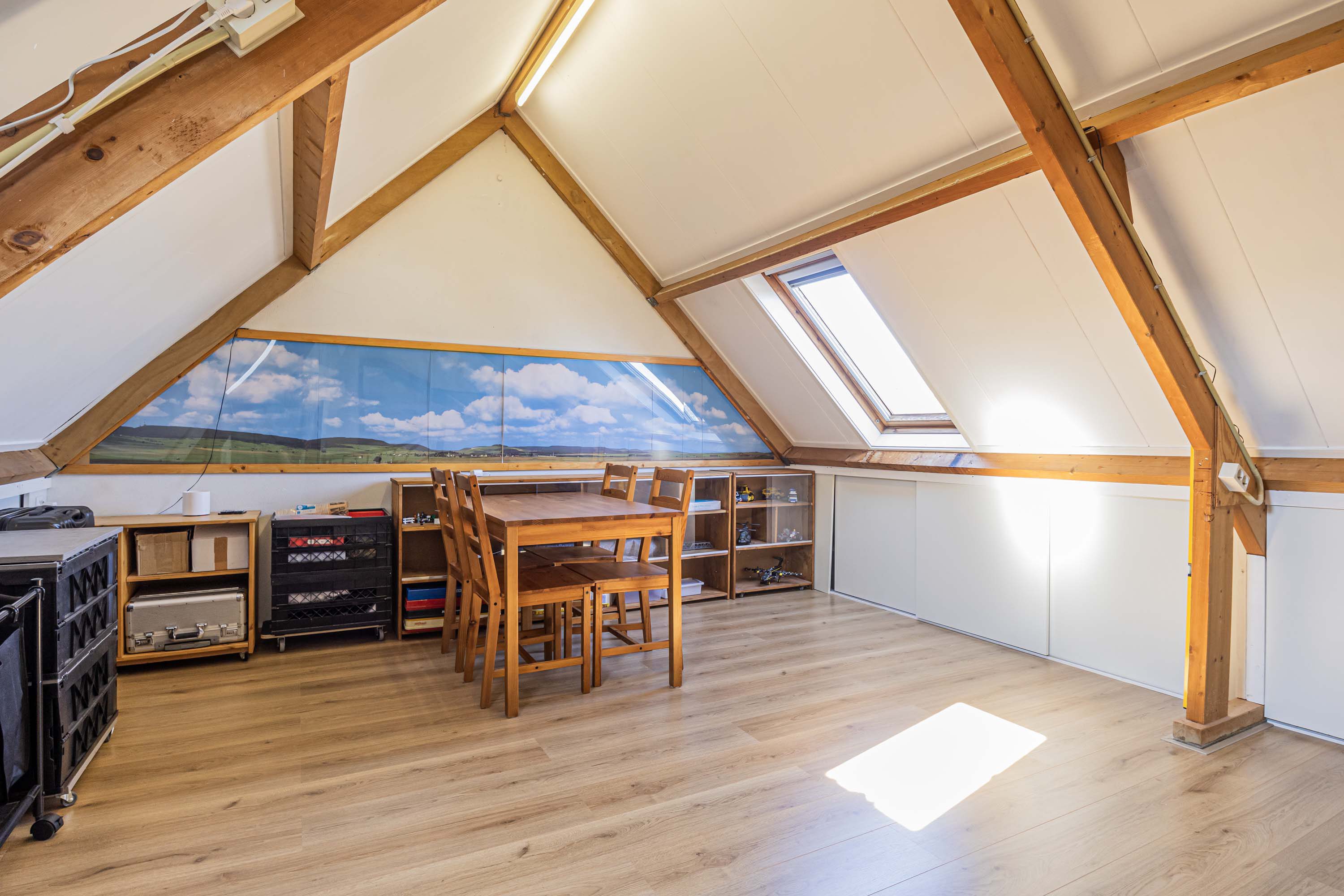 Via de vaste trap bereik je tweede verdieping die nog naar wens ingedeeld kan worden. Hier kun je bijvoorbeeld een vierde slaapkamer creëren. Deze kamer kan ook ideaal voor andere doeleinden worden gebruikt, te denken valt aan: een werk-, sport-, hobby- of logeerkamer. Bovendien tref je op deze verdieping de aansluiting voor het witgoed en bergruimte achter de knieschotten.