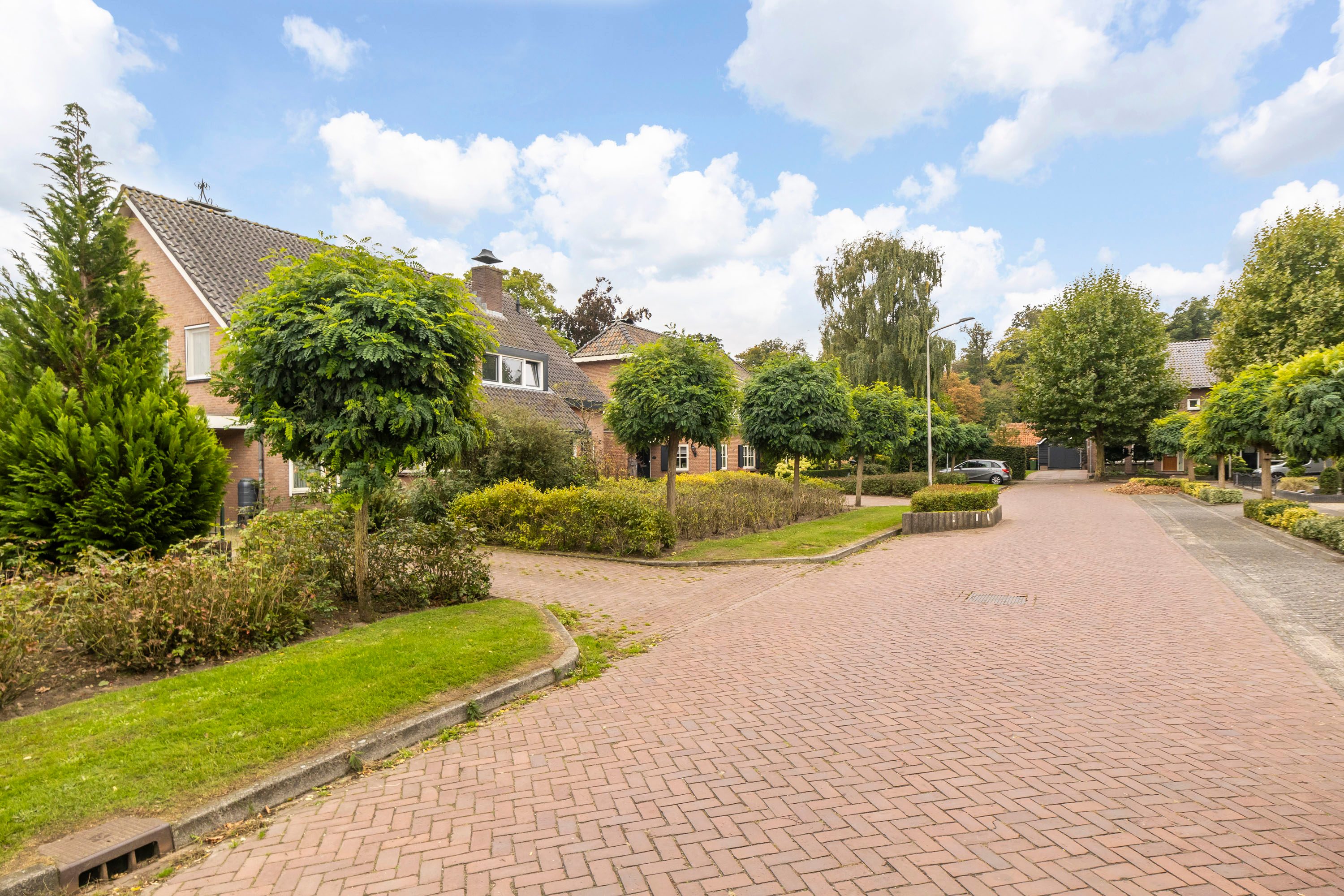 LiggingAan rustige weg, In woonwijk