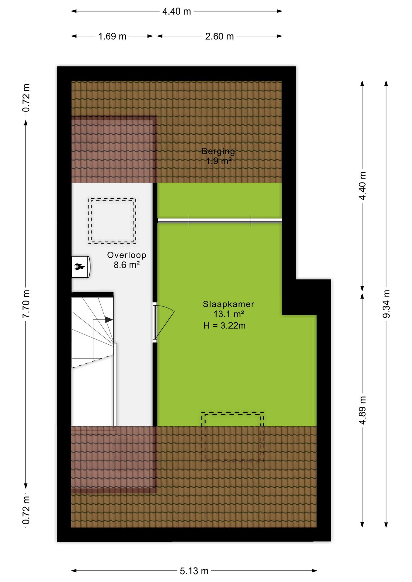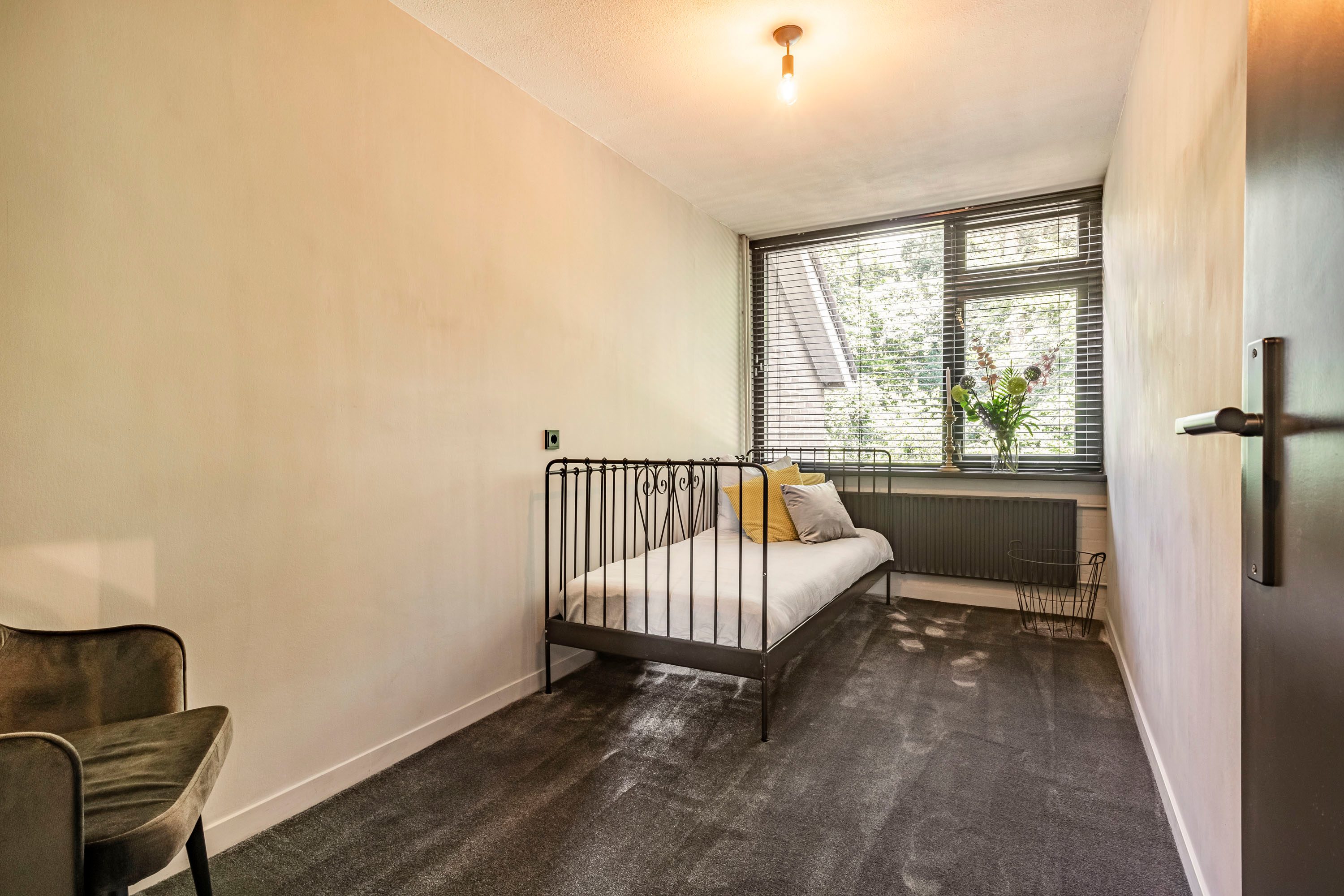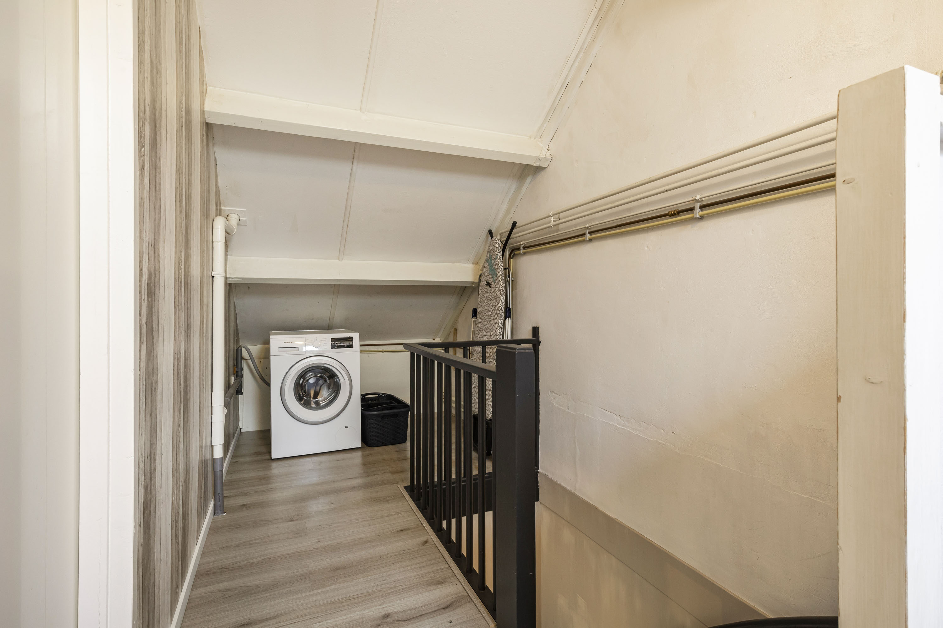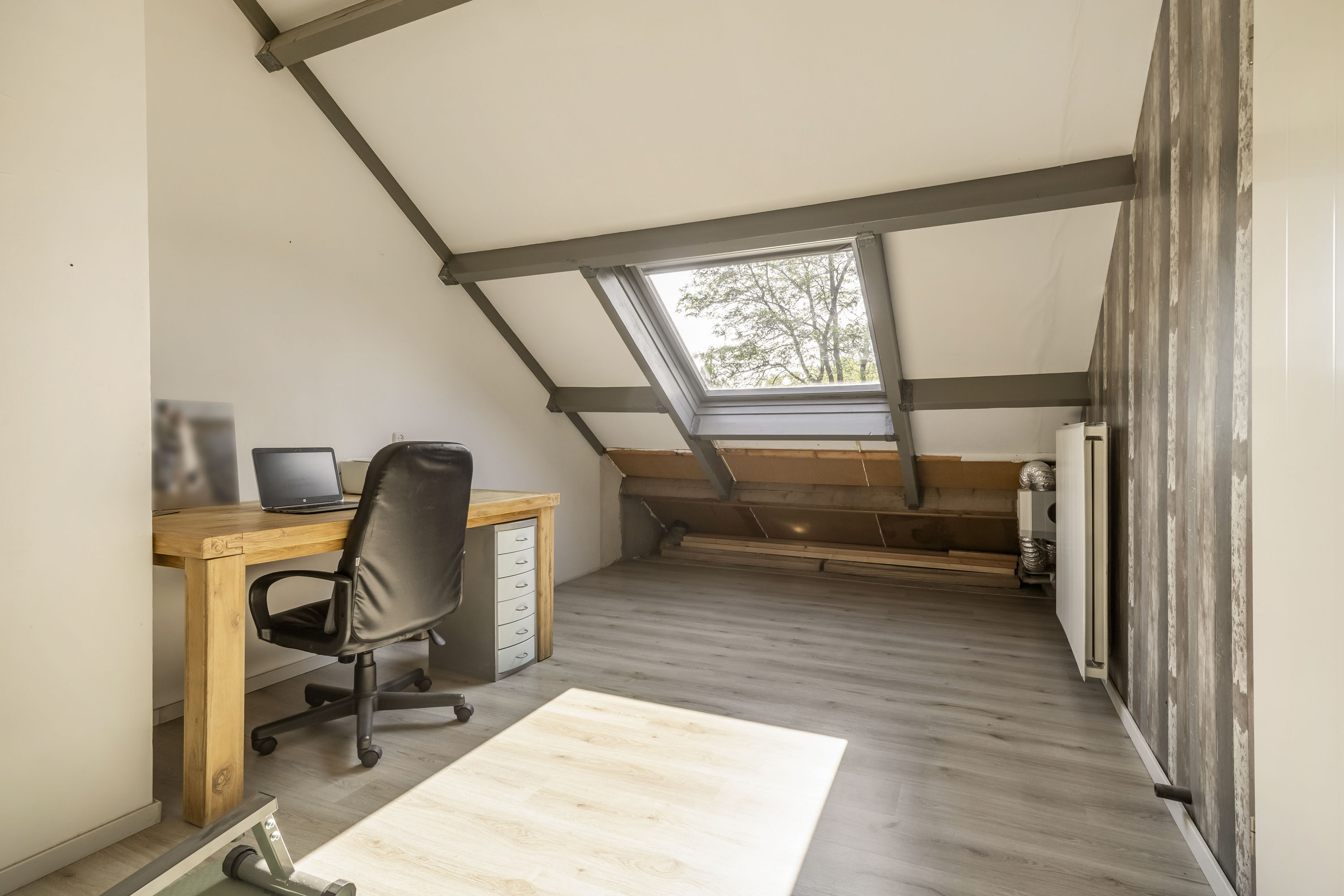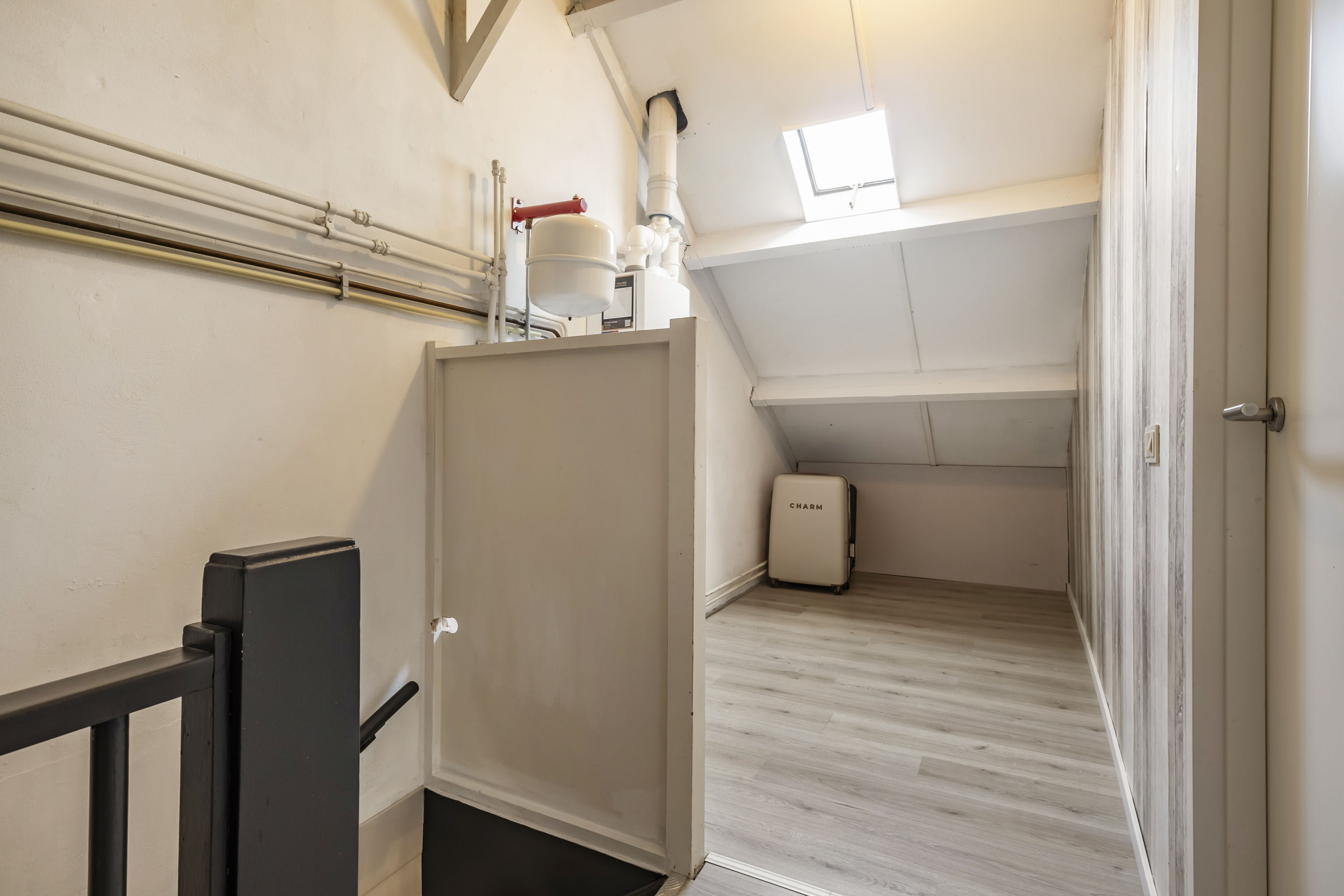 Via een vaste trap bereik je de tweede verdieping. Hier bevindt zich een vierde kamer van 13,1 m², ideaal te gebruiken als slaapkamer, werkkamer of sportruimte. Daarnaast biedt deze verdieping volop bergruimte en vindt je hier ook de aansluiting voor de wasmachine.