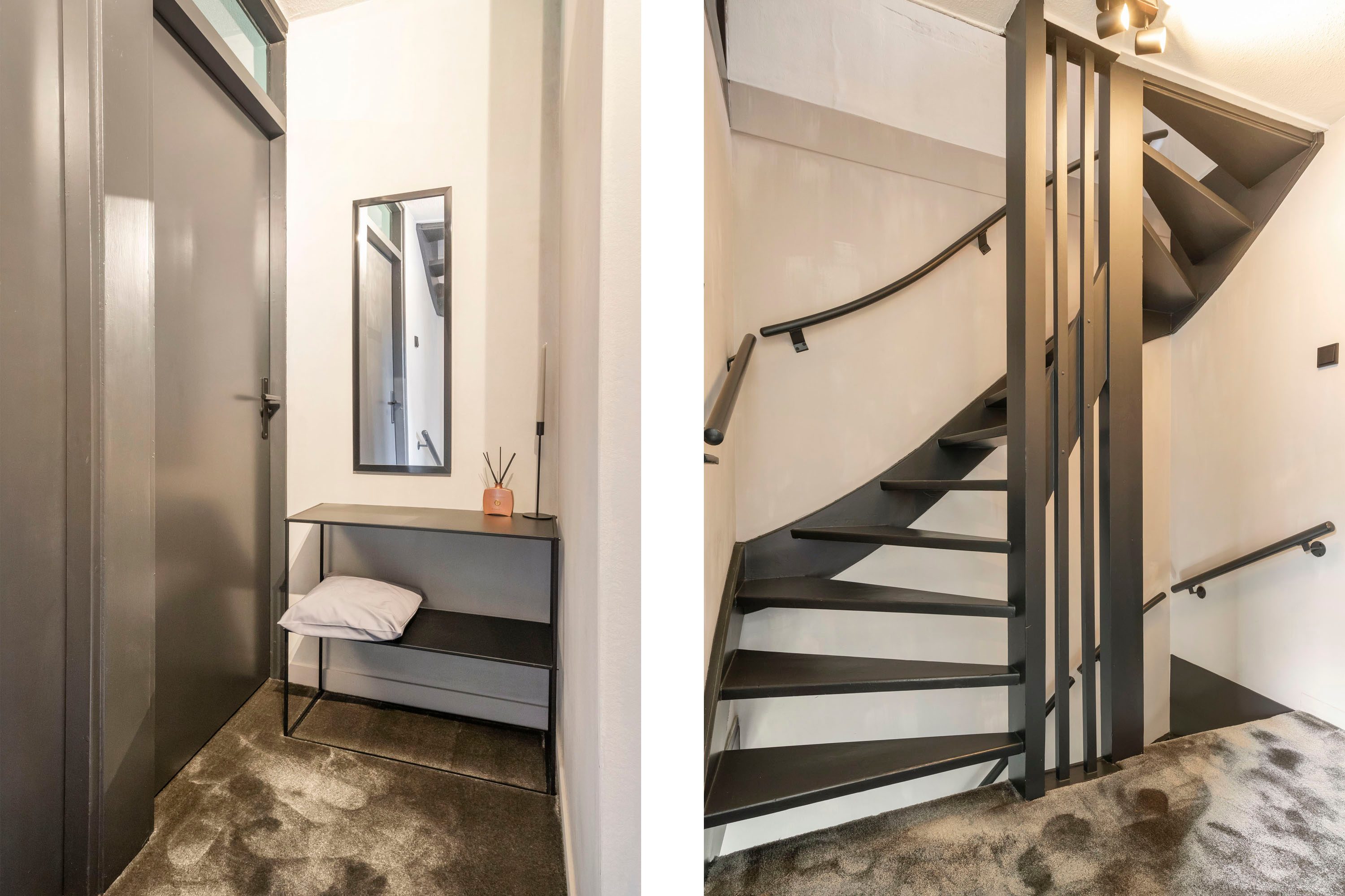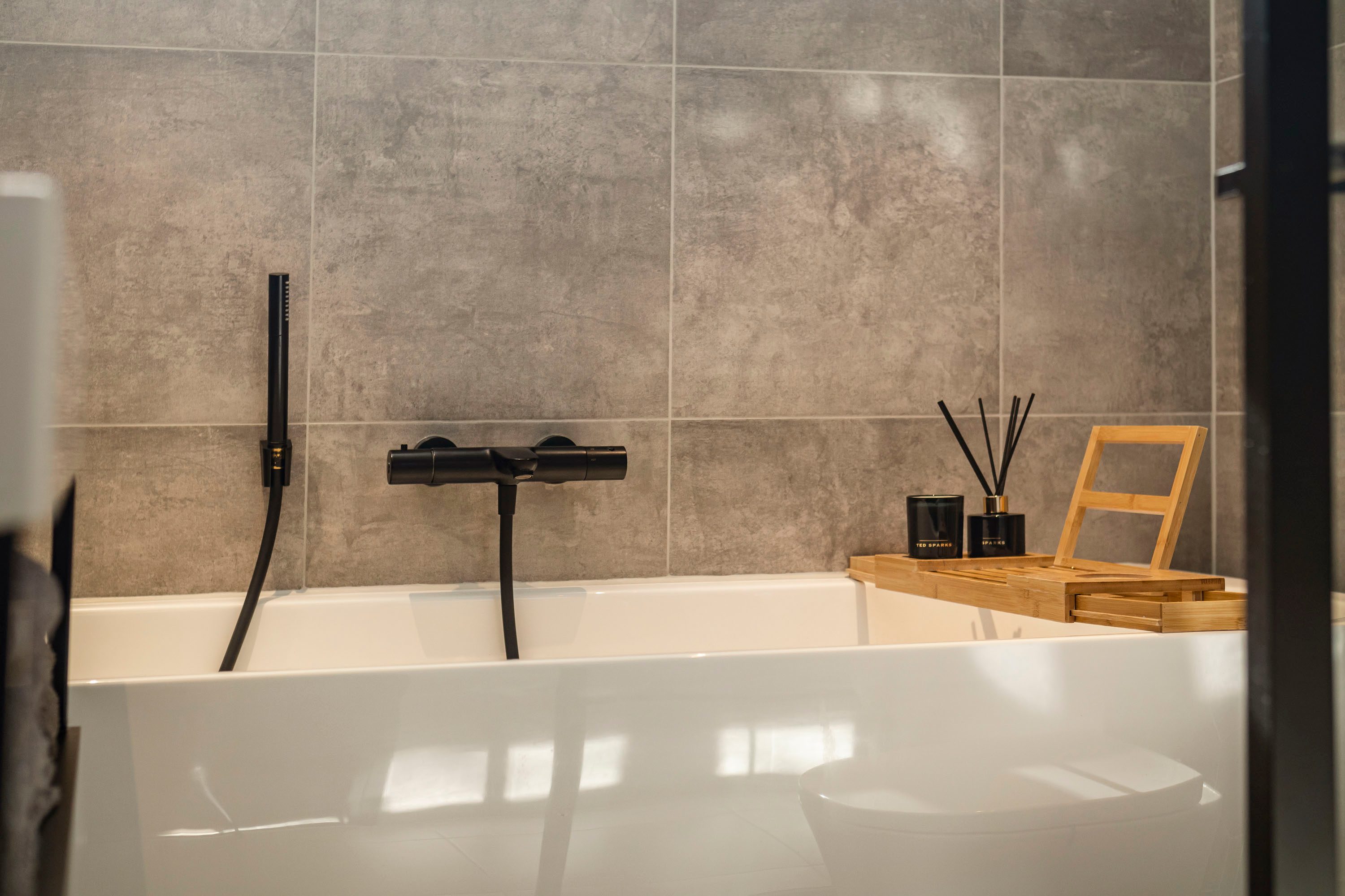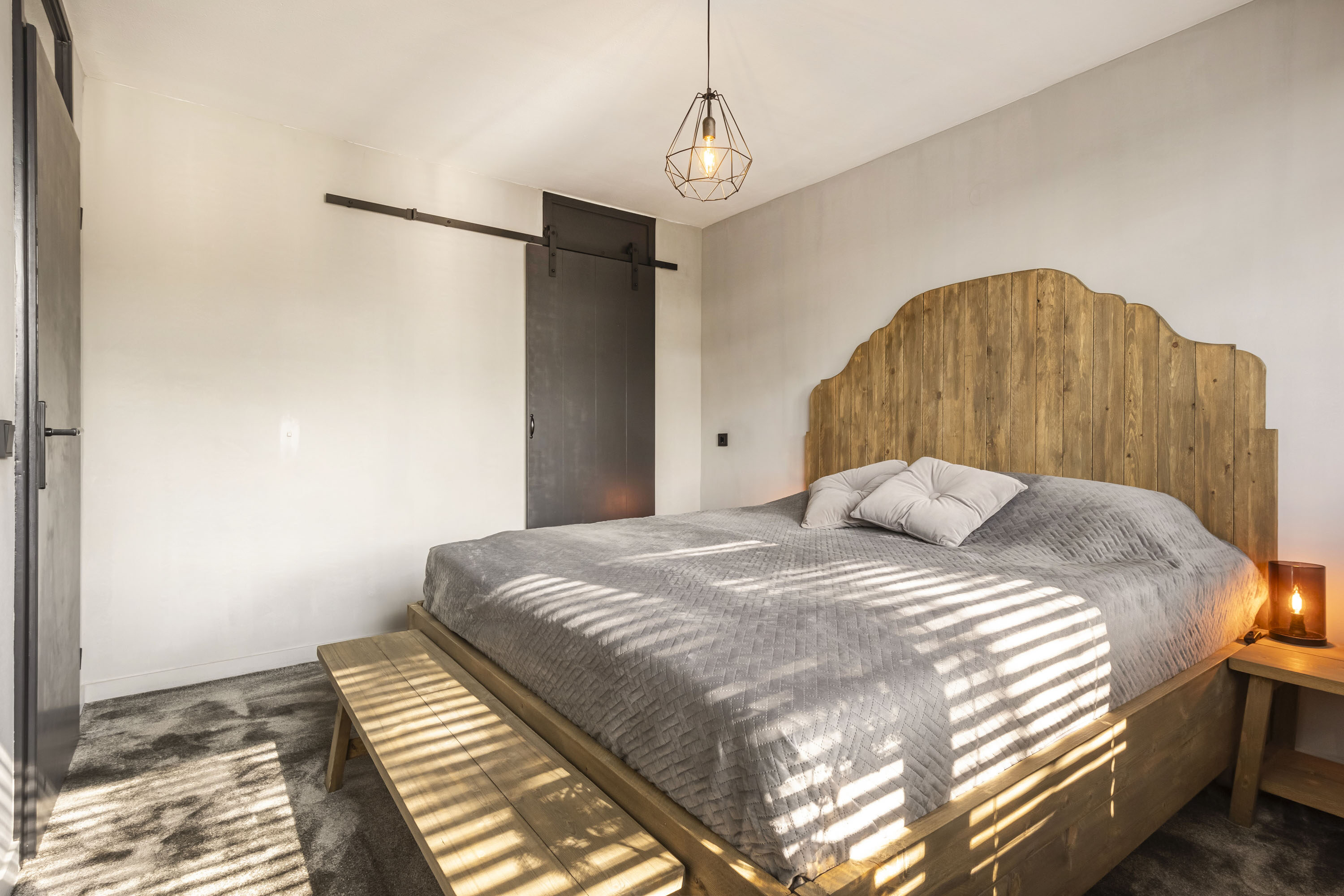 Op de eerste verdieping leidt de ruime overloop naar alle vertrekken. Hier bevinden zich drie slaapkamers met een oppervlakte van respectievelijk 11,6 m², 9,7 m² en 8,8 m². Alle kamers beschikken over grote ramen die veel lichtinval genereren, en één van de slaapkamers is voorzien van een praktische inbouwkast. De badkamer is modern ingericht en uitgerust met een ruim wastafelmeubel, een inloopdouche, een bad, een toilet en vloerverwarming. De antracietgrijze tegels zorgen voor een elegante uitstraling.