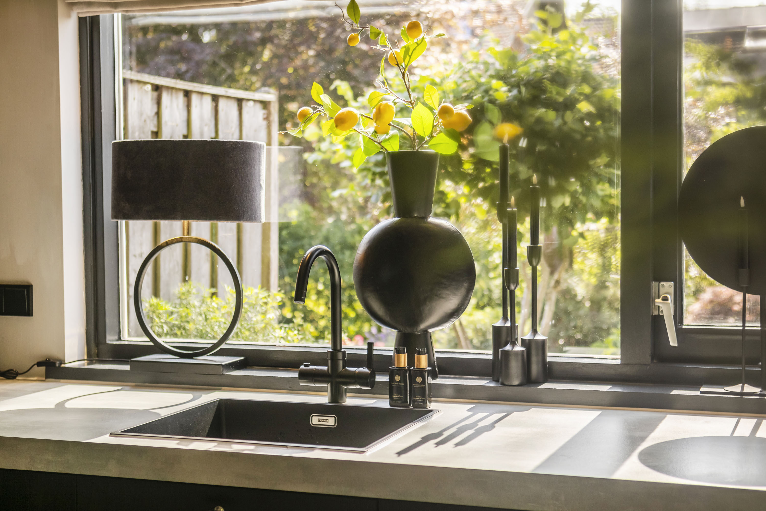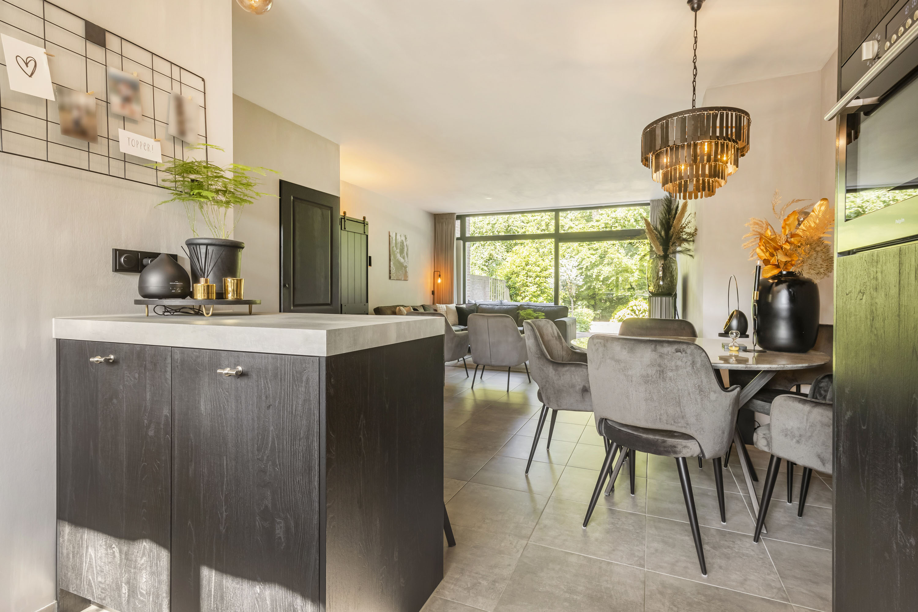 De open keuken is stijlvol en modern afgewerkt en volledig uitgerust met hoogwaardige inbouwapparatuur, waaronder een vaatwasser, kookplaat, afzuigkap, Quooker, oven en een koel-/vriescombinatie.