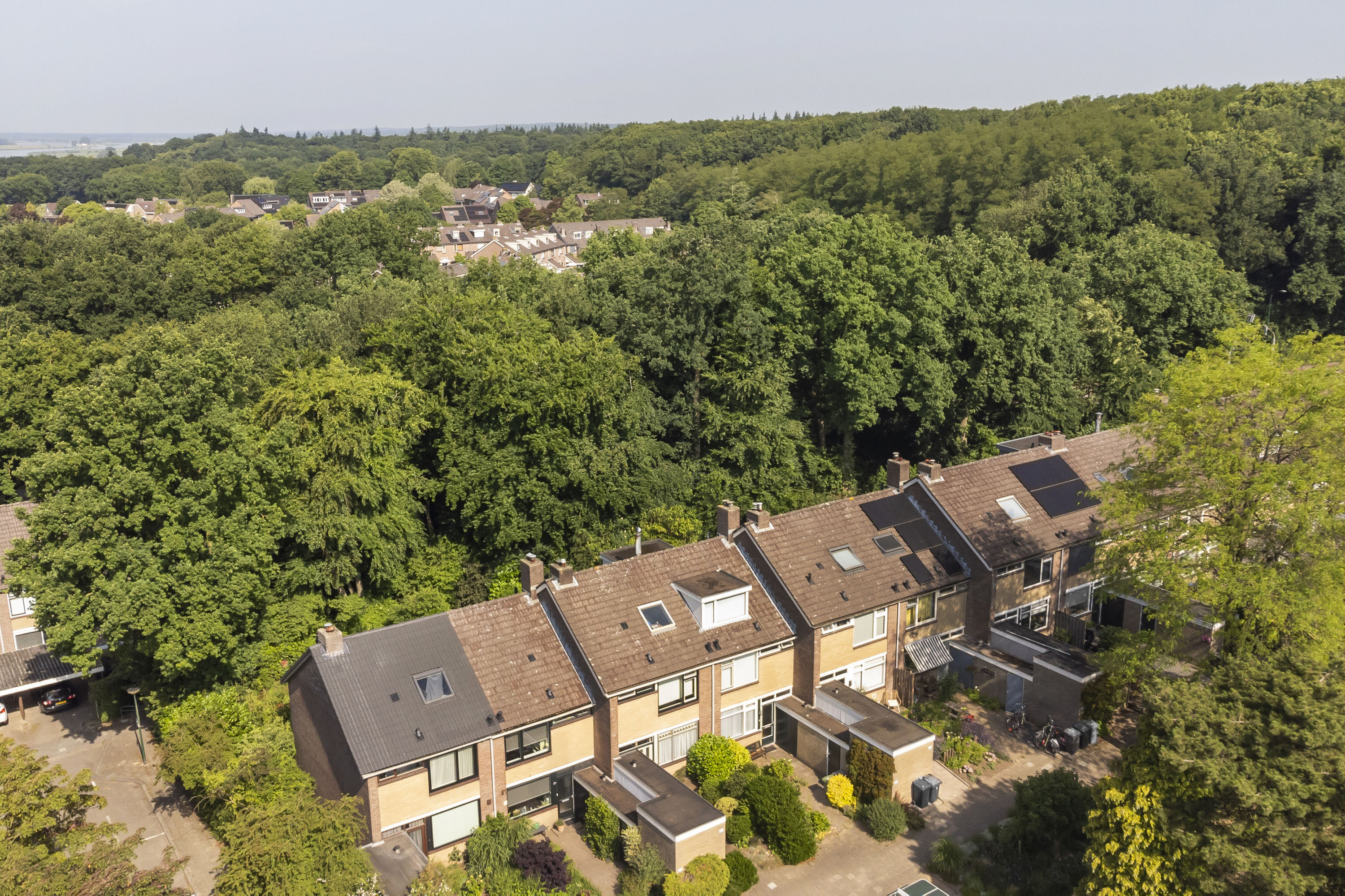 De ligging tegen de bosrand zorgt ervoor dat je vanuit huis direct kunt genieten van de natuur. Of je nu houdt van wandelen, fietsen of gewoon wilt ontspannen in een groene omgeving, hier kan het allemaal. Tegelijkertijd ligt de woning op korte afstand van alle benodigde voorzieningen, waaronder scholen, winkels en sportfaciliteiten. Ook voor reizigers is de locatie ideaal, met het treinstation van Rhenen op steenworp afstand, waardoor je gemakkelijk en snel in omliggende steden kunt zijn.