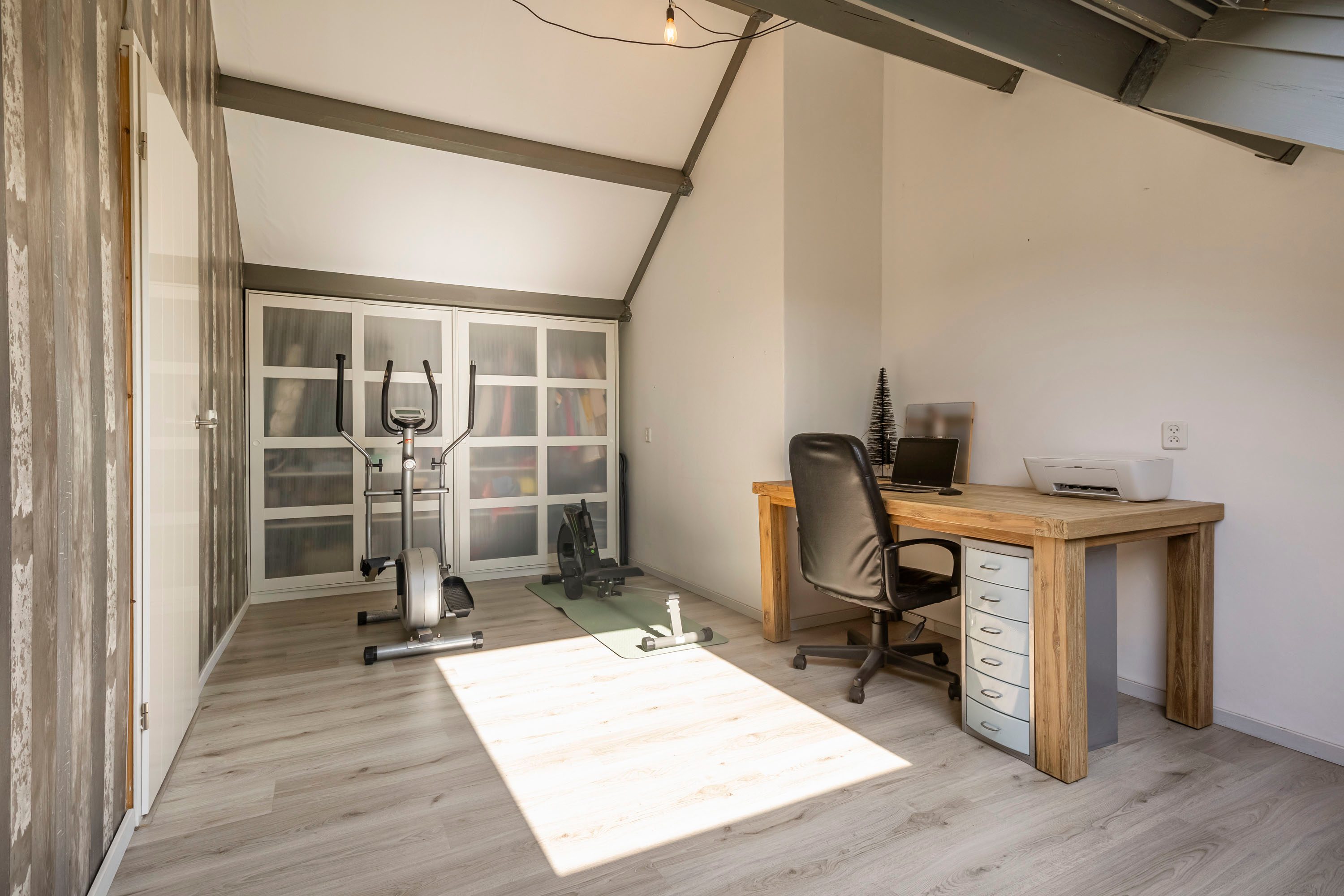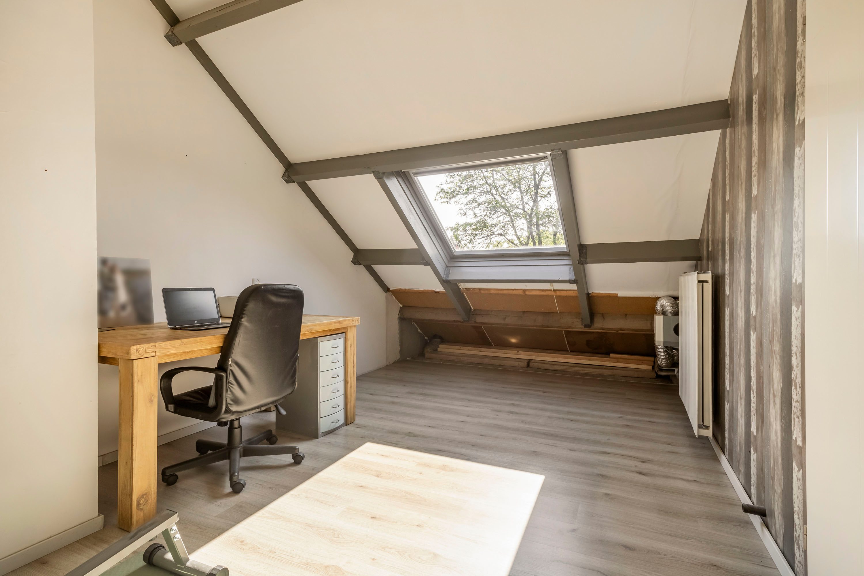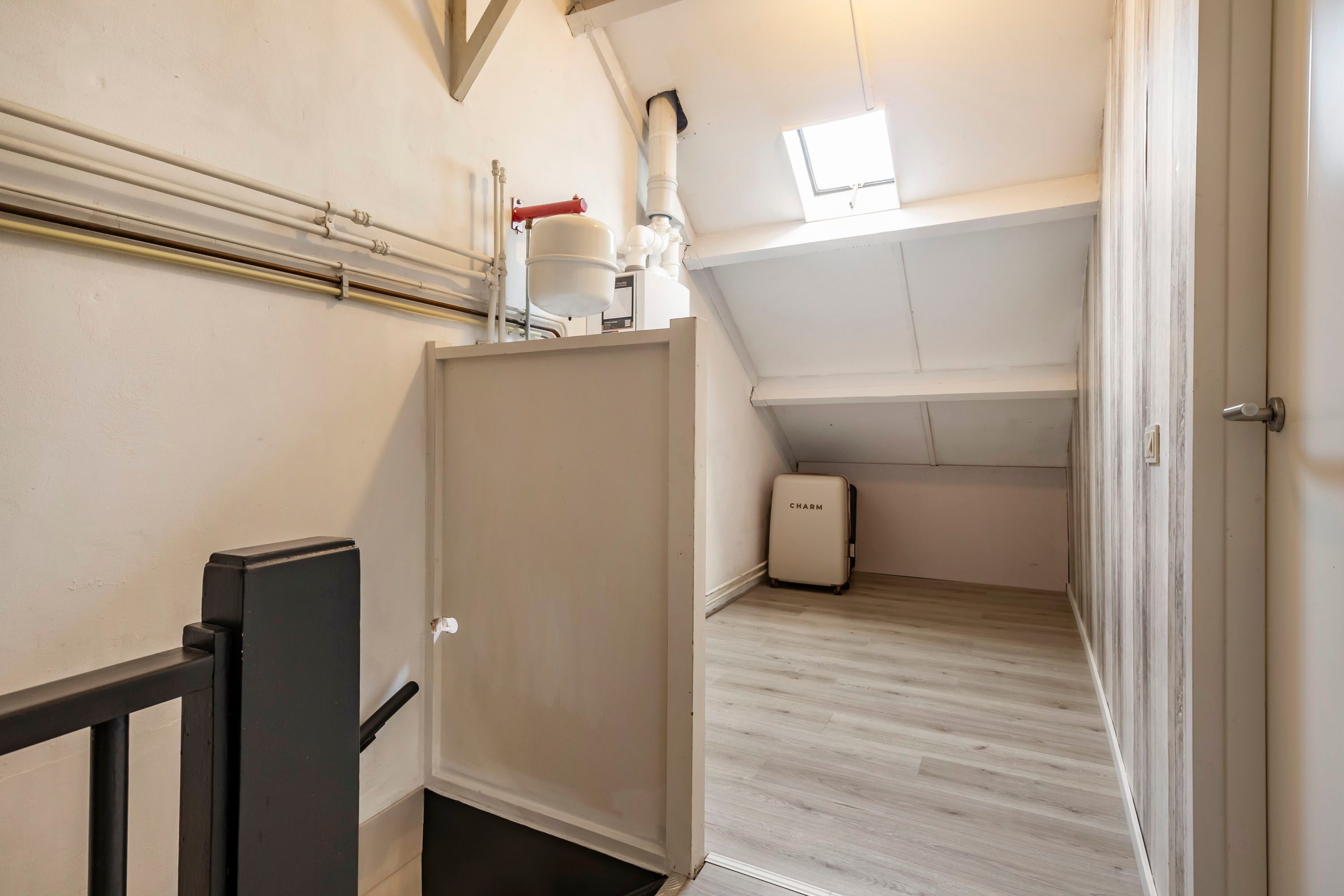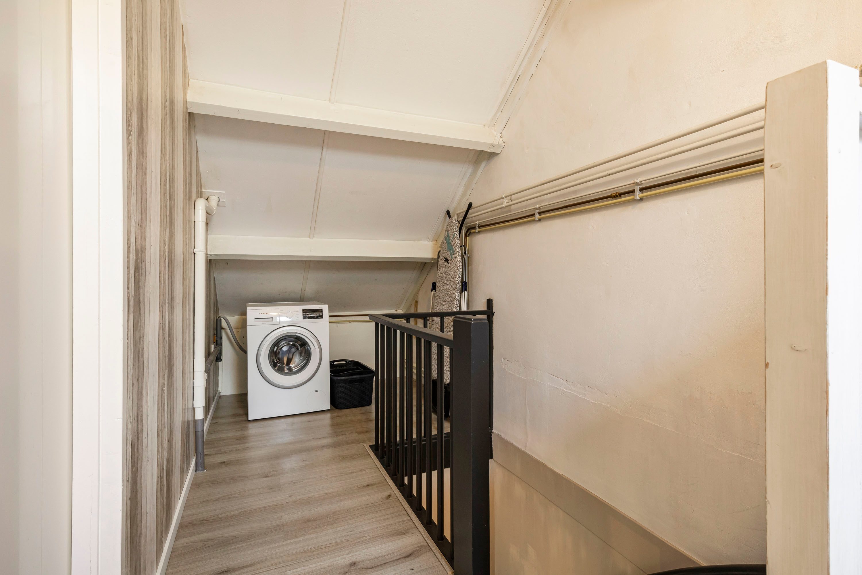Via een vaste trap bereik je de tweede verdieping. Hier bevindt zich een vierde kamer van 13,1 m², ideaal te gebruiken als slaapkamer, werkkamer of sportruimte. Daarnaast biedt deze verdieping volop bergruimte en vindt je hier ook de aansluiting voor de wasmachine.