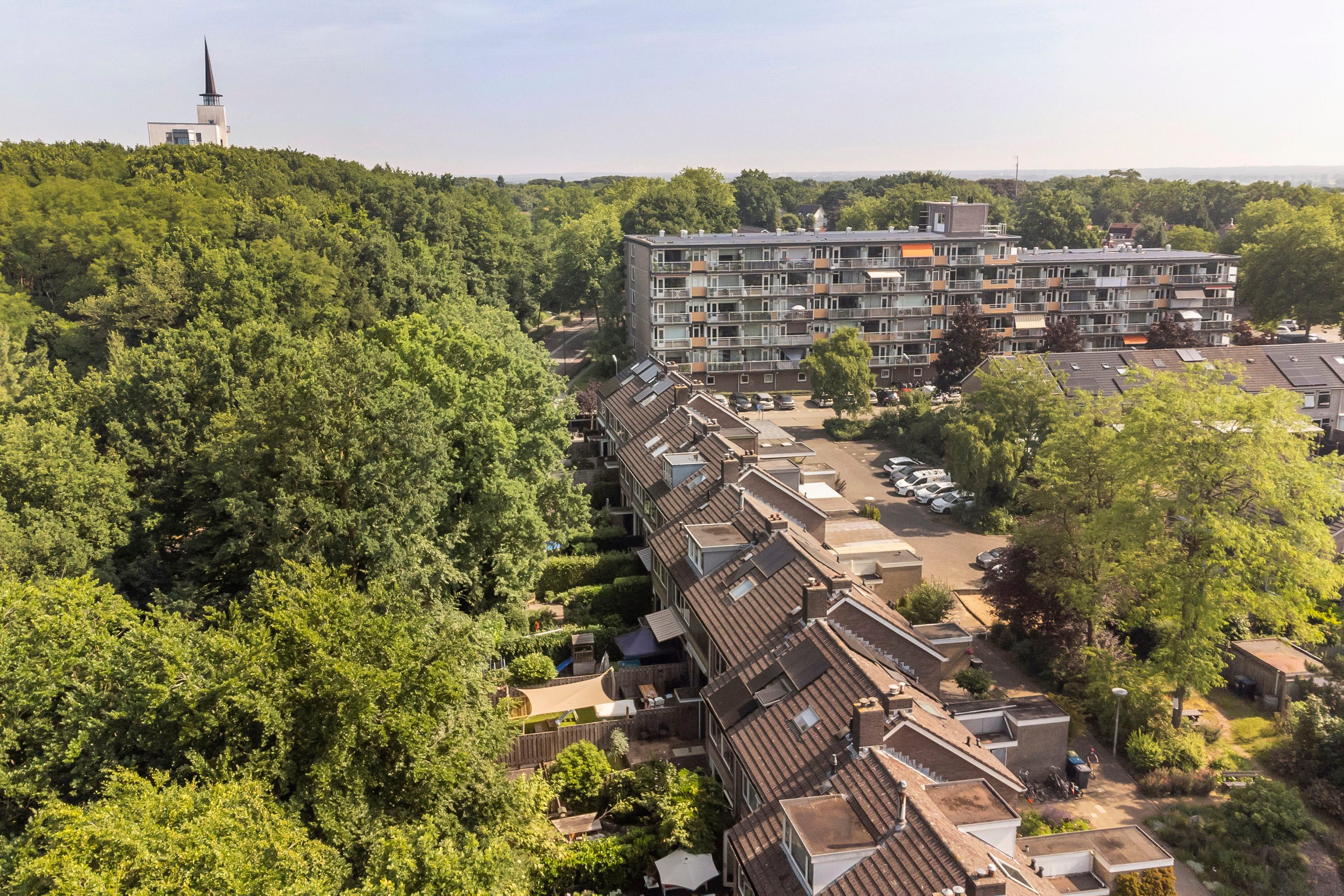 De ligging tegen de bosrand zorgt ervoor dat je vanuit huis direct kunt genieten van de natuur. Of je nu houdt van wandelen, fietsen of gewoon wilt ontspannen in een groene omgeving, hier kan het allemaal. Tegelijkertijd ligt de woning op korte afstand van alle benodigde voorzieningen, waaronder scholen, winkels en sportfaciliteiten. Ook voor reizigers is de locatie ideaal, met het treinstation van Rhenen op steenworp afstand, waardoor je gemakkelijk en snel in omliggende steden kunt zijn.