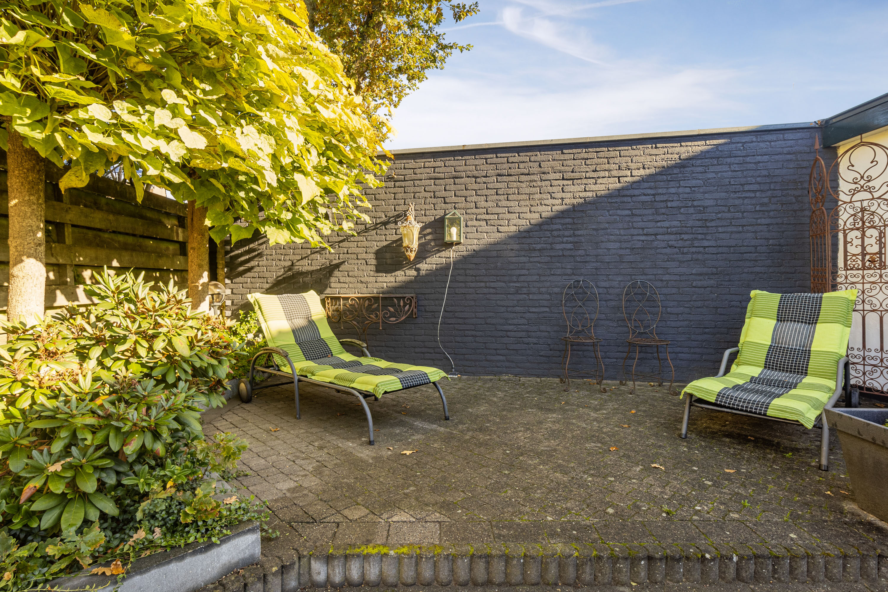 De achtertuin ligt op het noordoosten en is ruim en goed onderhouden. Hier is het heerlijk ontbijten in de ochtendzon of ontspannen onder het genot van een lekker glaasje in de avondzon. Mocht je toch het liefst in de schaduw willen zitten dan kan dit ook! De tuin biedt het allemaal en waaronder ook volop privacy.