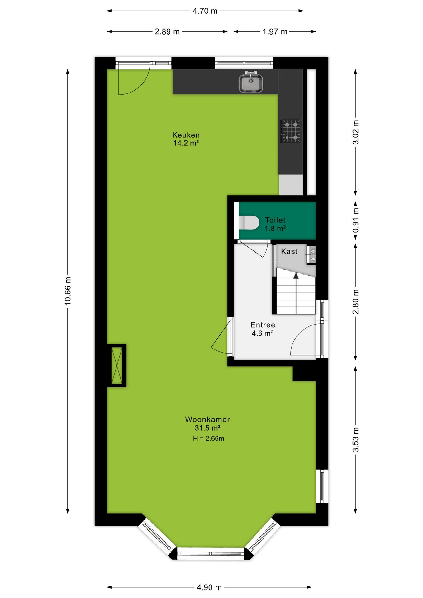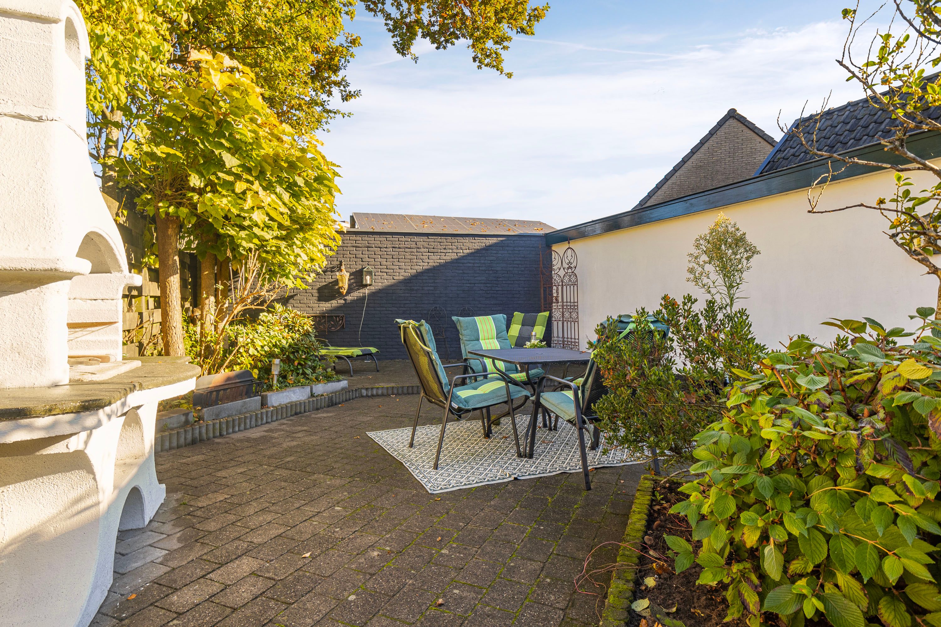 Vanuit de ruime oprit betreedt je aan de zijkant middels de voordeur de woning. Bij binnenkomst kom je in de hal met toegang tot de trapkast en vernieuwde toiletruimte (volledig betegeld en voorzien van automatische afzuiging). De woonkamer aan de voorzijde is voorzien van een sfeervolle erker en sluit aan op de ruime eetkeuken in L-vorm. Deze keuken is uitgerust met diverse inbouwapparatuur, waaronder een 6-pits gasfornuis, vaatwasser, oven, koel-/vriescombinatie en afzuigkap. Vanuit de keuken kun je zo de royale tuin in waar je de hele dag van de zon kunt genieten dankzij de gunstige ligging.