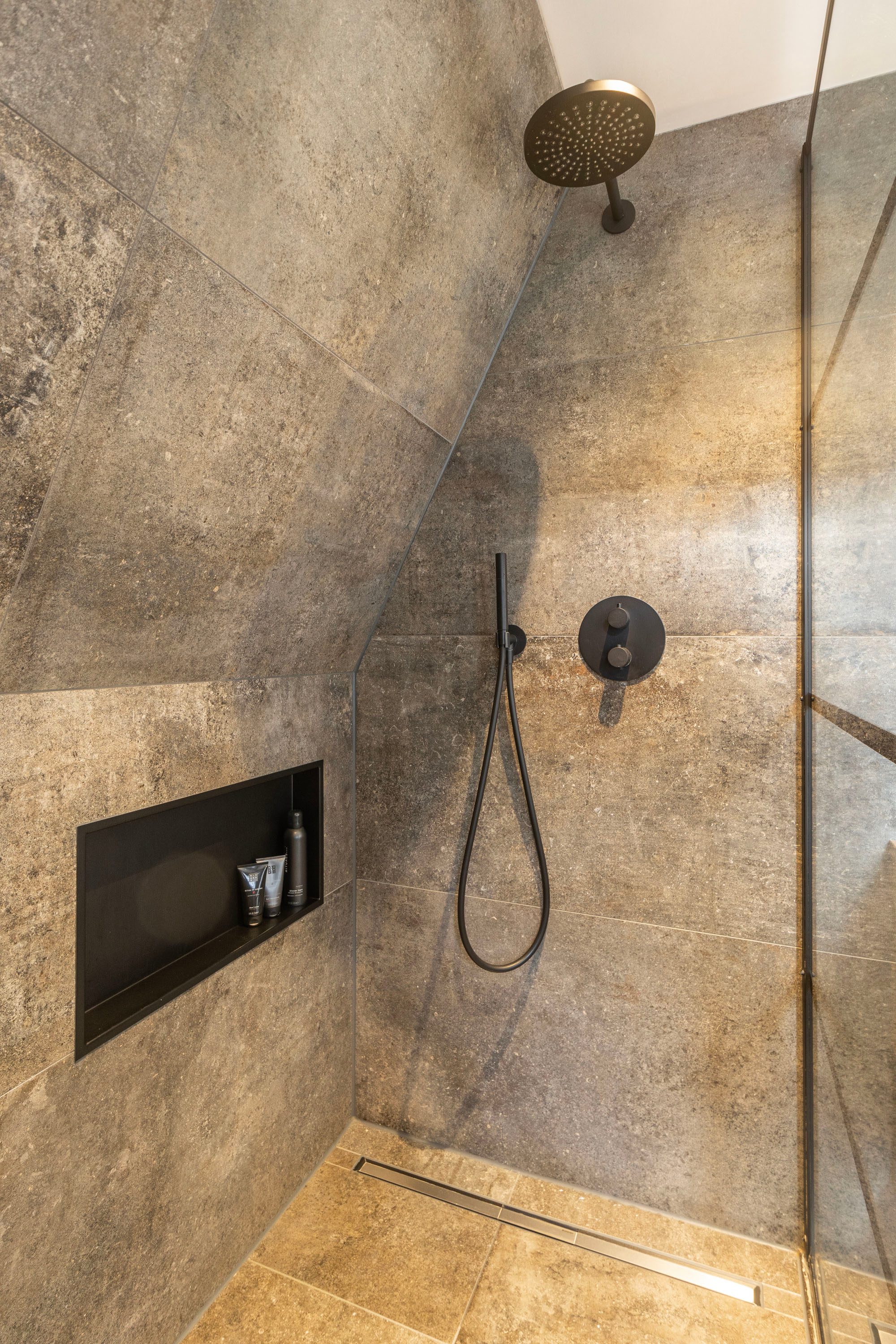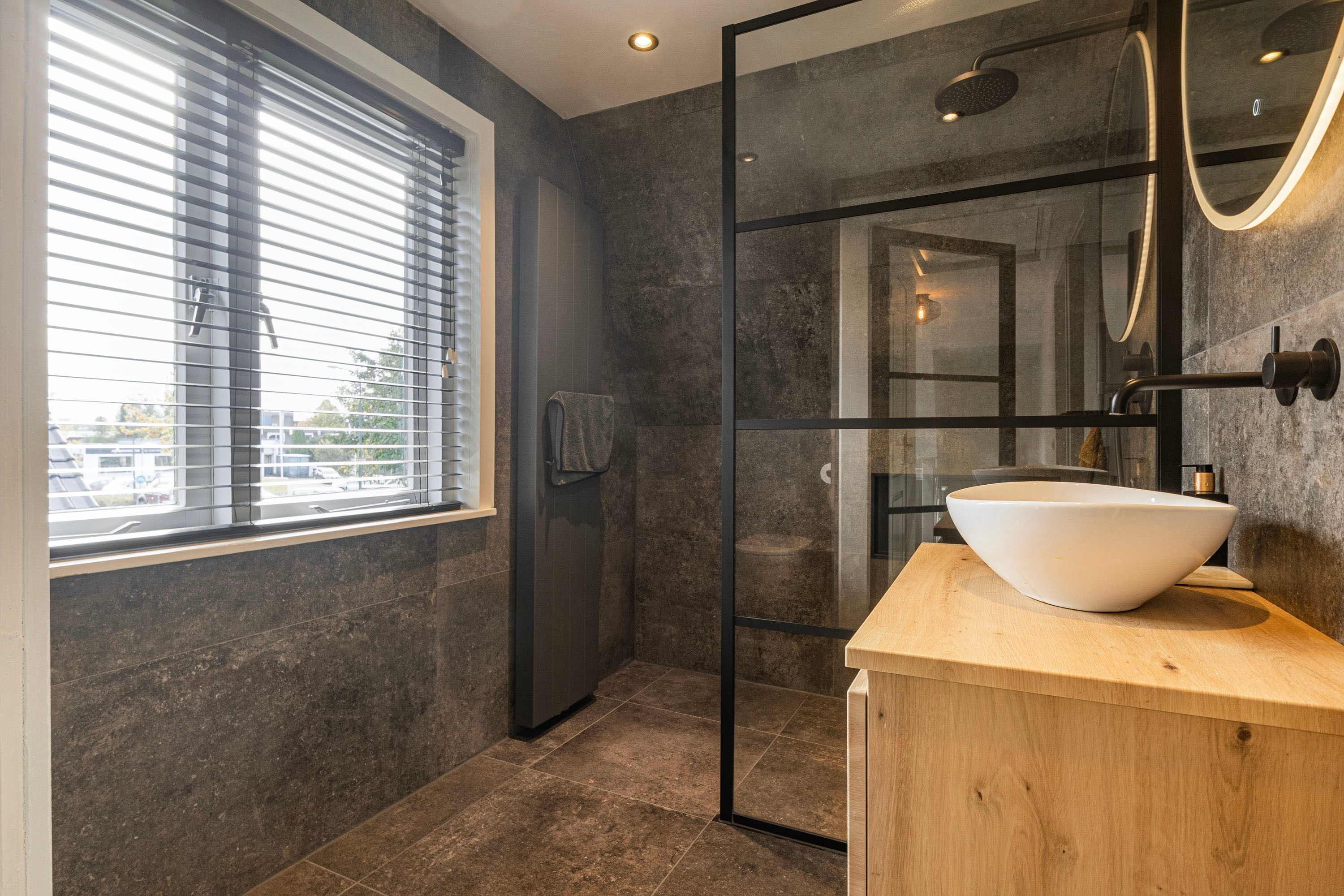 Op de eerste verdieping bevinden zich drie slaapkamers, waarvan twee met vaste kasten. De luxe badkamer (2022) beschikt over een douche, toilet en wastafelmeubel. De badkamer is keurig afgewerkt en voorzien van tegelwerk. De ruime inloopdouche beschikt over een stalen douchescherm en inbouwkranen. Naast de badkamer is er een separate kast met aansluitingen voor de wasmachine en eventueel de droger. Op de overloop is een vlizotrap naar de tweede verdieping, waar een vliering extra bergruimte biedt.