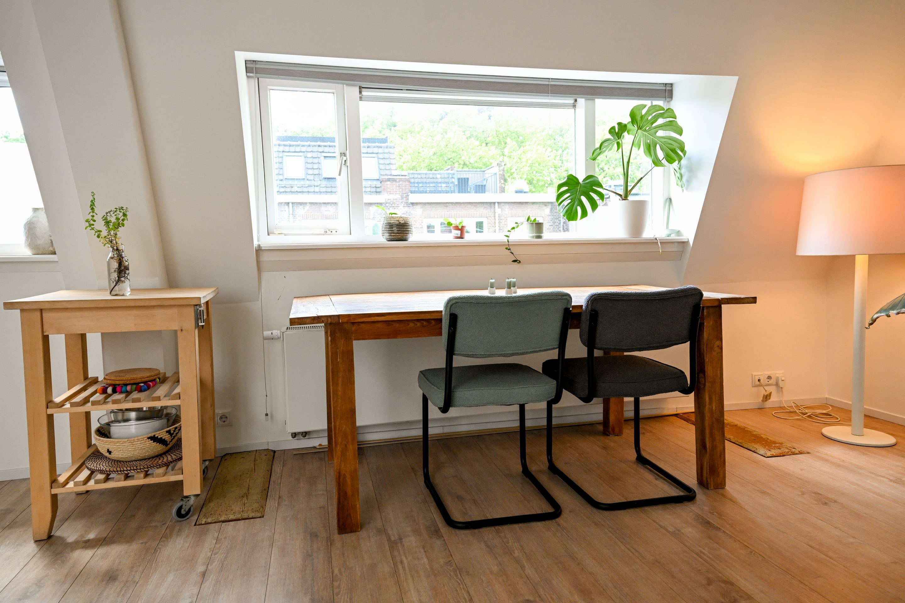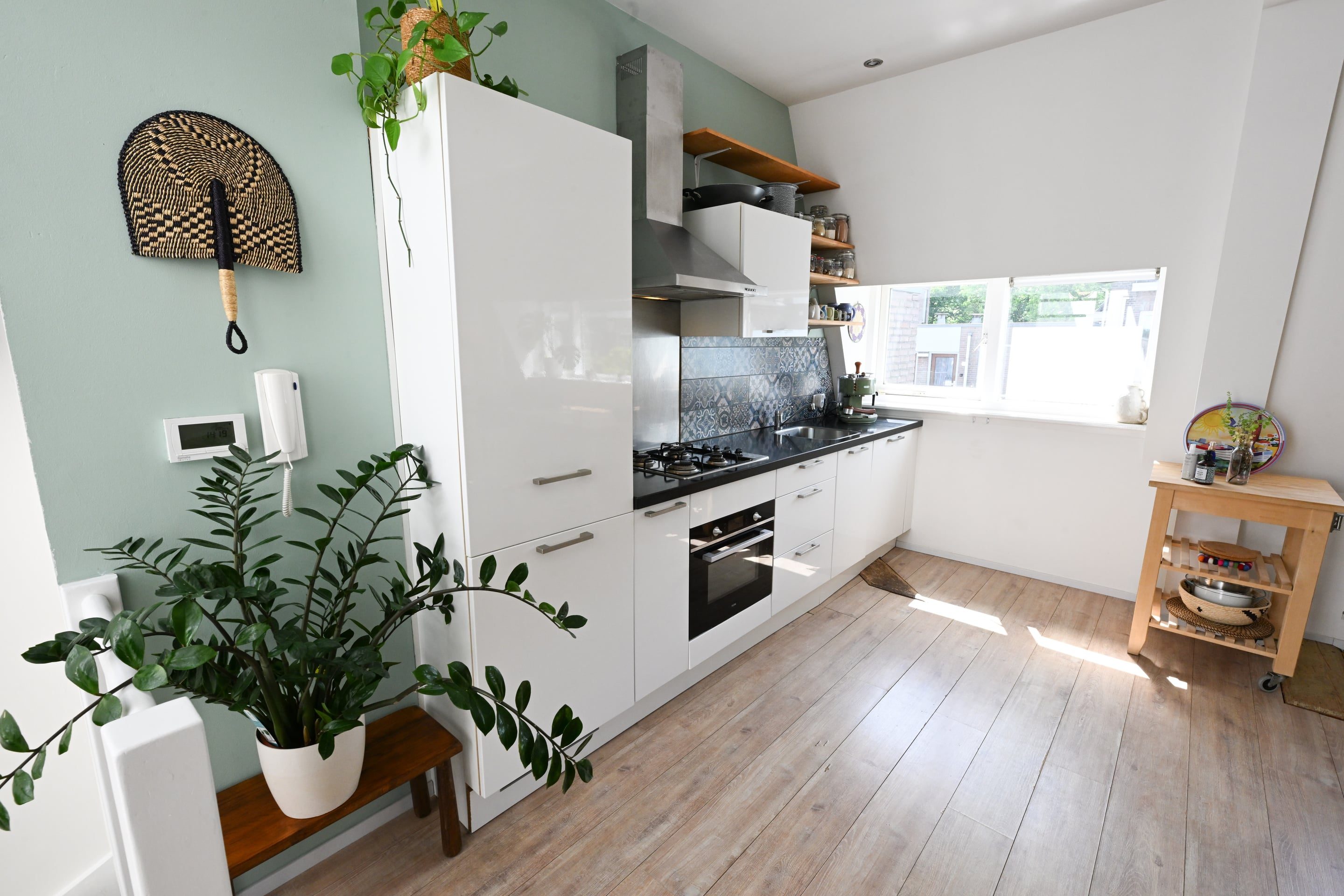 De ruime en lichte woonkamer is direct opvallend door de royale indeling en het dakluik dat zorgt voor extra daglicht. Via de vaste trap bereik je het grote dakterras van ca. 20 m², een unicum in de wijk, voorzien van vlonders en hekwerk. Hier geniet je in alle rust van de zon én het uitzicht over de stad.