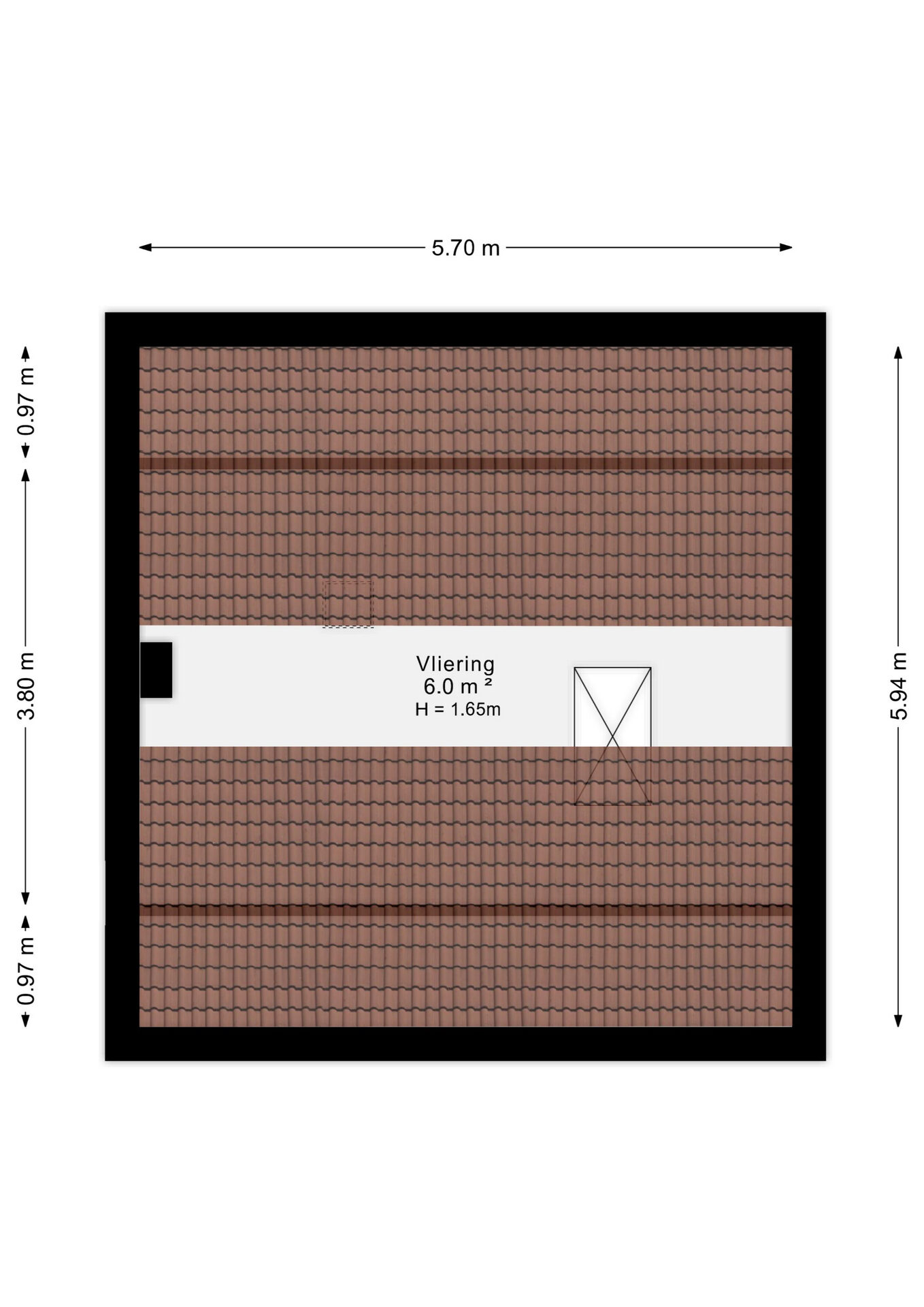 De vliering van 6 m² biedt ruime bergruimte voor bijvoorbeeld seizoensspullen en koffers. De vliering is te bereiken middels een vlizotrap.