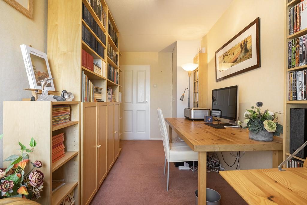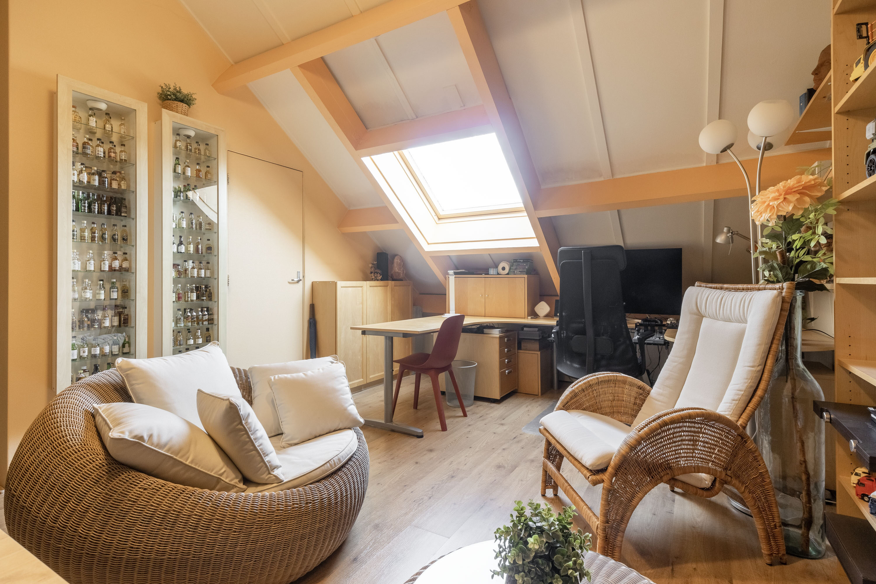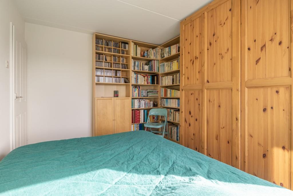Een vaste houten trap brengt je naar de 2e verdieping. Ook hier ervaren we de enorme ruimte die in het huis zit. De 2e verdieping is opgedeeld in een berging met daarin de CV-ketel, een kast en een riante 4e slaapkamer van ruim 29 m². Mocht je een extra slaapkamer nodig hebben dan is deze verdieping uiteraard eenvoudig aan te passen zodat er een 5e slaapkamer ontstaat.