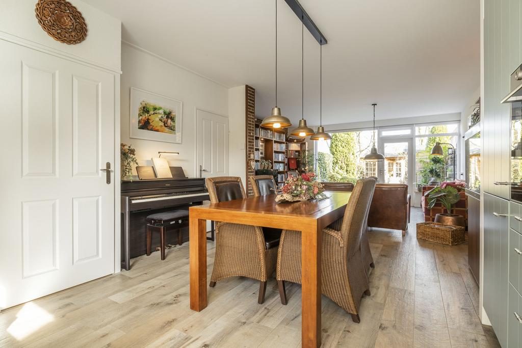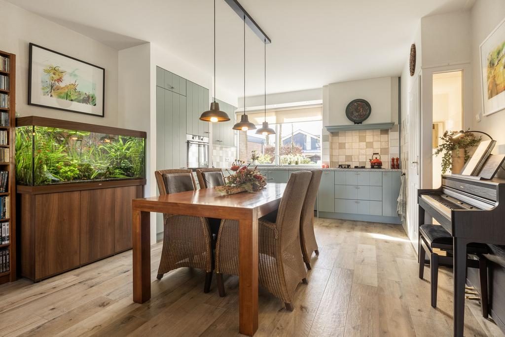 Centraal tussen de woonkamer en keuken bevindt zich het eetgedeelte. Hier is meer dan voldoende ruimte voor een grote eettafel met stoelen. Een fijne plek om met familie en/of vrienden te genieten van een hapje, drankje en spelletje!