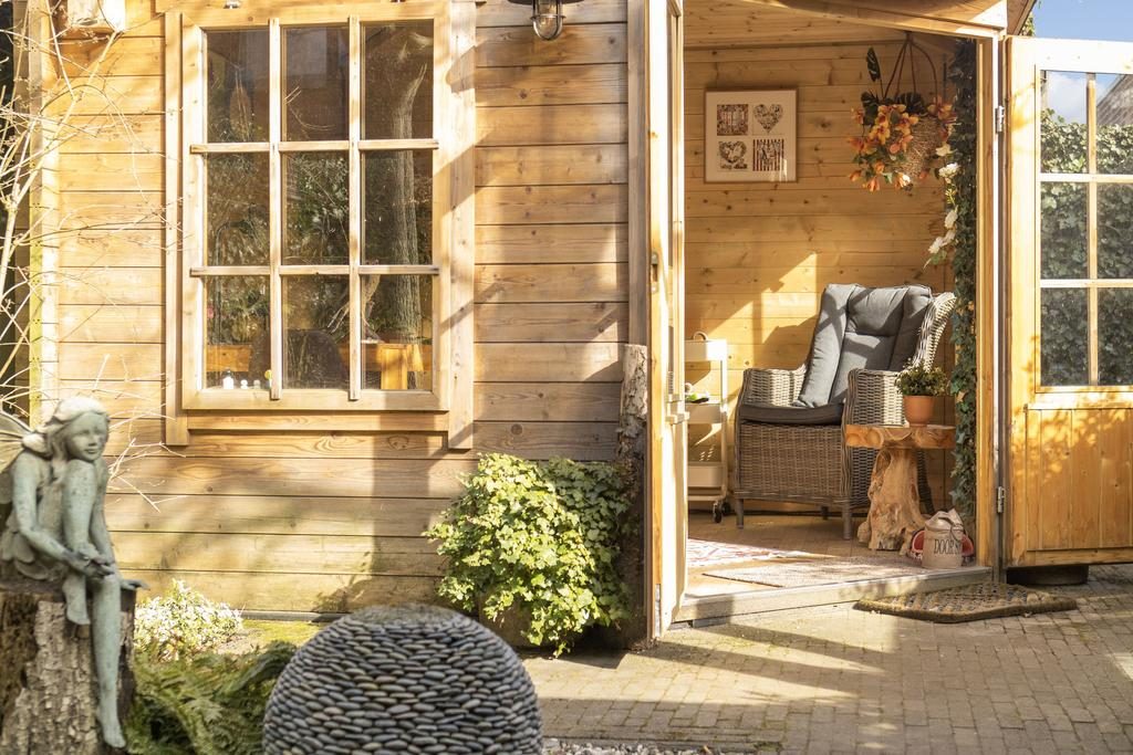 In de tuin zijn tevens twee vrijstaande houten bijgebouwen waarbij de ene dient als schuur/berging en de andere als een tuinhuisje waar je heerlijk in kunt zitten.
