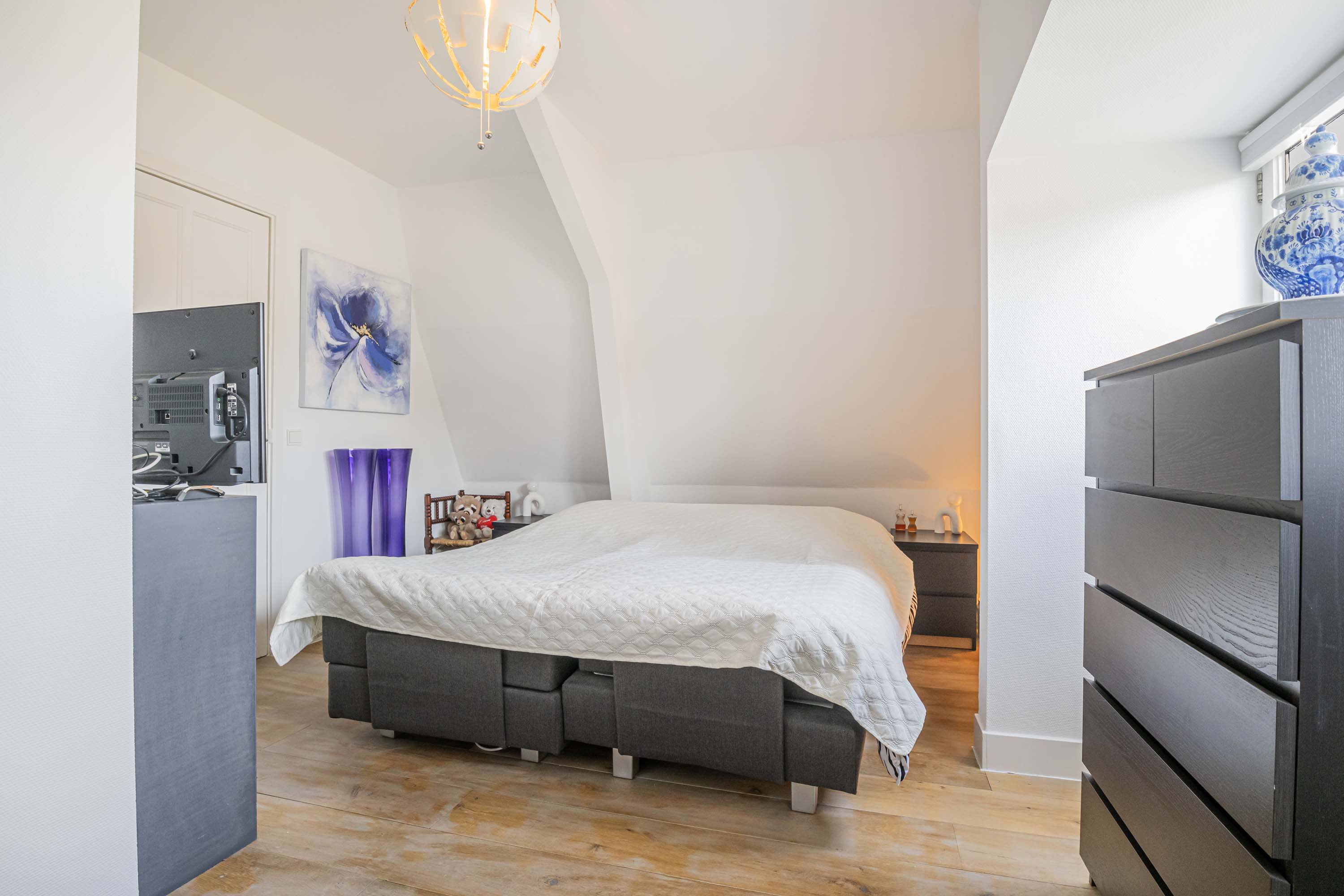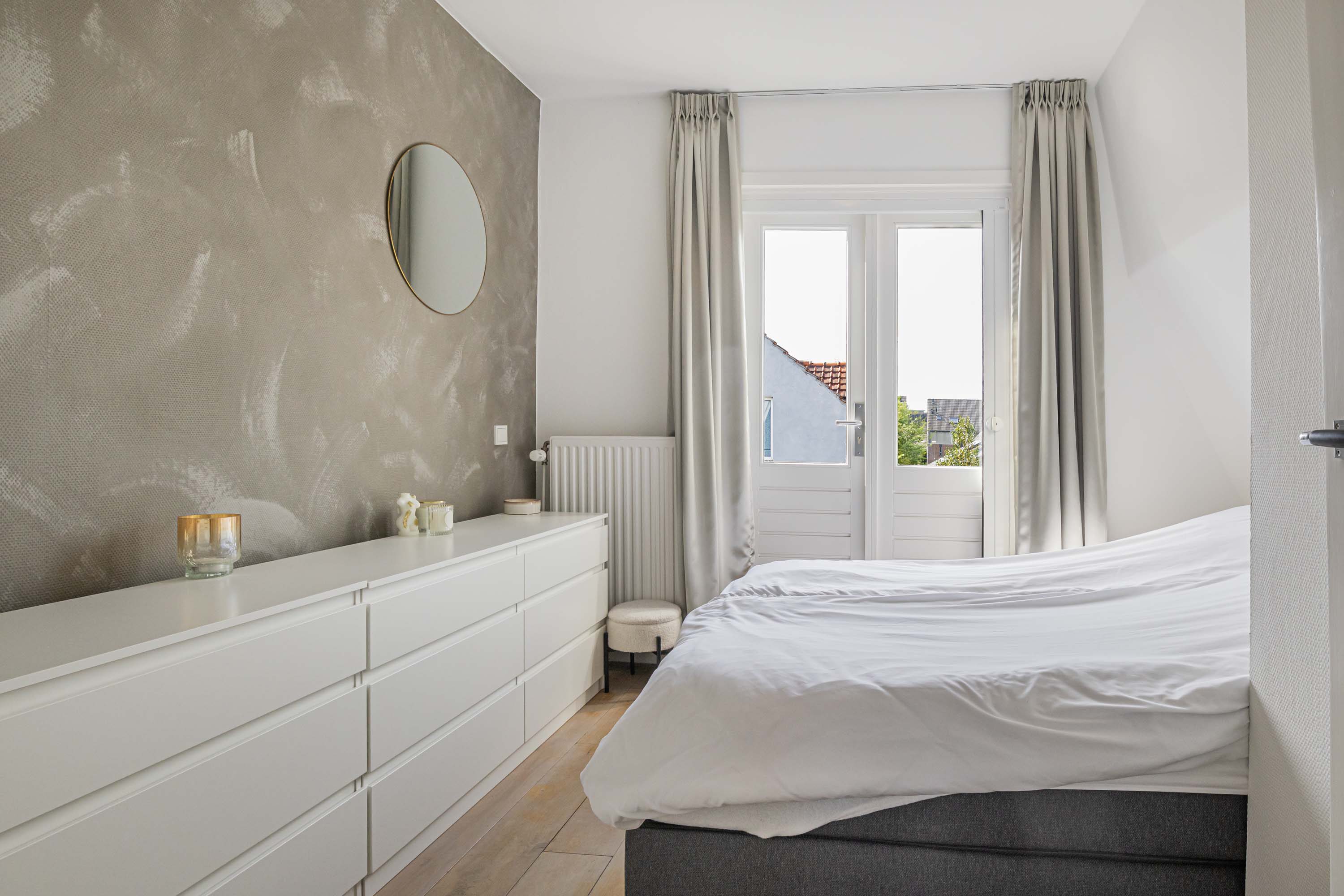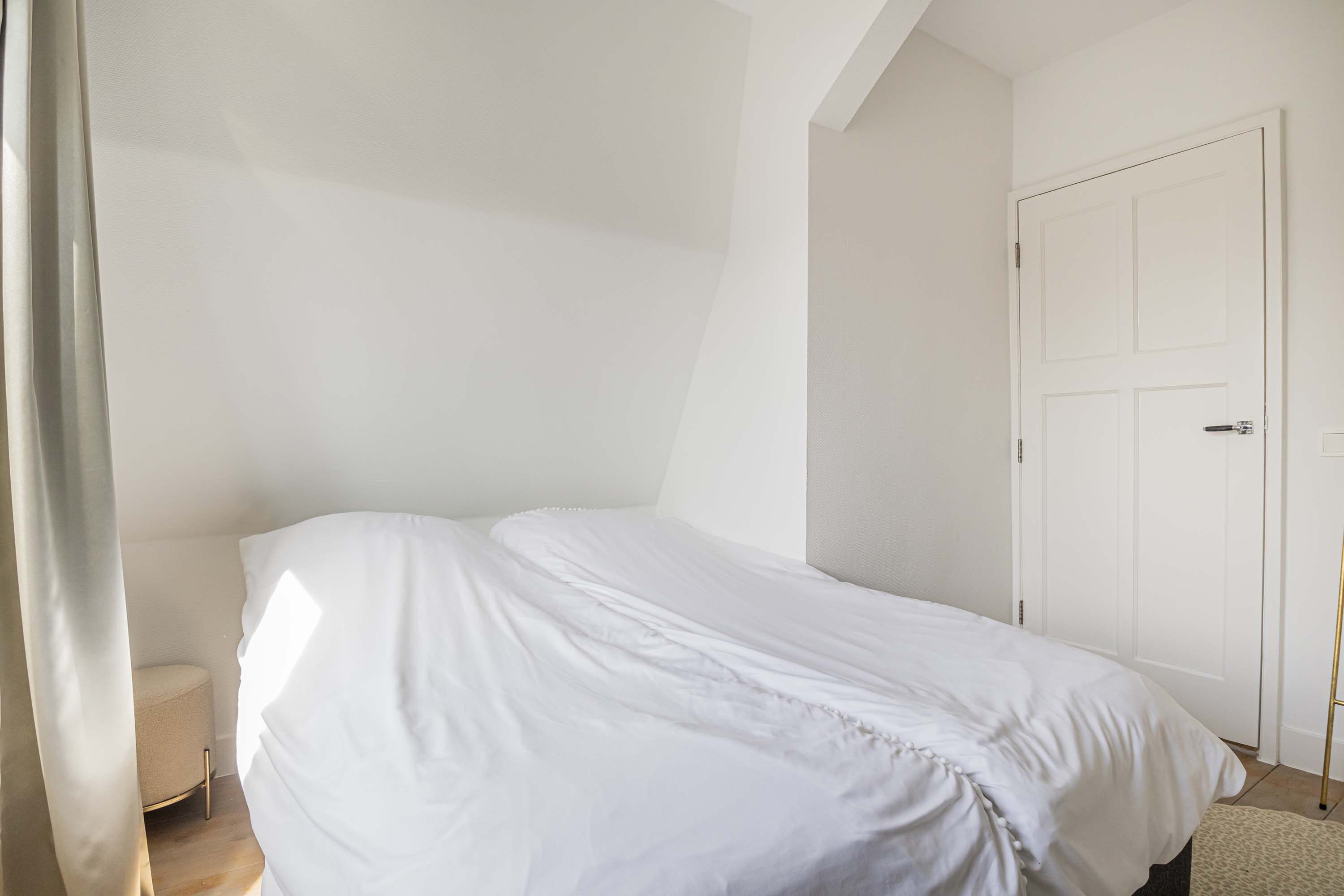 Via de stijlvolle open trap kom je op de eerste verdieping. Vanaf de overloop heb je toegang tot drie ruime slaapkamers. De slaapkamer aan de voorkant van de woning is extra praktisch en sfeervol met twee ingebouwde kasten én een directe verbinding naar de badkamer.