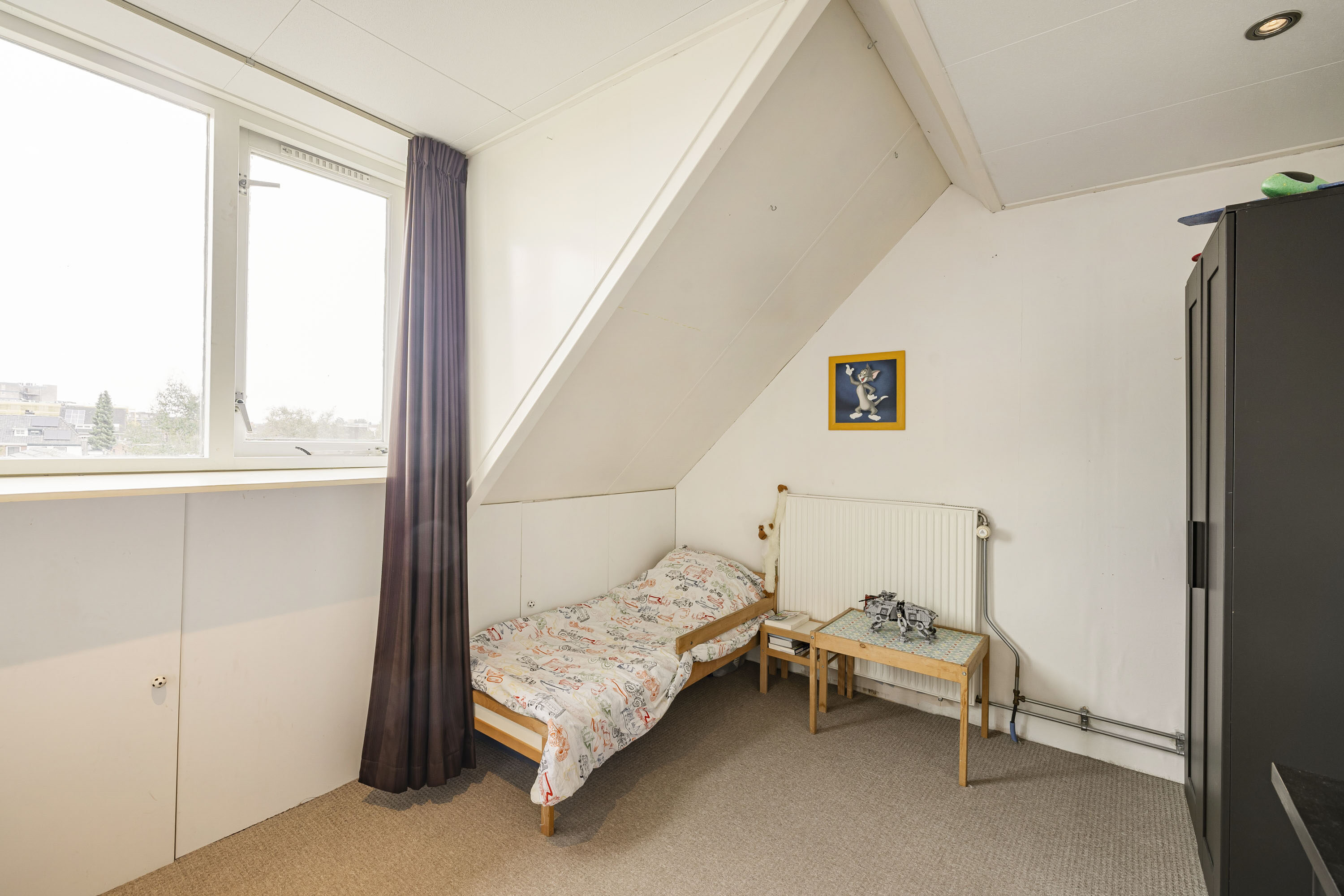Een ruime overloop verbindt de andere drie slaapkamers, met afmetingen van 9,8 m², 9,7 m² en 3,7 m². Elke kamer beschikt over een raampartij en opbergschotten, zodat er voldoende ruimte is voor opslag en organisatie. Via een vlizotrap op de overloop is een ruime vliering te bereiken.