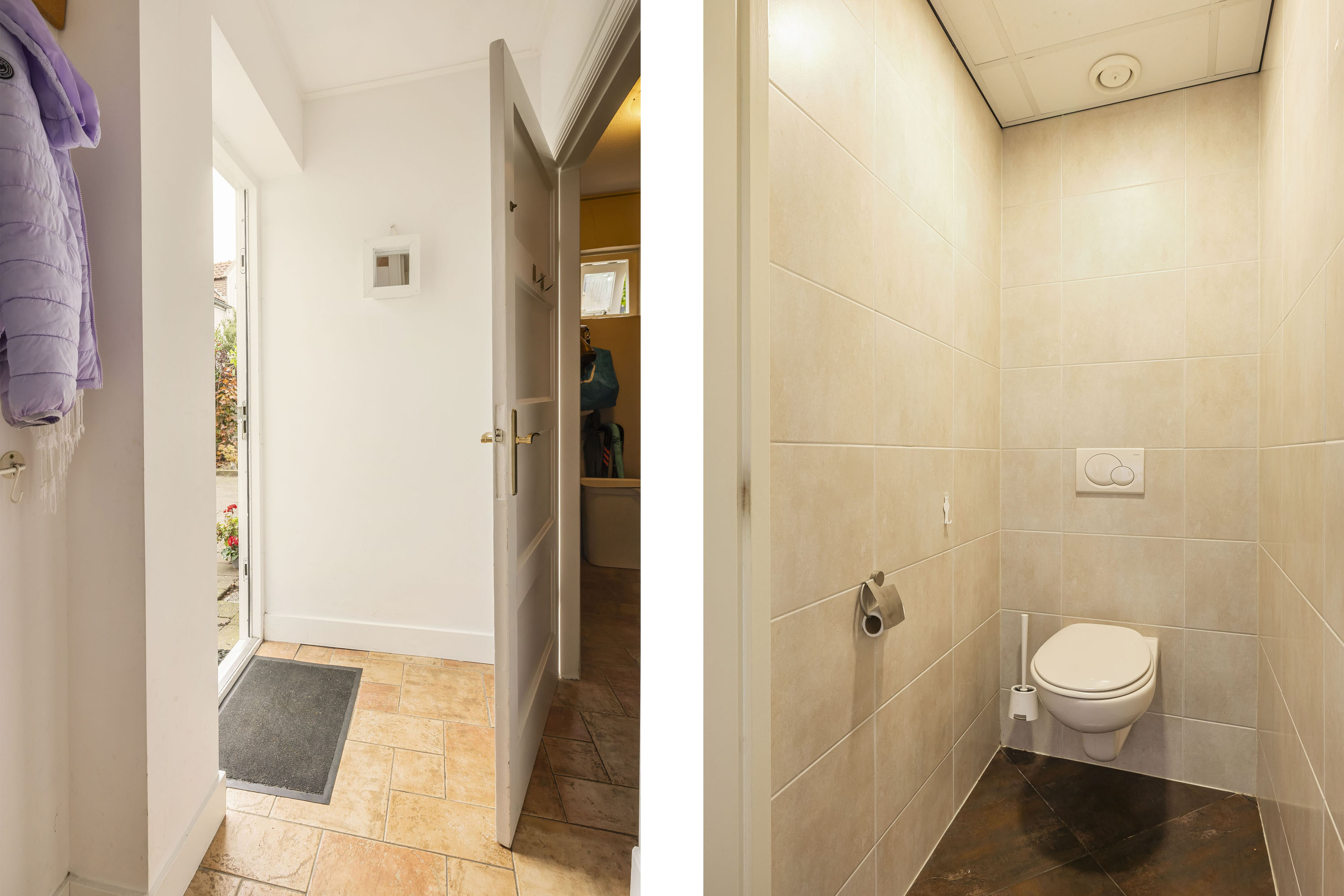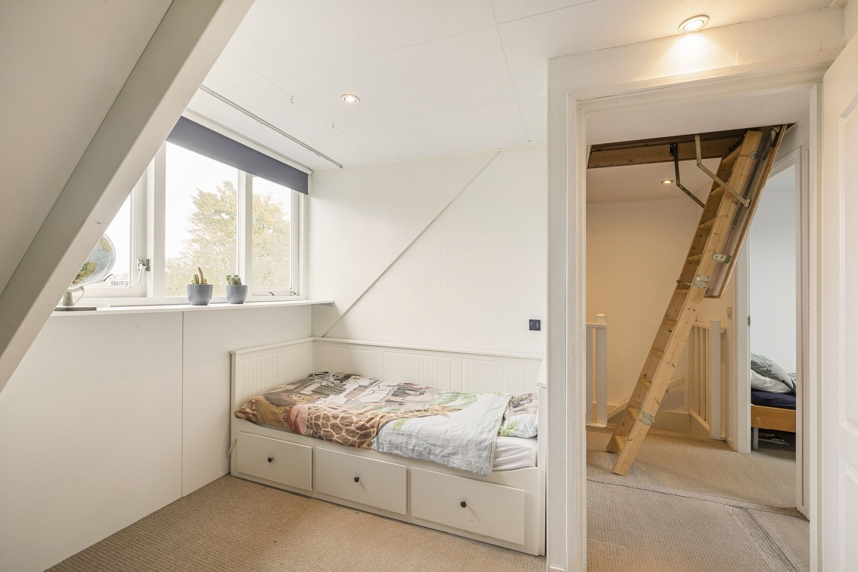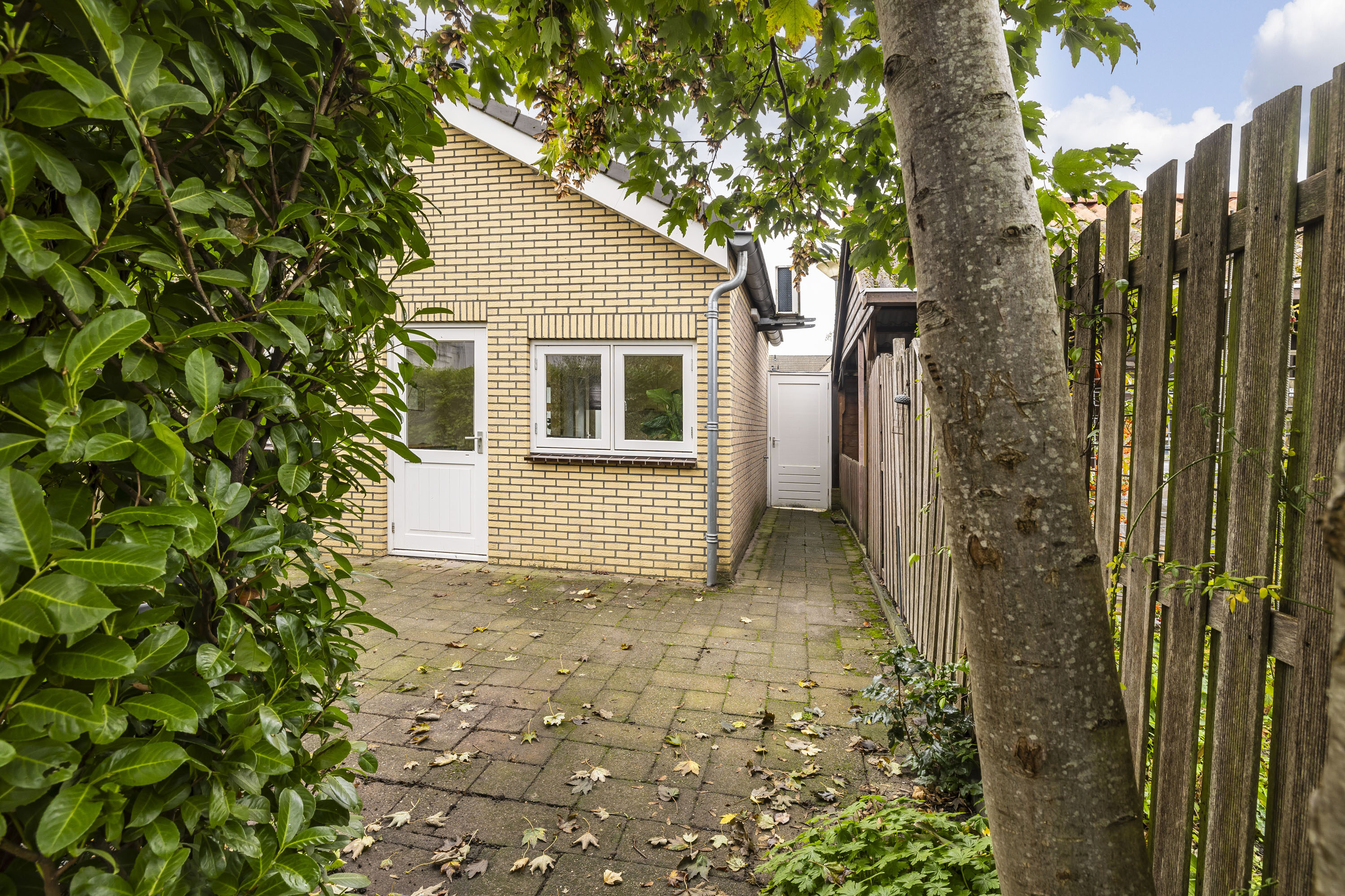 Achter in de tuin vind je een bijgebouw dat zowel vanuit de tuin als vanaf de parkeerplaats aan de Blekerij via een hal met toilet bereikbaar is. Hierin treed je binnen in een lichte woonkamer van 19,7 m², waarin tevens een compact aanrecht met wasbak is geïntegreerd. Deze ruimte leent zich uitstekend als kantoor, hobbyruimte of sport-/fitnessruimte. Het bijgebouw is tevens voorzien van een praktische bergzolder.