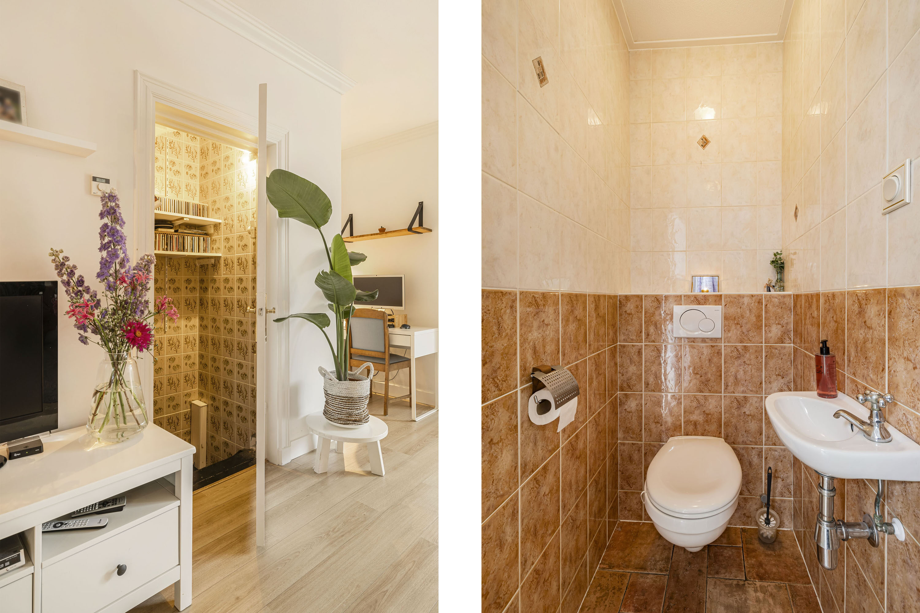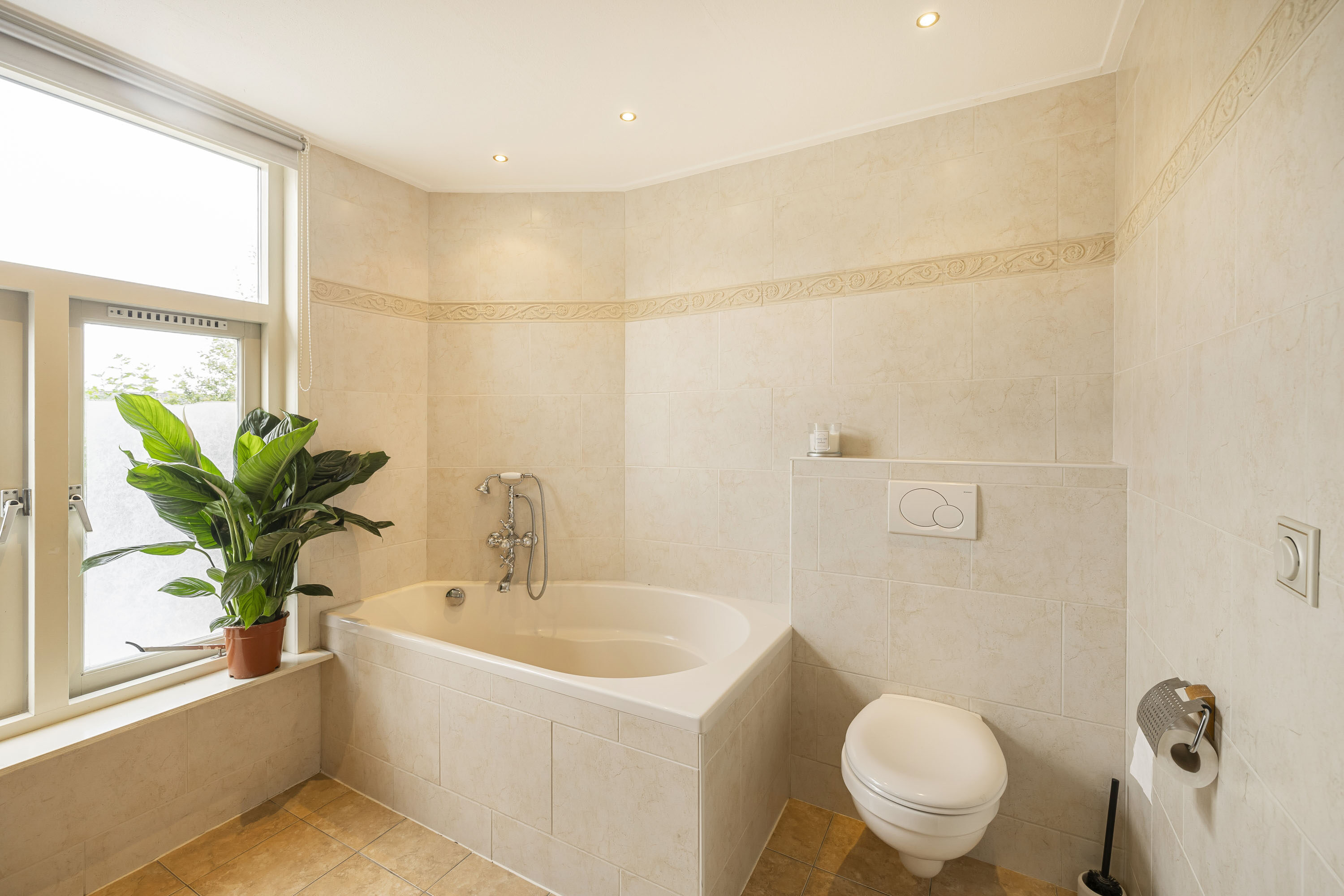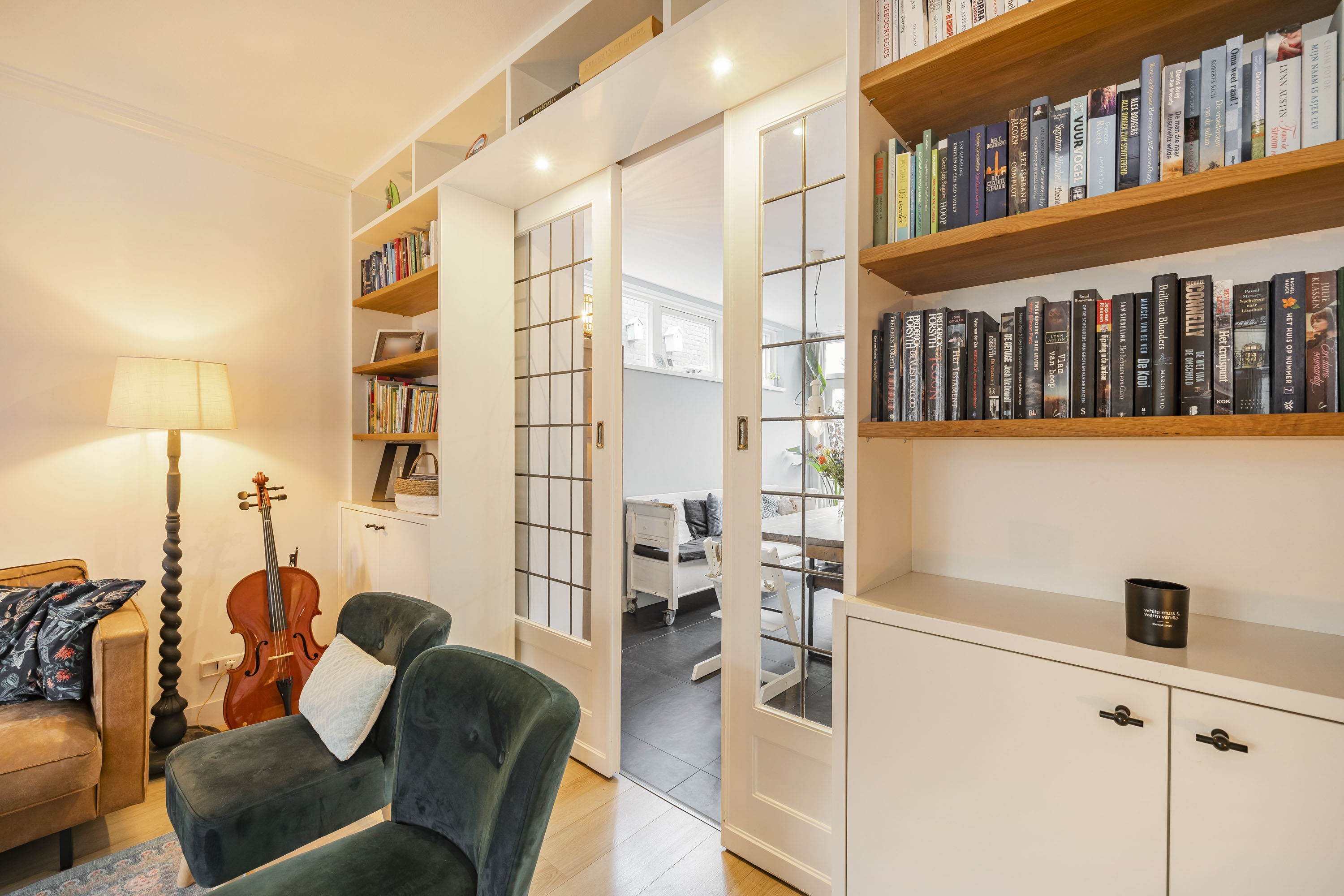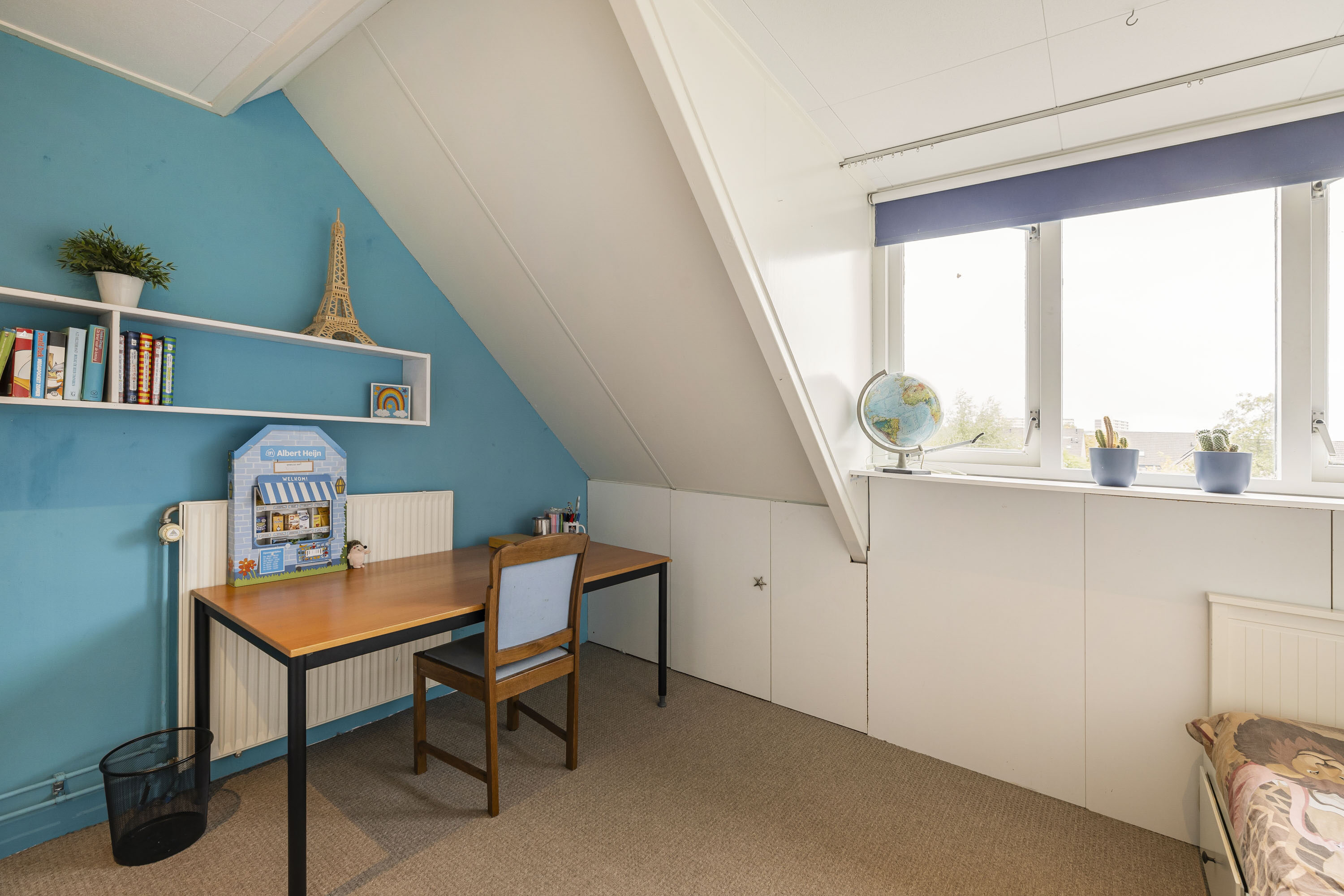 Achter in de tuin vind je een bijgebouw dat zowel vanuit de tuin als vanaf de parkeerplaats aan de Blekerij via een hal met toilet bereikbaar is. Hierin treed je binnen in een lichte woonkamer van 19,7 m², waarin tevens een compact aanrecht met wasbak is geïntegreerd. Deze ruimte leent zich uitstekend als kantoor, hobbyruimte of sport-/fitnessruimte. Het bijgebouw is tevens voorzien van een praktische bergzolder.