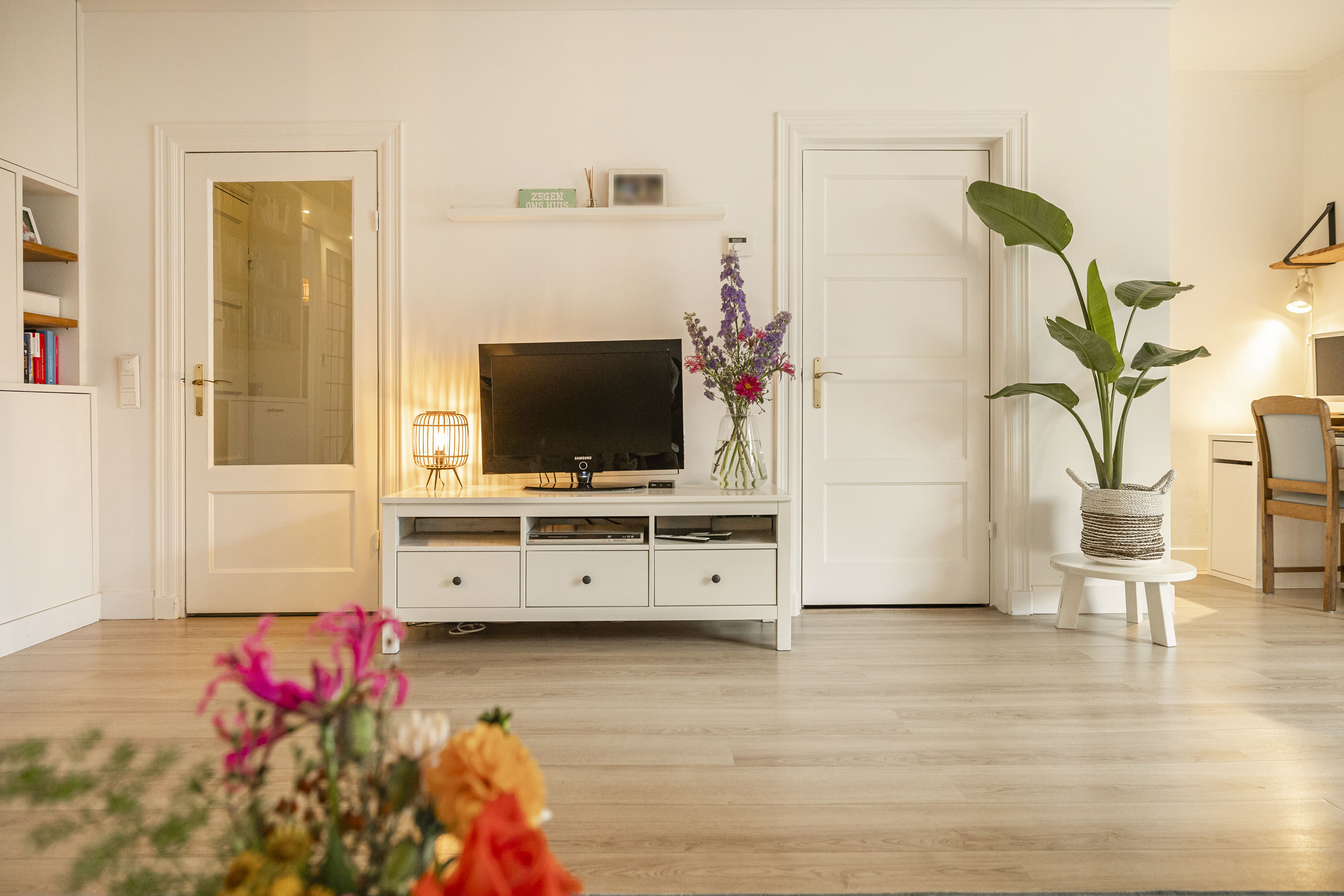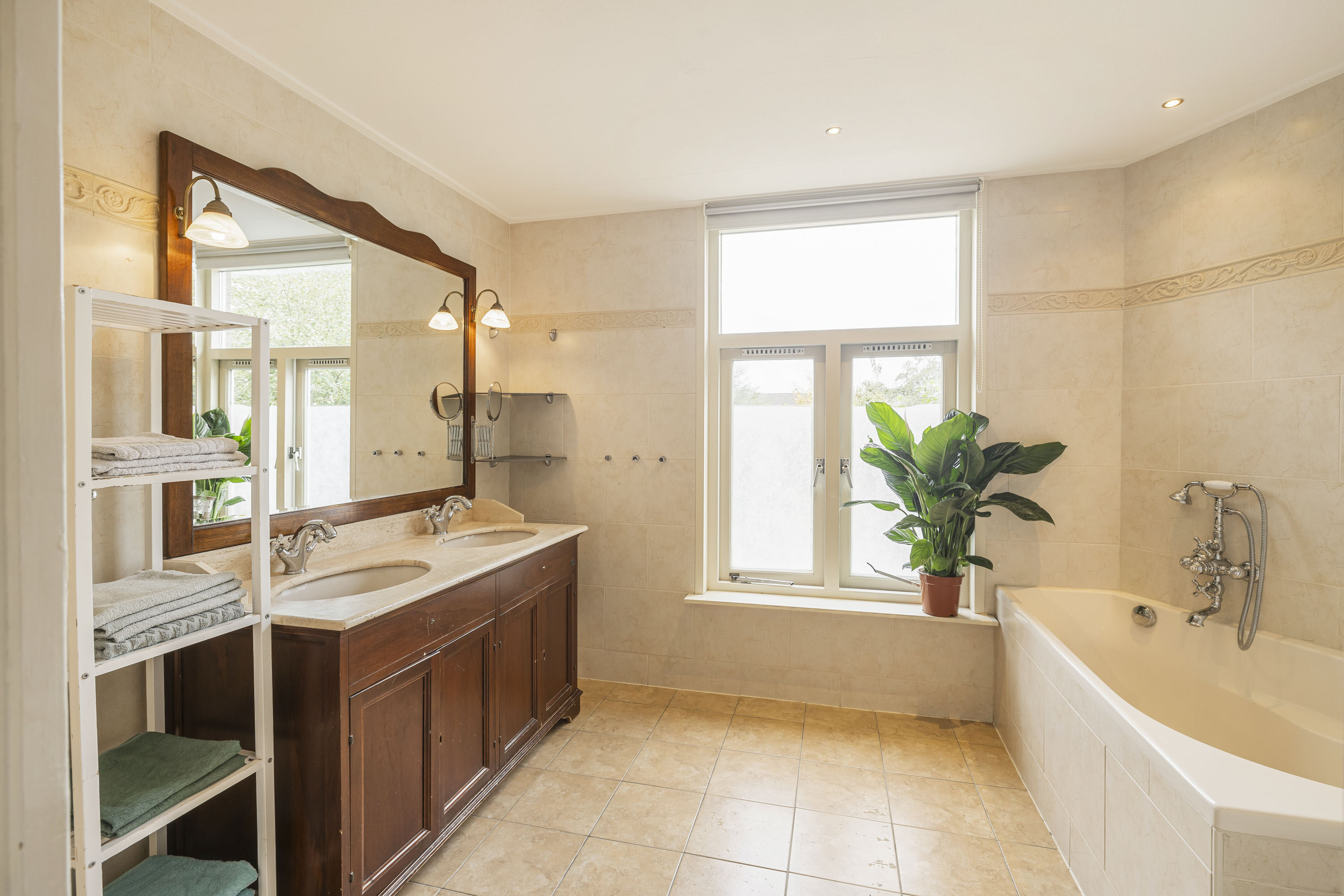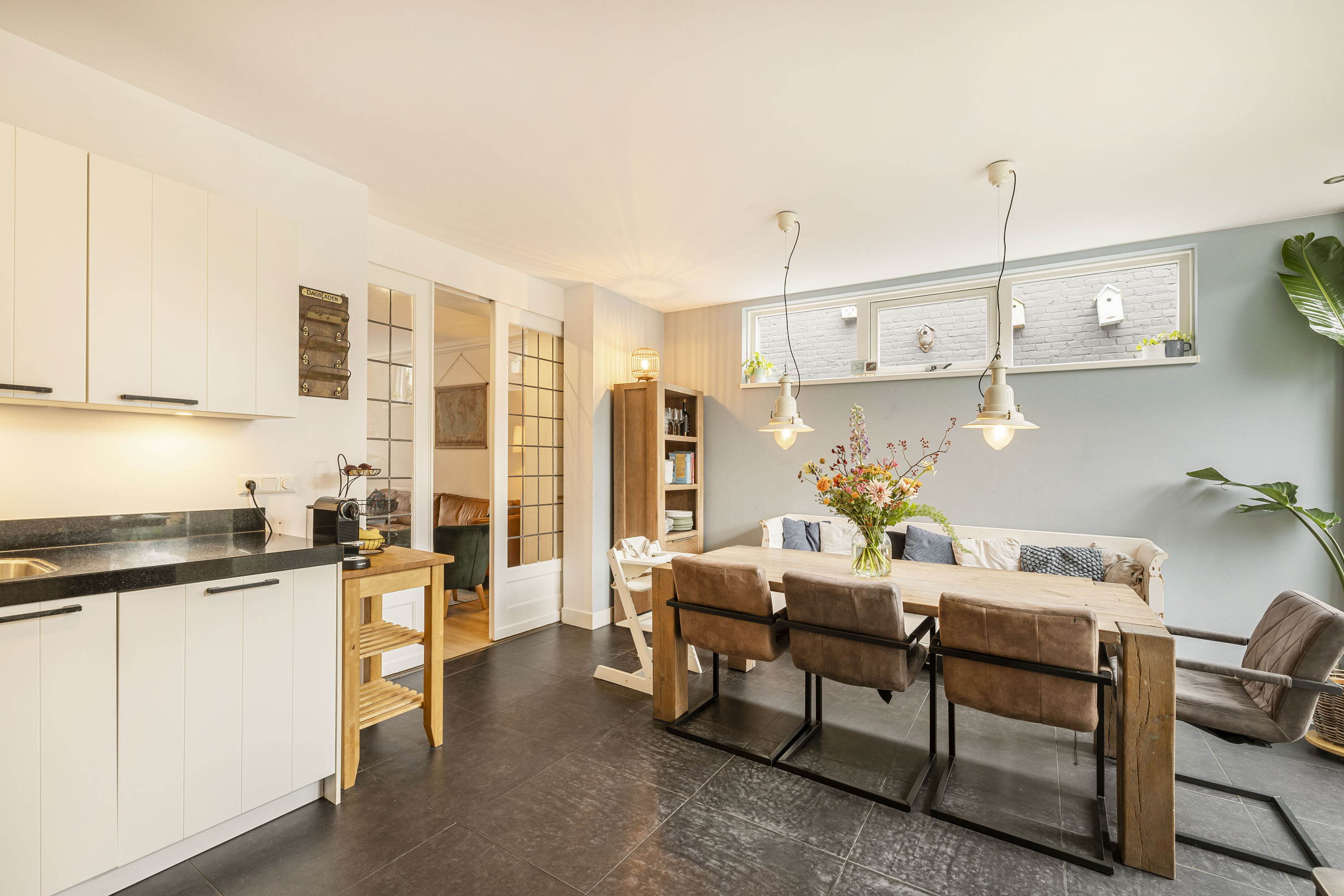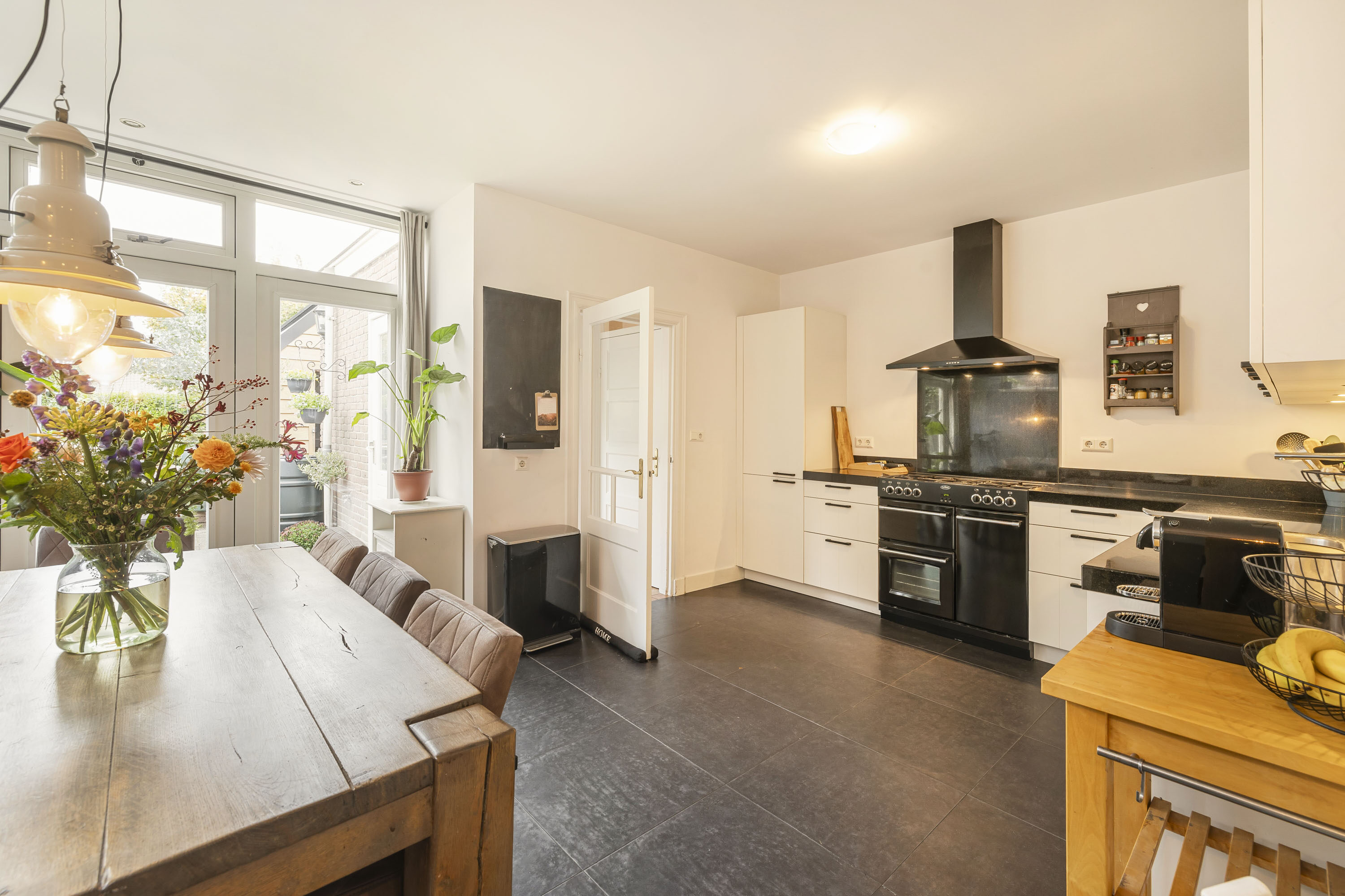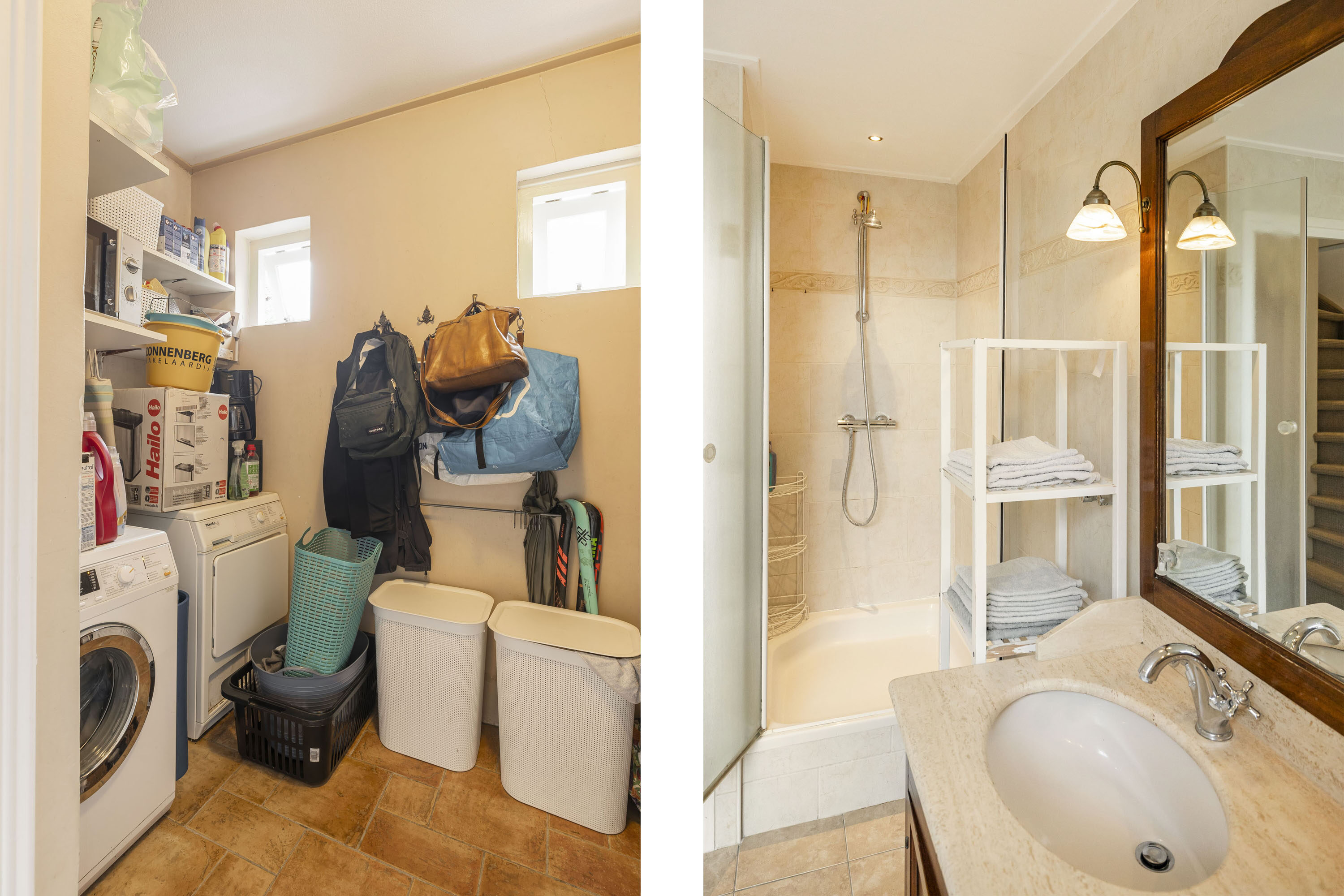 Bij binnenkomst betreed je een lichte, open woonkamer van 37,9 m², waar een grote familiebank en diverse zithoeken ideaal zijn om te ontspannen. Een heerlijke ruimte, welke beschikt over fijn veel daglicht, om te genieten na een lange (werk) dag! Vanuit de woonkamer leiden schuifdeuren, inclusief stijlvolle kasten, naar een royale, 23,6 m² grote leefkeuken. Deze L-vormige keuken, ingericht met witte kastjes en een donker werkblad, biedt voldoende ruimte voor een grote eettafel en is uitgerust met moderne inbouwapparatuur zoals een gasfornuis, afzuigkap, oven, koelkast en vaatwasser. Daarnaast geniet de keuken van het comfort van vloerverwarming. Ook is er vanuit de keuken toegang tot een hal met toilet en een bijkeuken van 5,4 m², waarin een douche is geïntegreerd en waar de aansluitingen voor de wasmachine en/of droger zich bevinden.