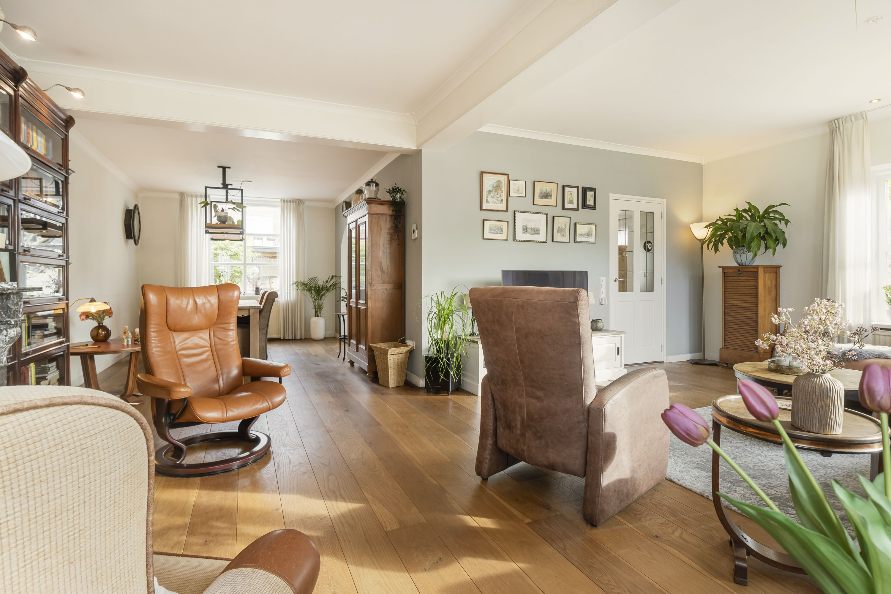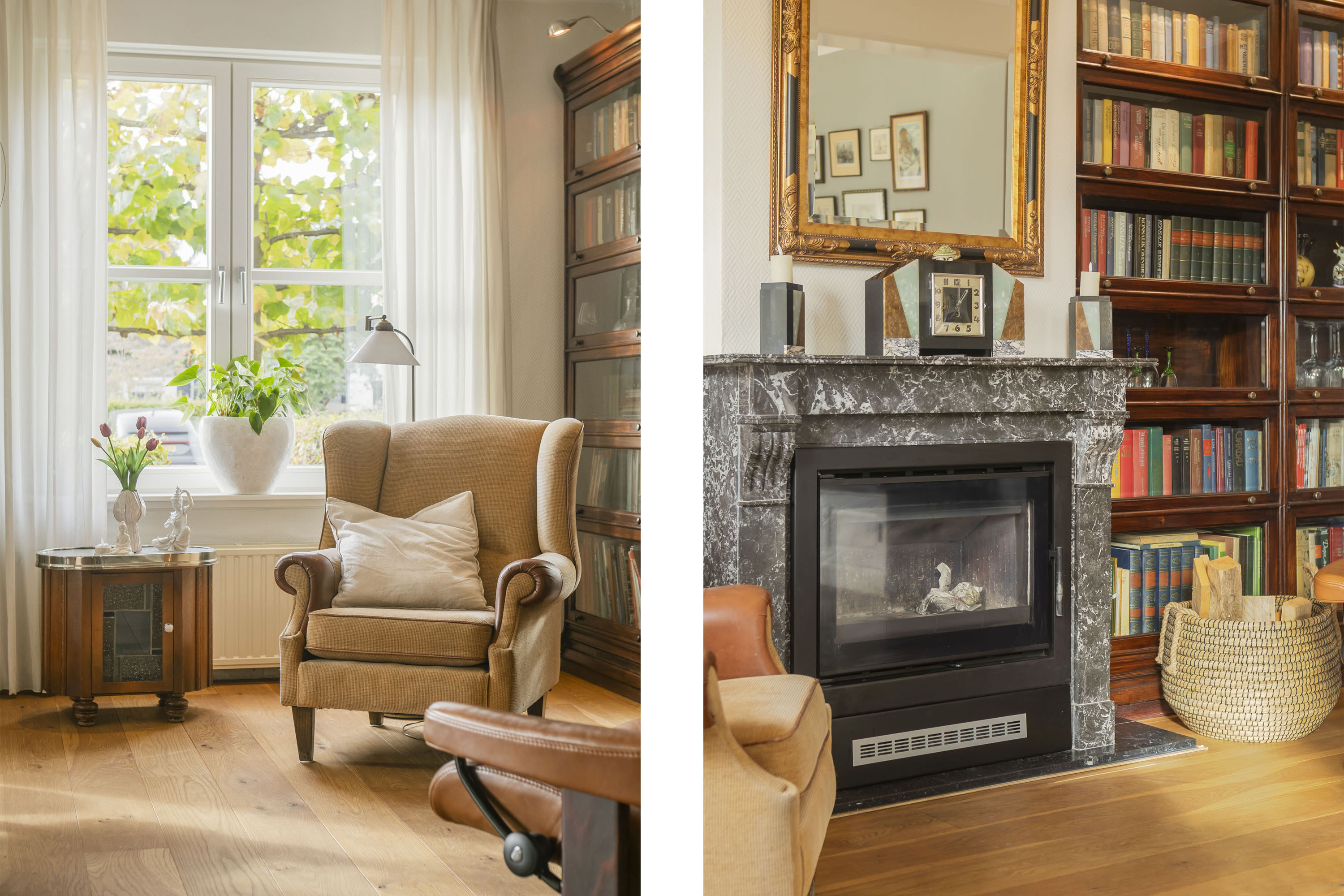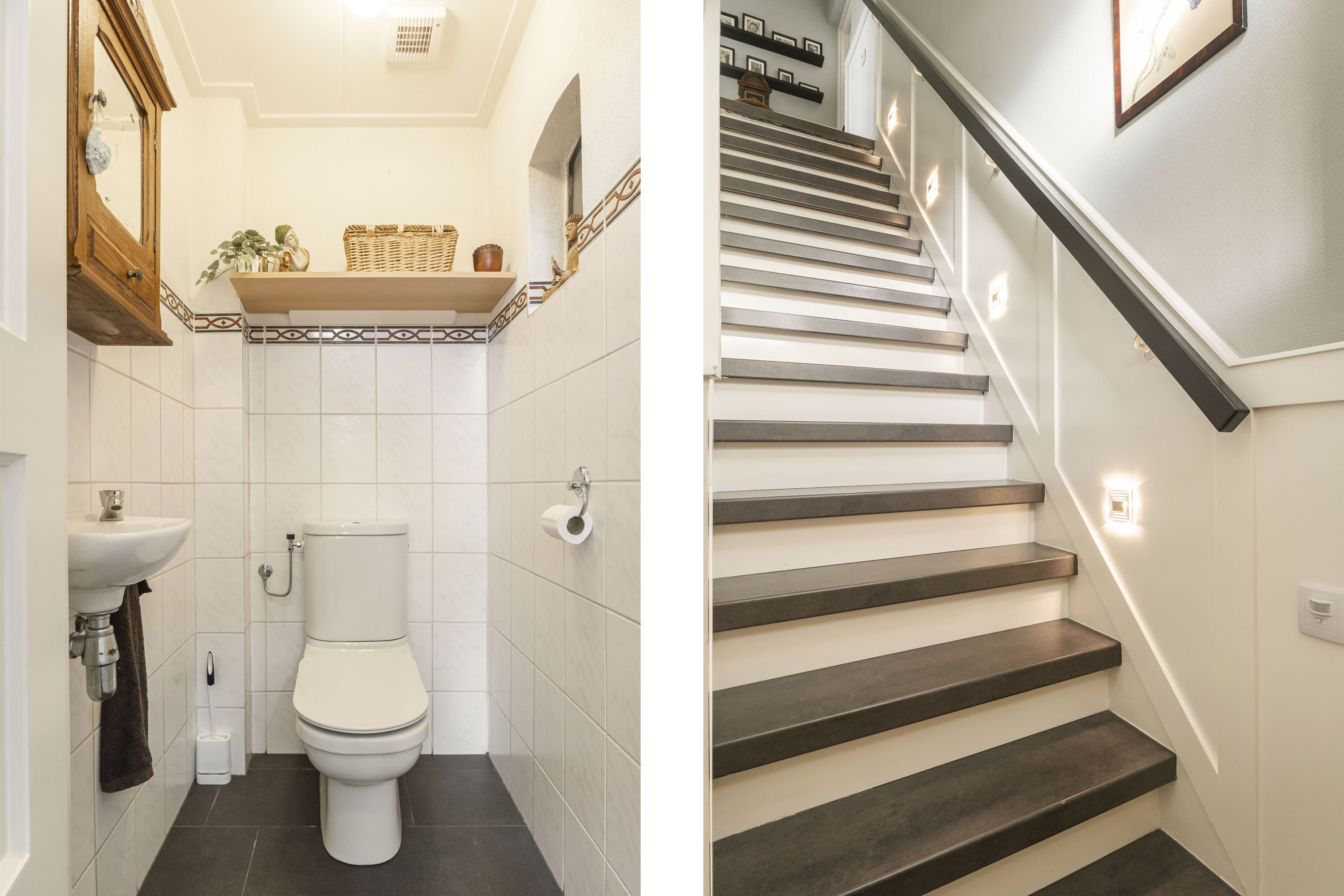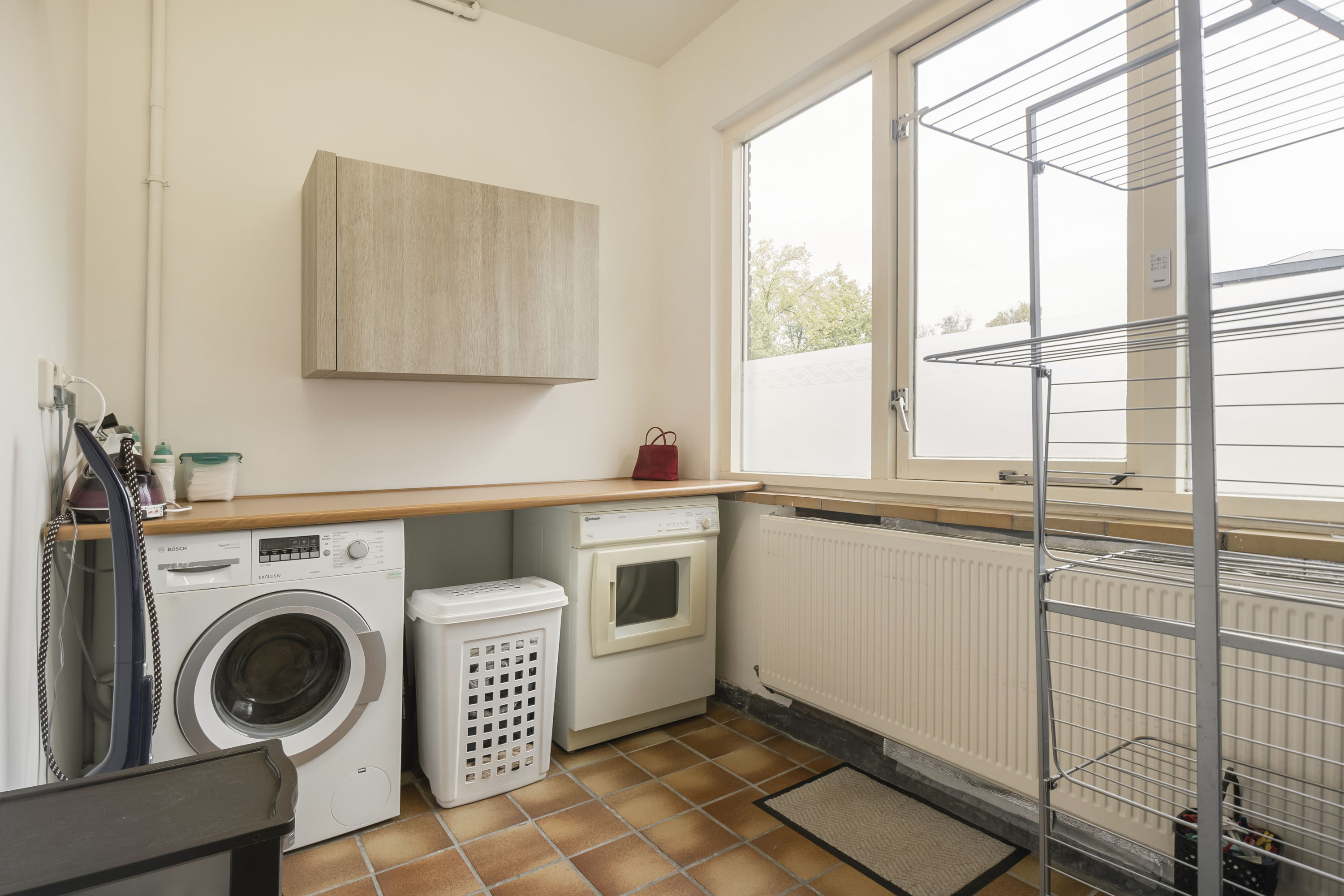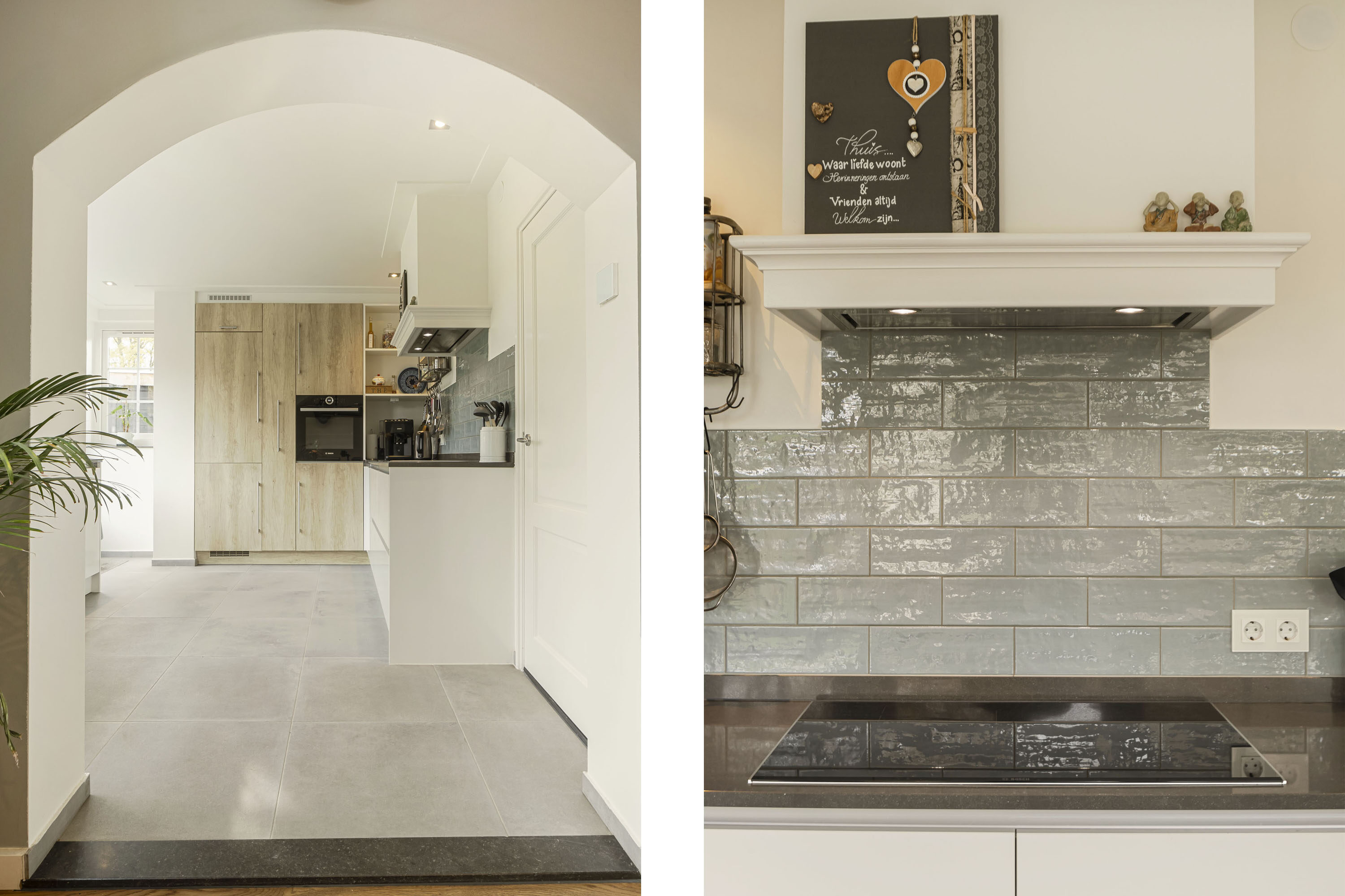 Via de entree, waar ook een toilet en trapopgang te vinden zijn, kom je in de lichte en uitnodigende woonkamer van 48,2 m². Dankzij het vele daglicht heb je hier ruimte voor een grote zitbank en gezellige zithoekjes. De open haard zorgt op koude winterdagen voor een warme en sfeervolle ambiance. Aan de achterzijde van de woning vind je het eetgedeelte, waarna je de in 2017 aangebouwde keuken bereikt. Deze moderne keuken is uitgevoerd met witte kastjes, een antracietgrijs werkblad en diverse inbouwapparatuur – zoals een kookplaat, afzuigkap, oven, koel-vriescombinatie en vaatwasser – en is tevens voorzien van vloerverwarming. Vanuit de keuken krijg je toegang tot een kelder van 12,6 m², ideaal om je spullen op te bergen.