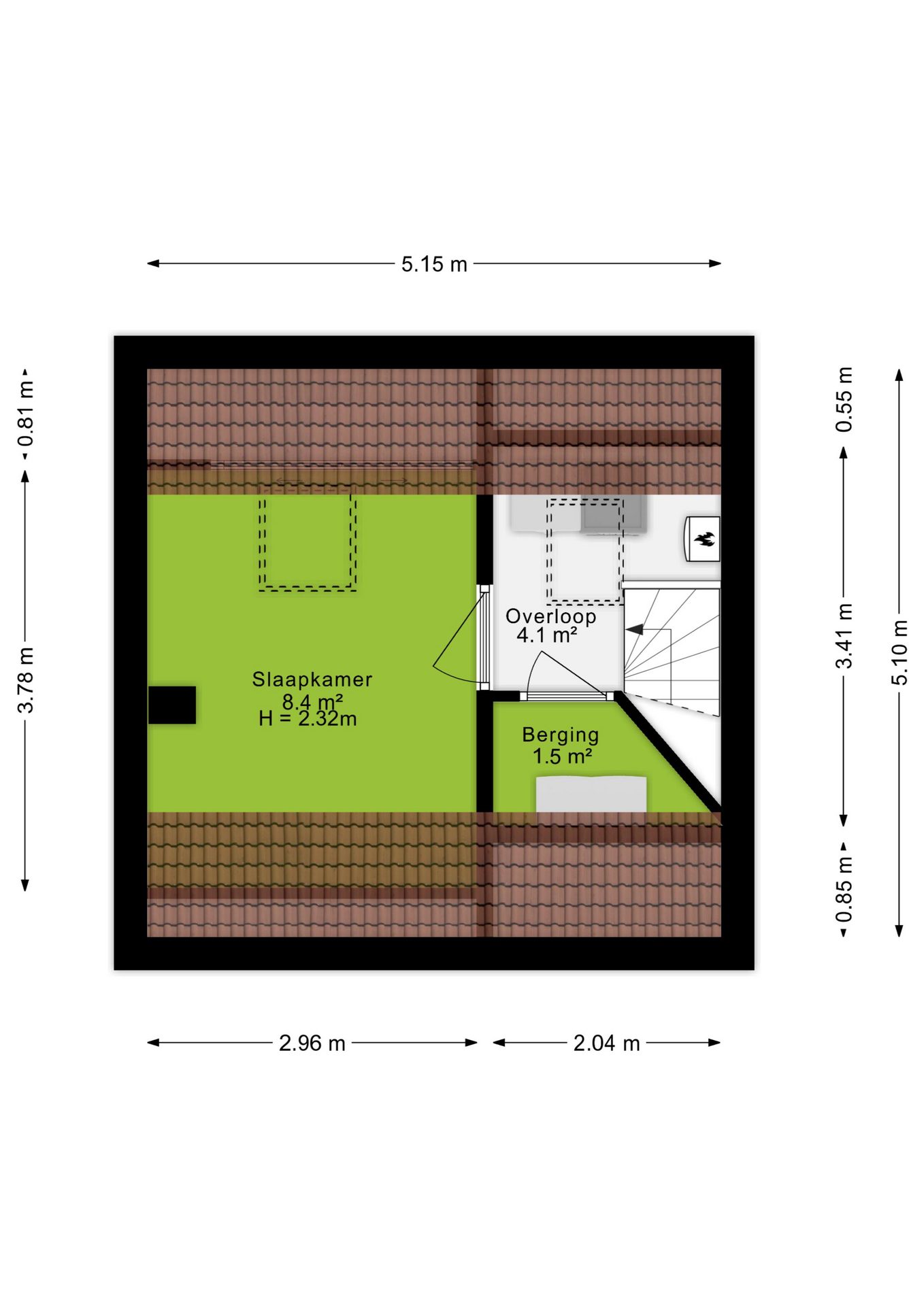 Via een vaste trap bereik je de tweede verdieping, waar een vierde slaapkamer te vinden is. Deze kamer wordt verlicht door een dakraam. Daarnaast biedt deze verdieping praktische bergruimte, ideaal voor het opbergen van spullen.