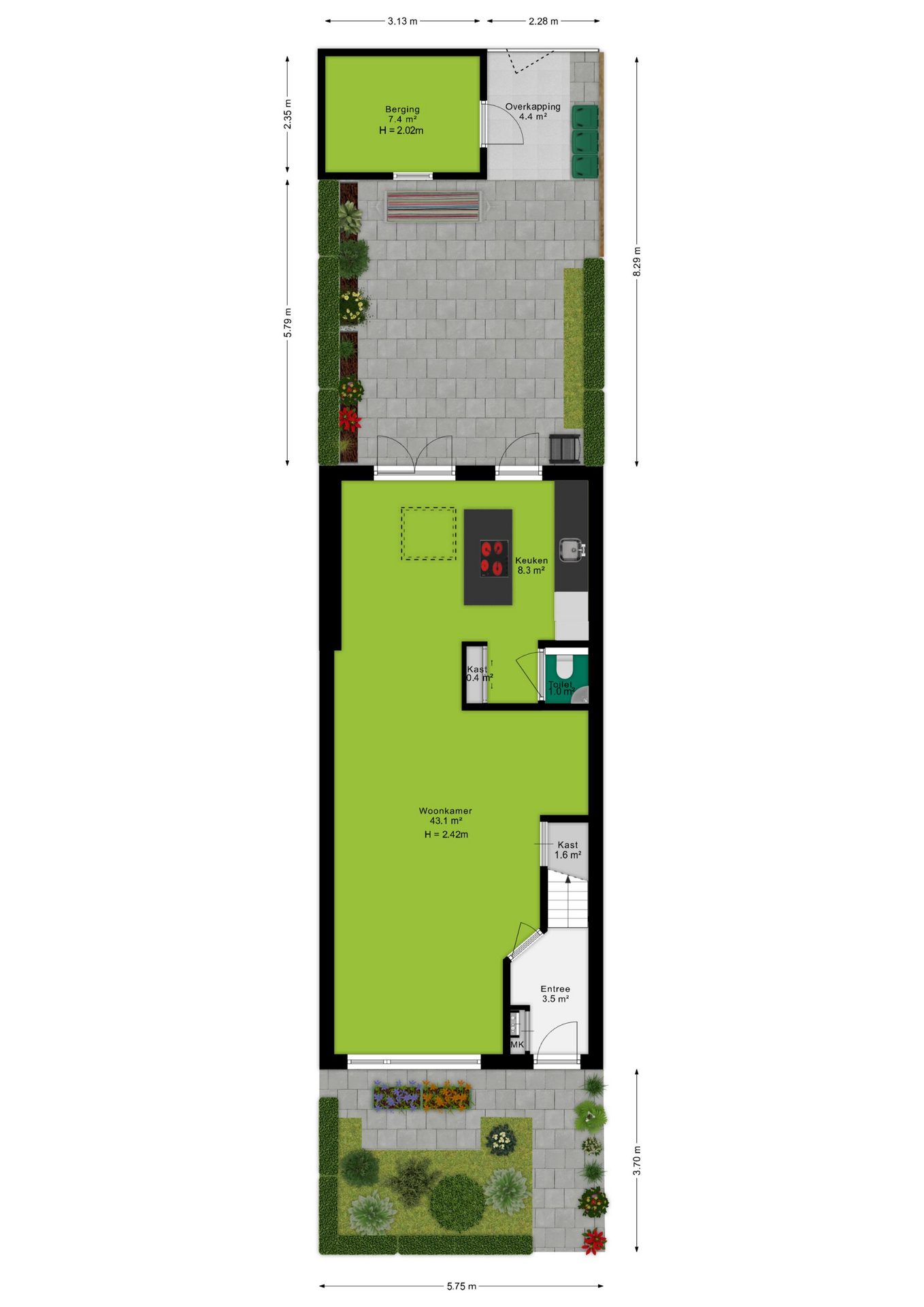Tuinligging: zuidwest;