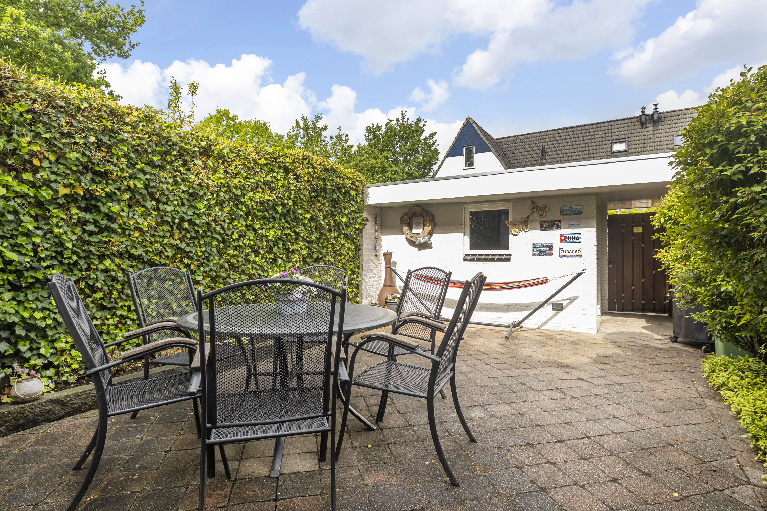 De achtertuin is heerlijk gelegen op het zonnige zuidwesten en voorzien van een zonnescherm voor extra comfort. Daarnaast vind je hier een praktische stenen berging, ideaal voor opslag.