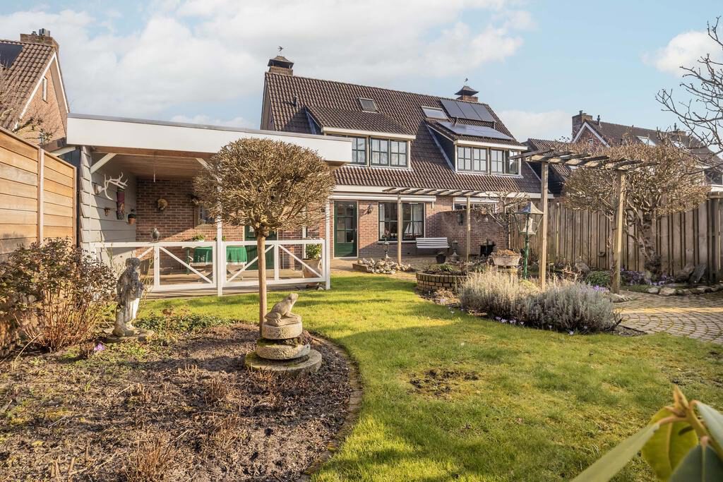 De tuin, gelegen op het noordwesten, strekt zich uit over een royale 12 meter diep en 10 meter breed. Deze buitenruimte biedt volop mogelijkheden voor ontspanning en recreatie. Een gezellige overkapping nodigt uit tot het genieten van lange zomeravonden, ongeacht het weer. Daarnaast is er een praktische berging aanwezig, ideaal voor het opbergen van tuingereedschap en andere benodigdheden.