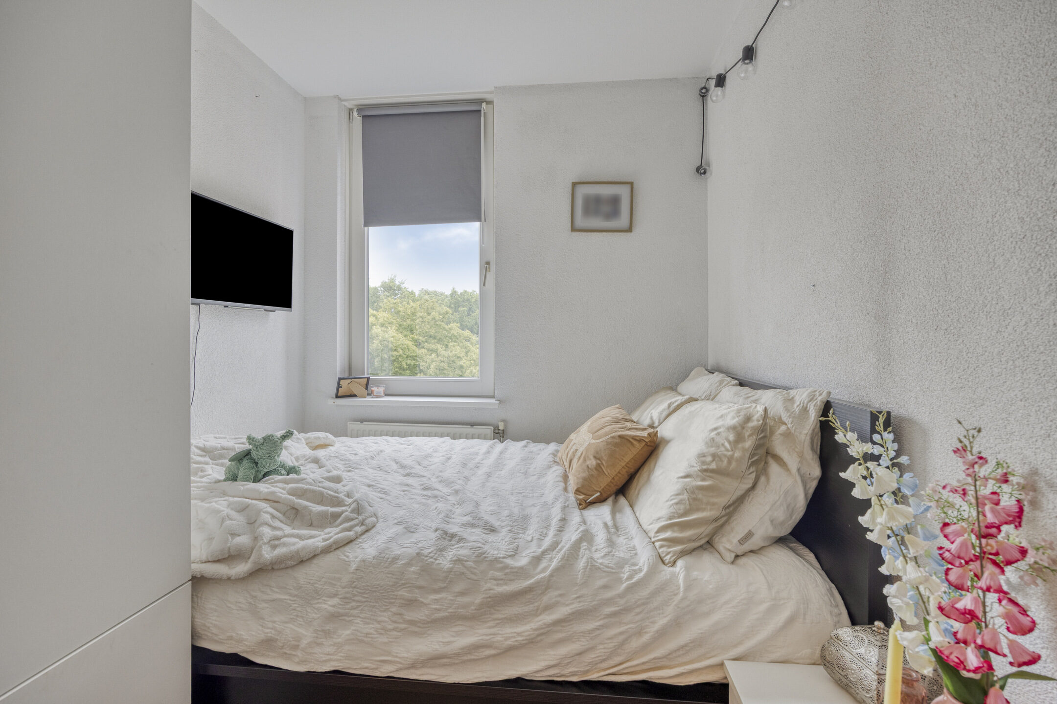 Het appartement beschikt over twee slaapkamers van 11m² en 8m², beide voorzien van daglicht en voldoende ruimte voor een kledingkast.