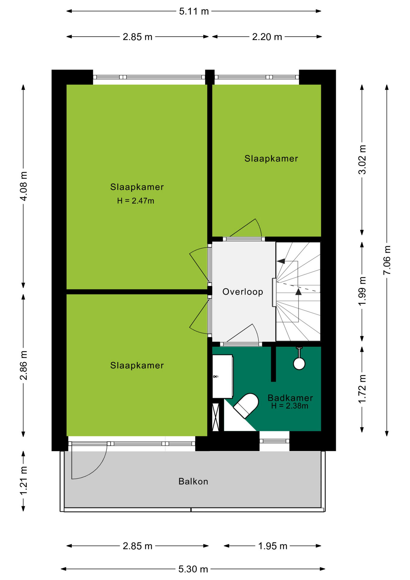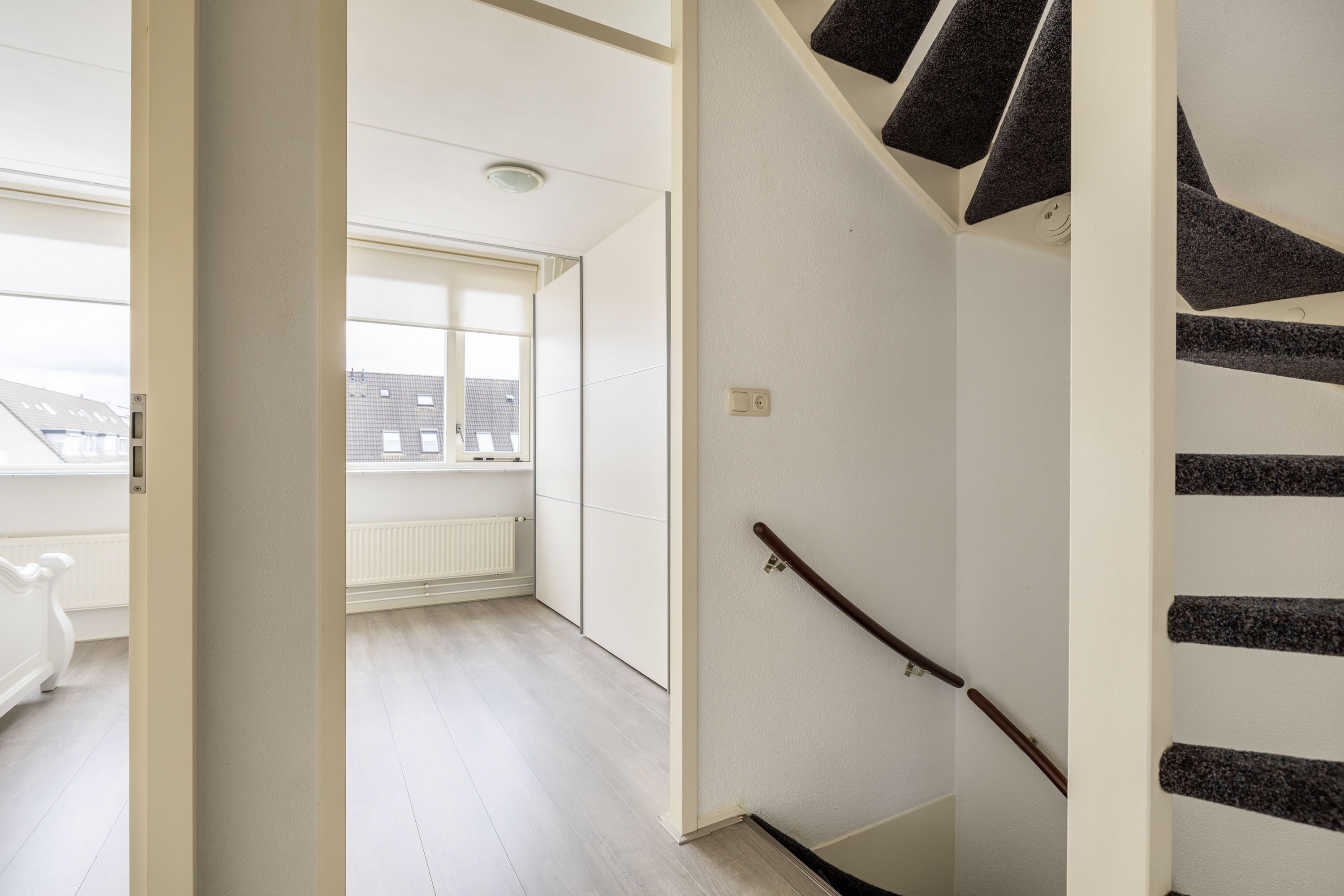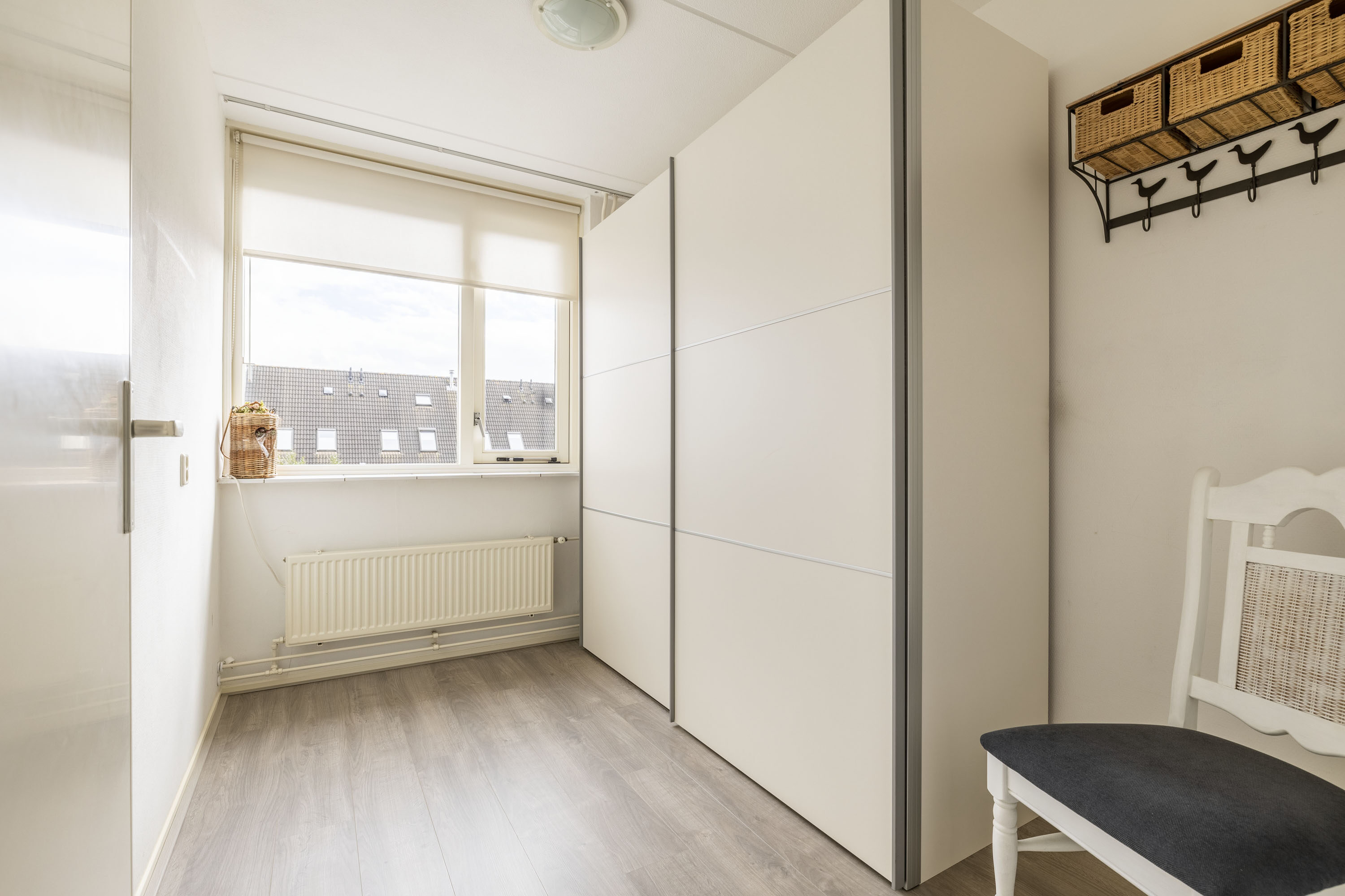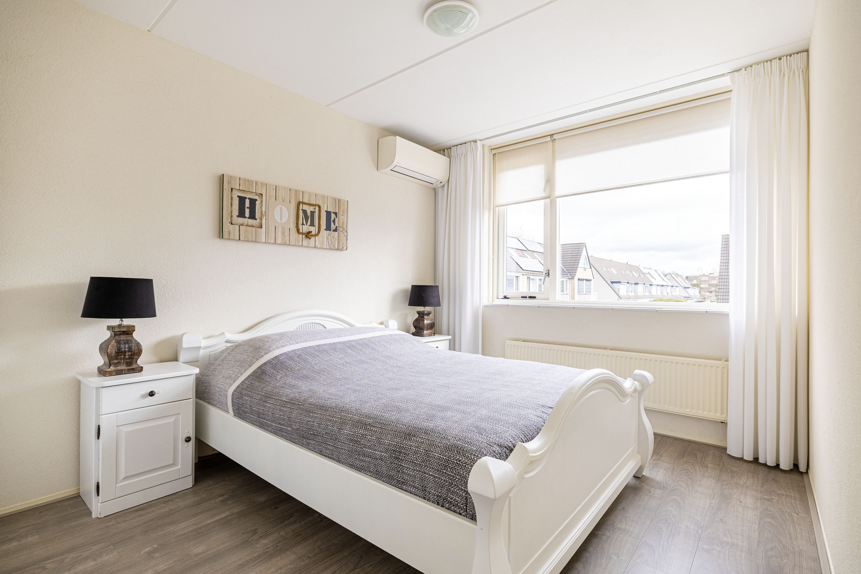 Via de vaste trap kom je bij de hal met de trapopgang naar de 2e verdieping en toegang tot de 3 slaapkamers en de badkamer. Slaapkamer I (circa 8 m²) is gelegen aan de voorzijde van de woning en beschikt over een toegangsdeur naar het balkon van circa 6 m². Slaapkamer II (ca. 12m2) en slaapkamer III (ca. 7m2) zijn gelegen aan de achterzijde van de woning en geven je een prettig uitzicht over de verzorgde achtertuin. De grootste slaapkamer is tevens voorzien van een airco. De badkamer is modern uitgevoerd en voorzien van wastafelmeubel met enkele wastafel, 2e toilet, inloopdouche en een te openen raam voor de gewenste natuurlijke ventilatie.