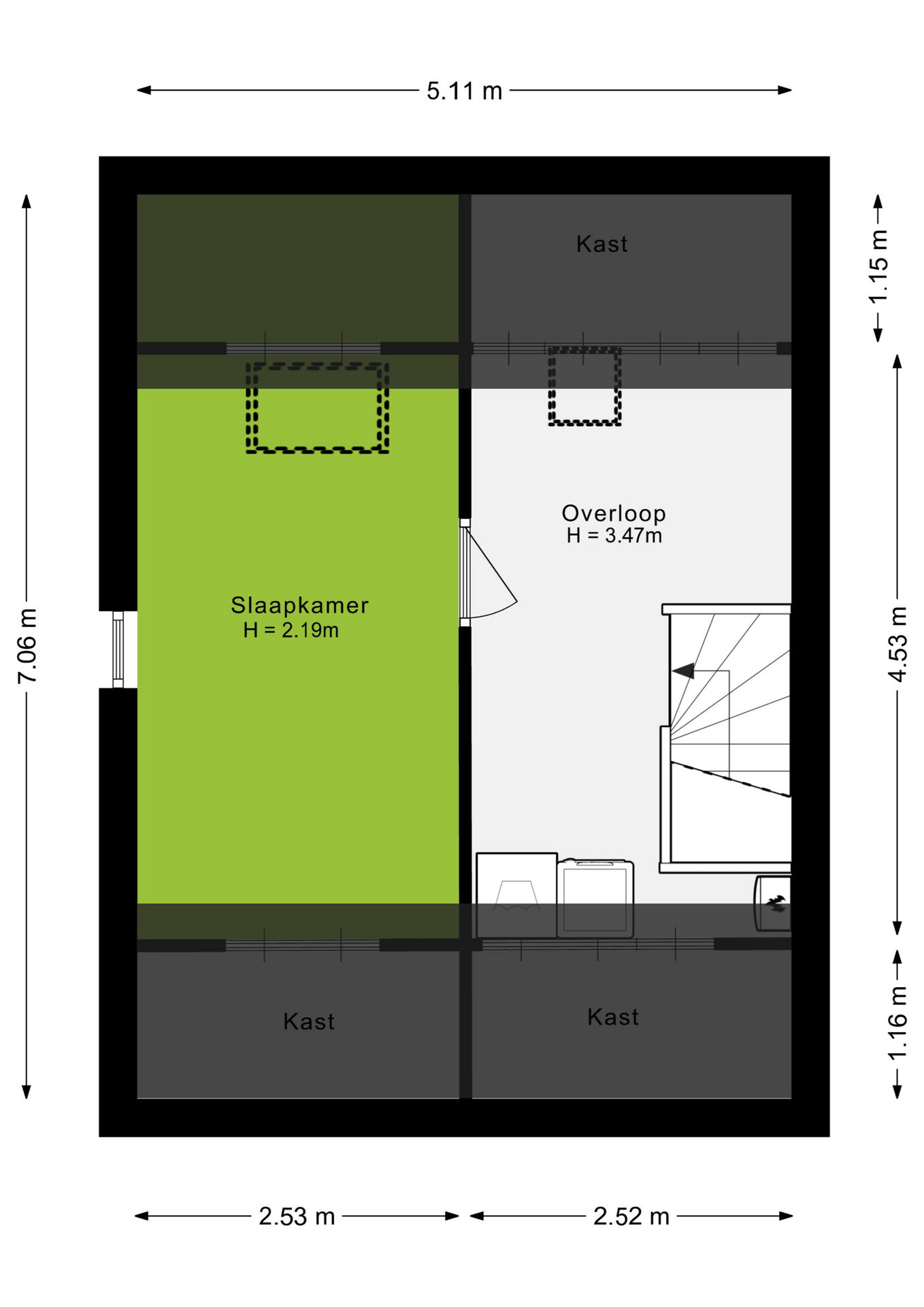 Een riante voorzolder voorzien van een HR C.V.-ketel, dakramen, opbergruimte achter de knieschotten en een wasmachineaansluiting. De zolder is al voorzien van een kamerindeling waardoor je kan beschikken over een riante 4e slaapkamer van ruim 11 m².