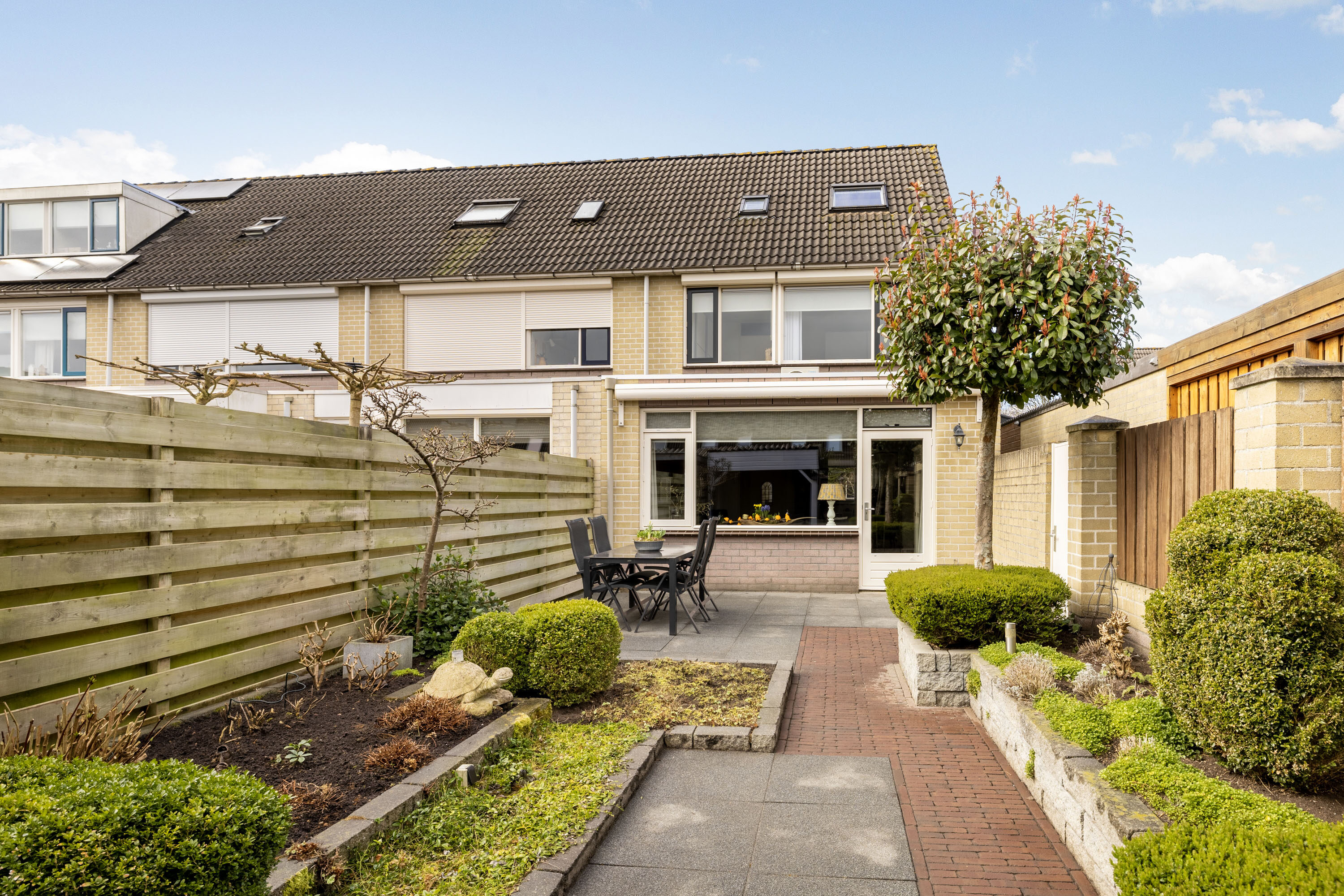 De achtertuin is gelegen op het zuidoosten en een eyecatcher van de woning. Zeer verzorgd aangelegd en voorzien van fraaie beplanting. Door de ligging hoef je je geen zorgen te maken over te weinig zonuren. Omdat de achtertuin lekker diep is beschik je in de achtertuin over een fijne zitplek.