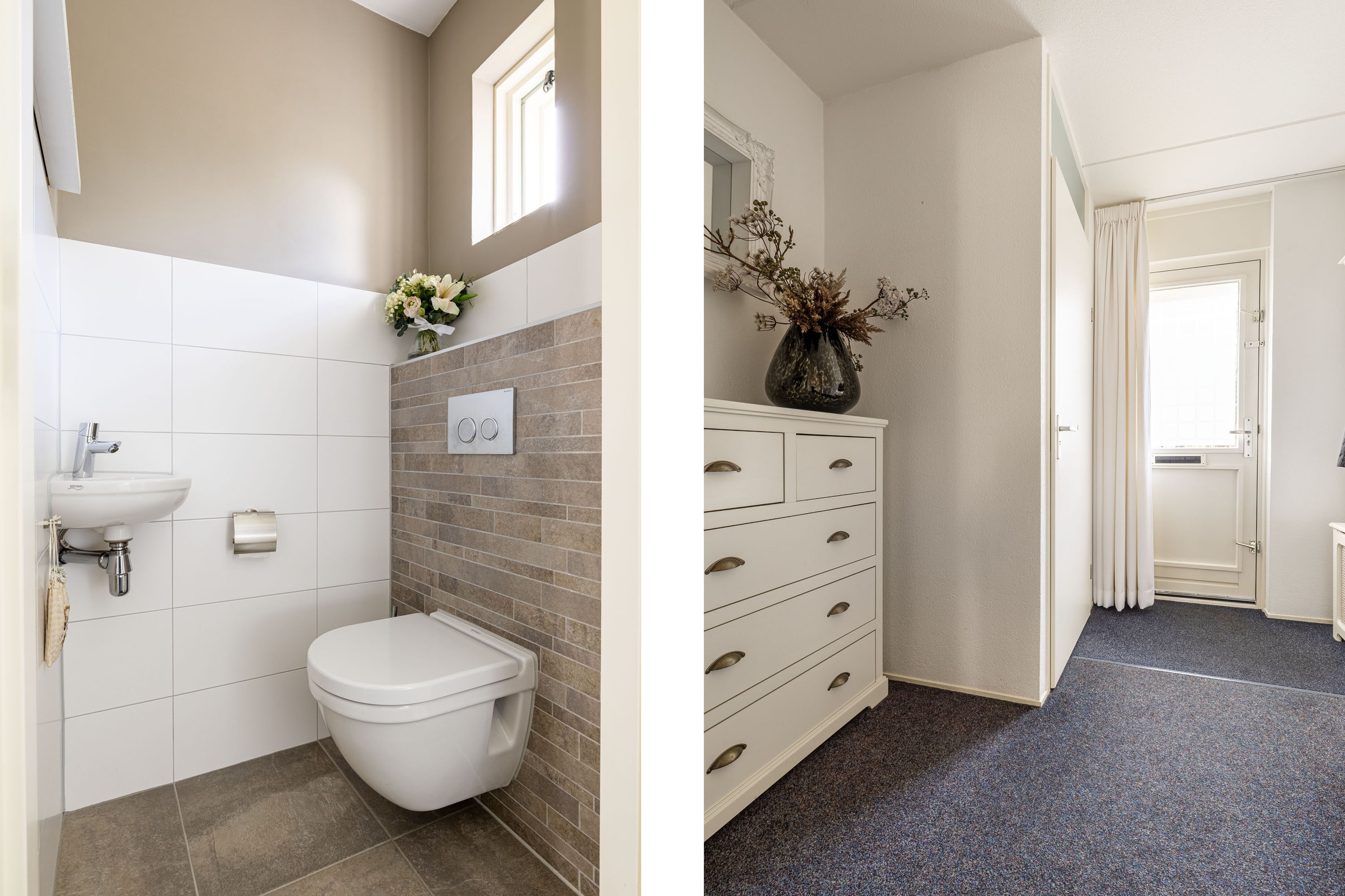 Via de entree kom je bij de ruime hal welke voorzien is van de trapopgang naar de 1e verdieping, garderoberuimte, toegangsdeur naar de leefruimte en de toiletruimte met zwevend toilet, fonteintje en een te openen raam voor de natuurlijke ventilatie. Via de toegangsdeur bereik je de gezellige, tuingerichte woonkamer welke is voorzien van een grote raampartij en een tuindeur naar de achtertuin. Door de prettige indeling is er ruimte genoeg voor een grote eettafel en ontstaat er een gezellige verbinding tussen de woonkamer en de keuken. De open keuken is gelegen aan de voorzijde van de woning, geplaatst in een L-opstelling en voorzien van al het denkbare inbouwapparatuur zoals een koelkast, vaatwasser, combi-oven en een inductiekookplaat met afzuigkap. Vanuit de keuken heb je uitzicht op de autoluwe straat.