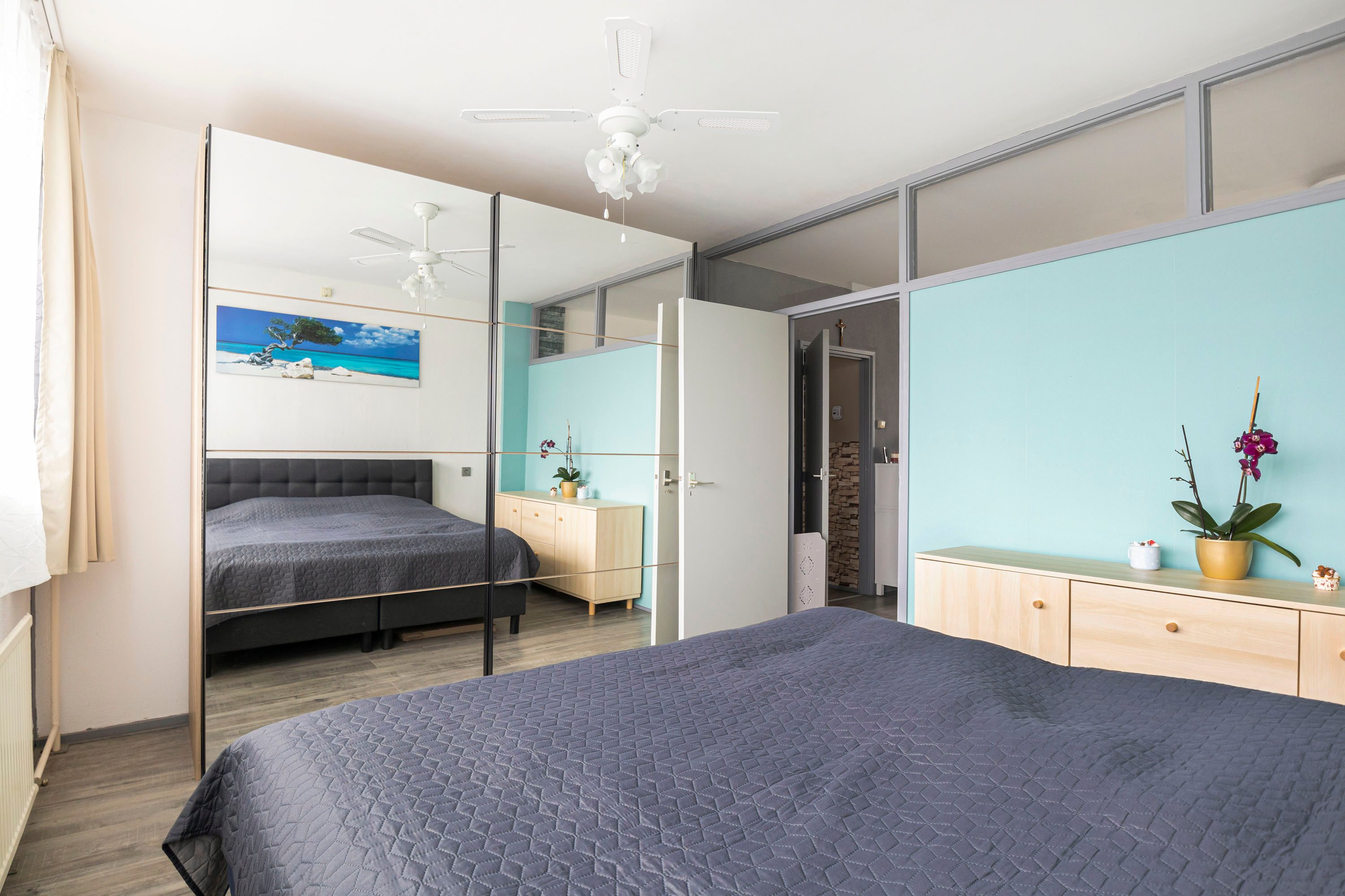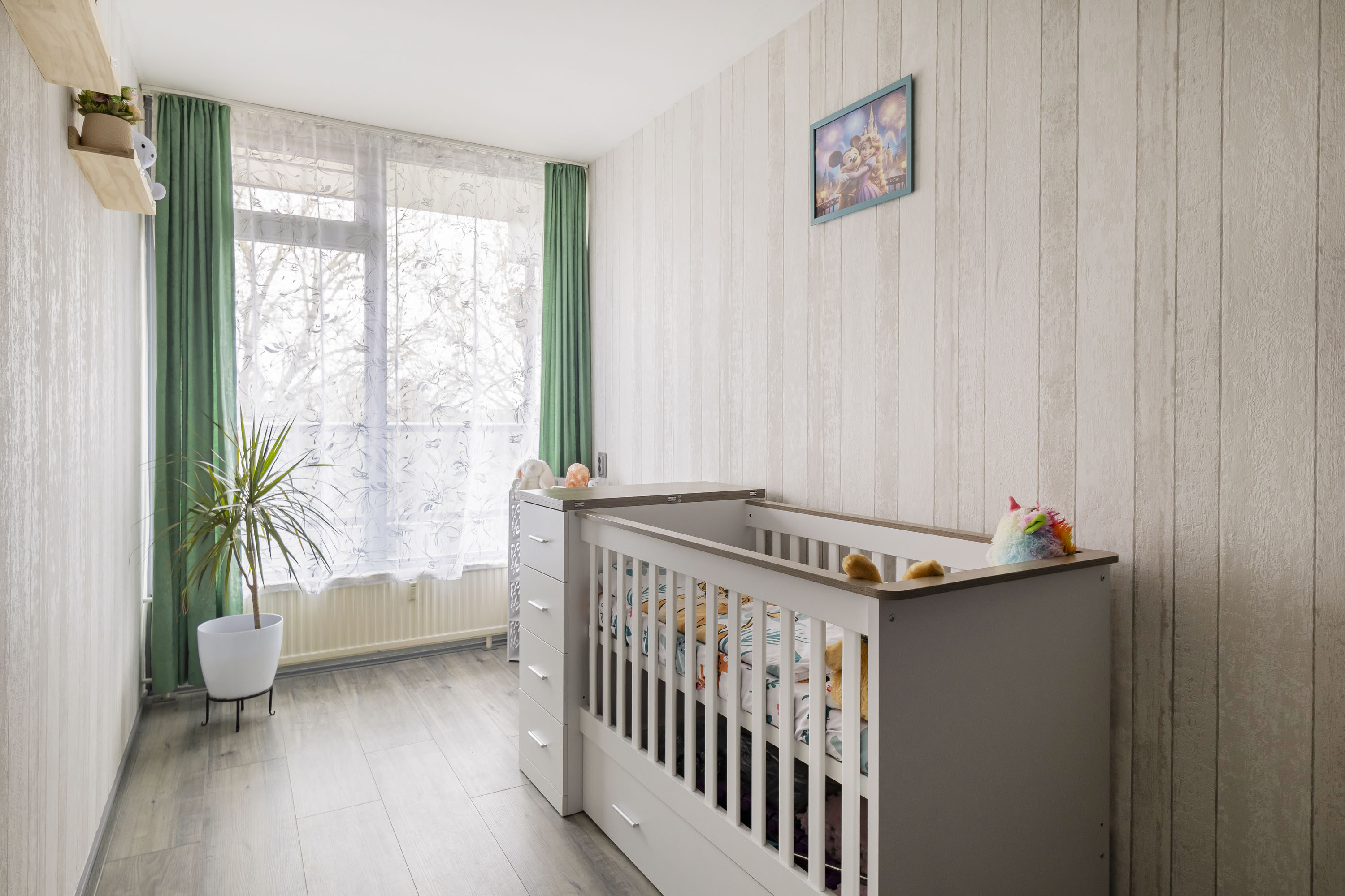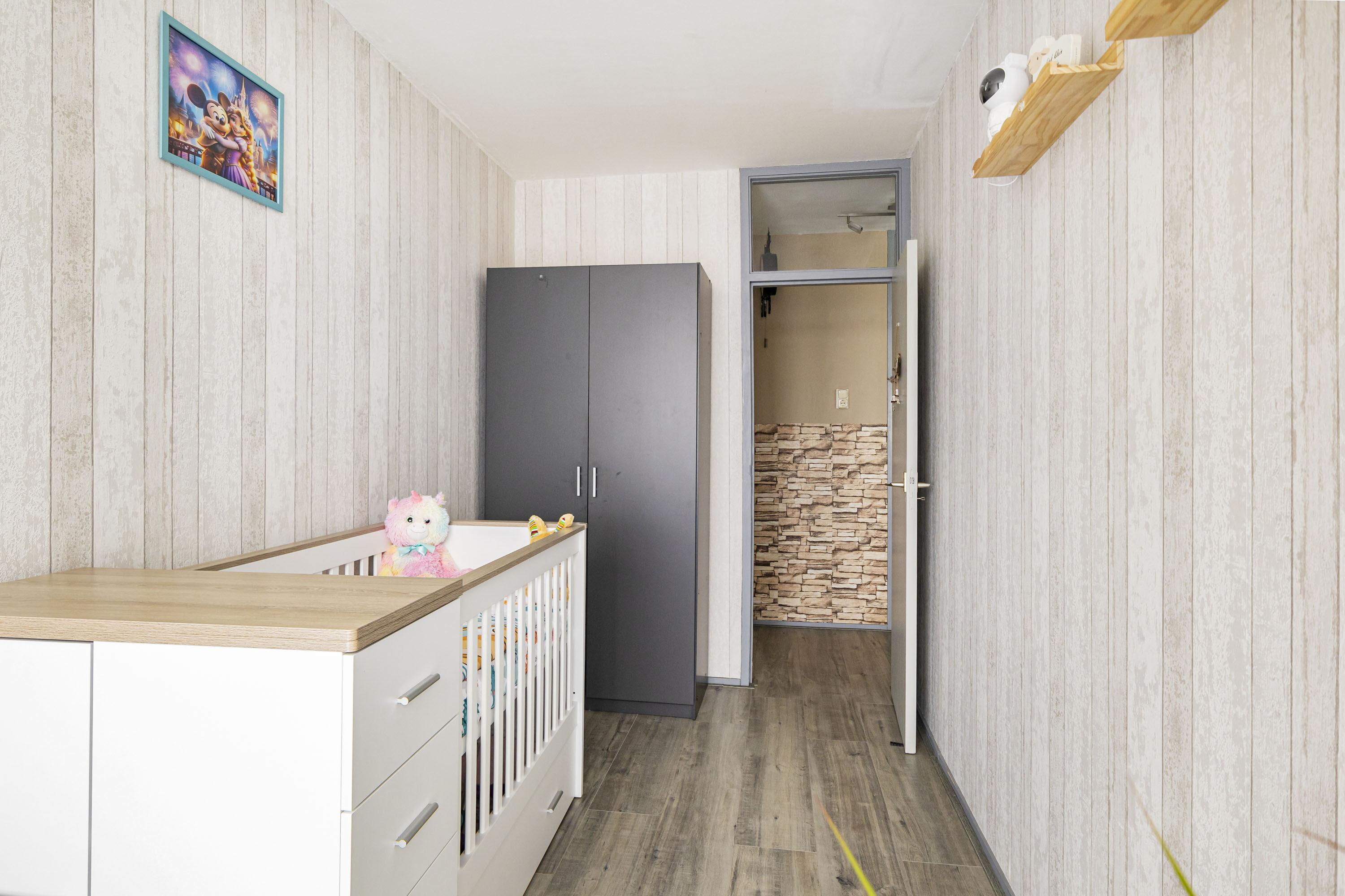 Het appartement telt drie slaapkamers van 13,9 m², 8,6 m² en 8,5 m². Alle kamers hebben een raam, en de grootste slaapkamer biedt bovendien voldoende ruimte voor een kastenwand. De badkamer van 3,1 m² is uitgerust met een wastafel, douche, planchet en aansluitingen voor de wasmachine en droger. Het toilet met fontein bevindt zich in de aangrenzende ruimte.