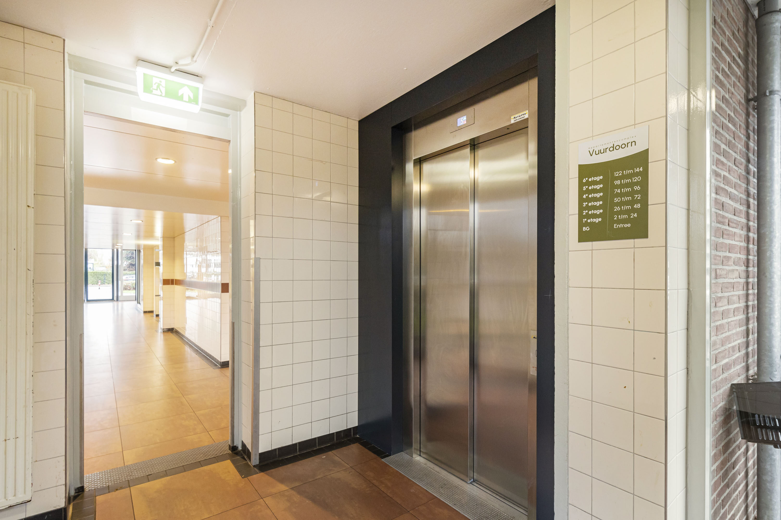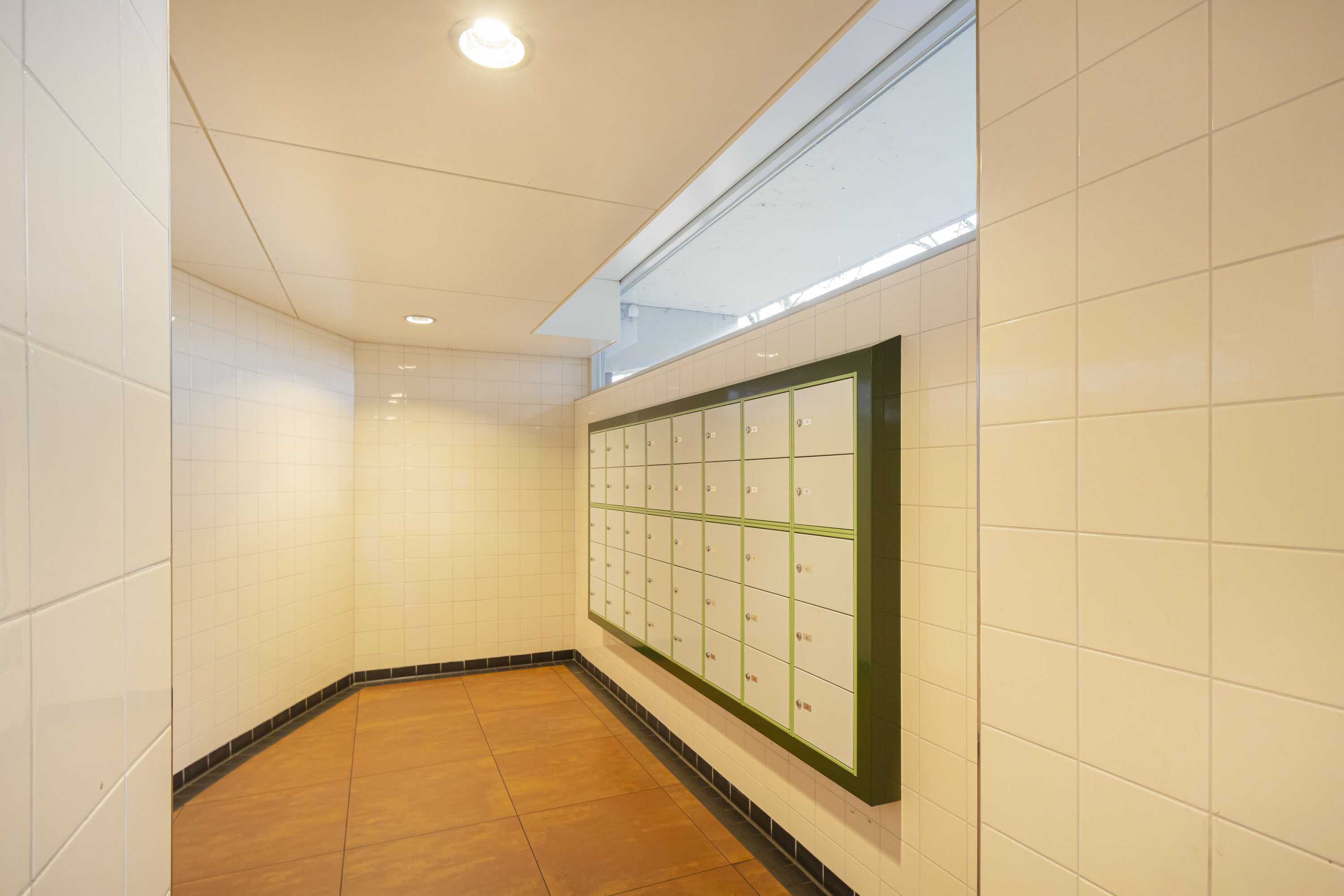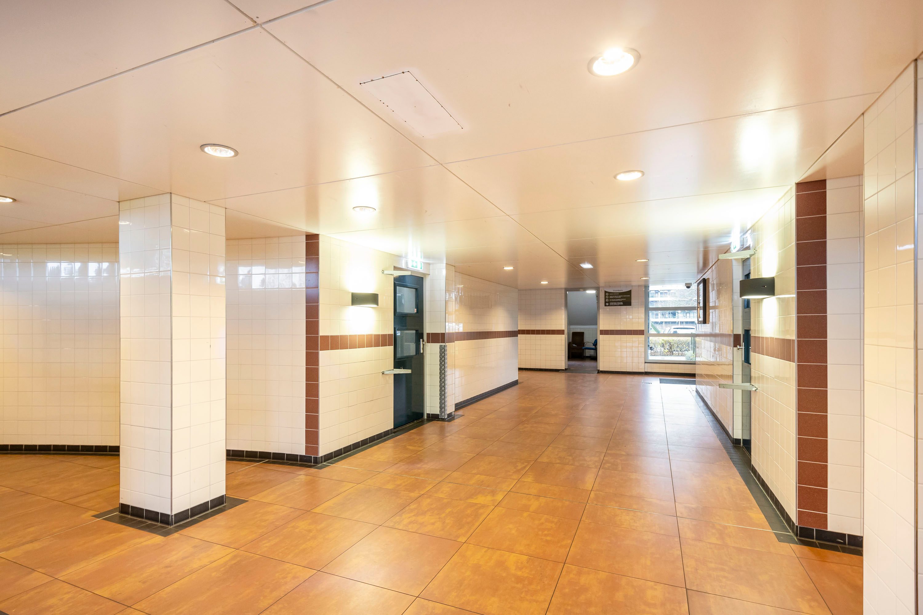 Door middel van de beveiligde entree kom je bij de centrale hal, waar je toegang hebt tot de lift maar ook tot de praktische berging in de onderbouw.
