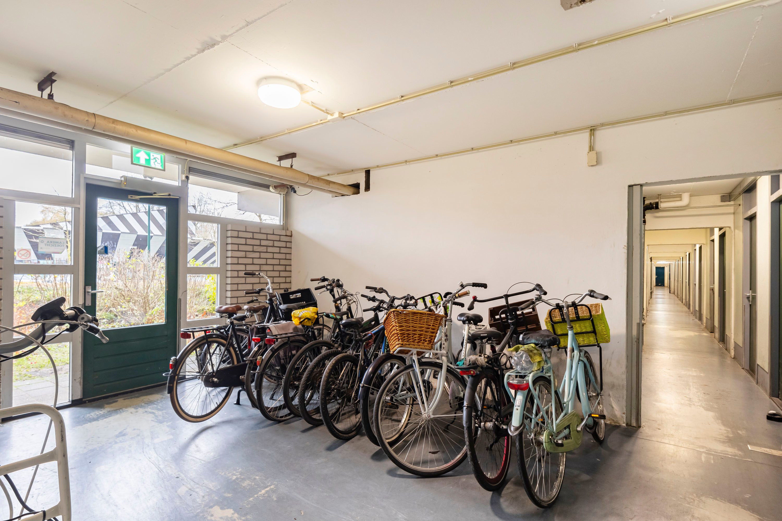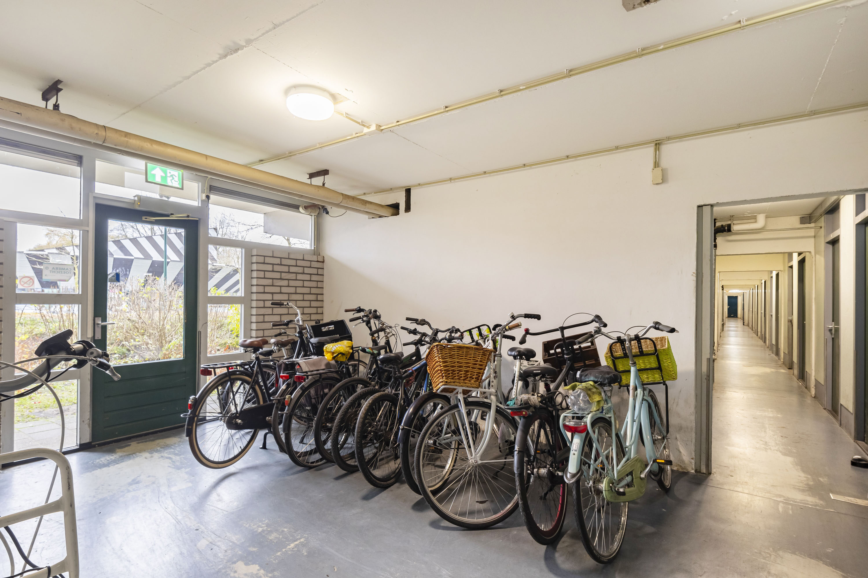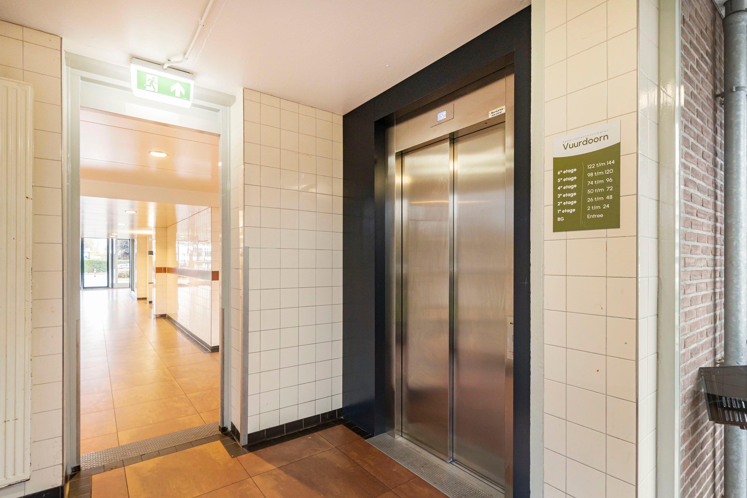 Door middel van de beveiligde entree kom je bij de centrale hal, waar je toegang hebt tot de lift maar ook tot de praktische berging in de onderbouw.