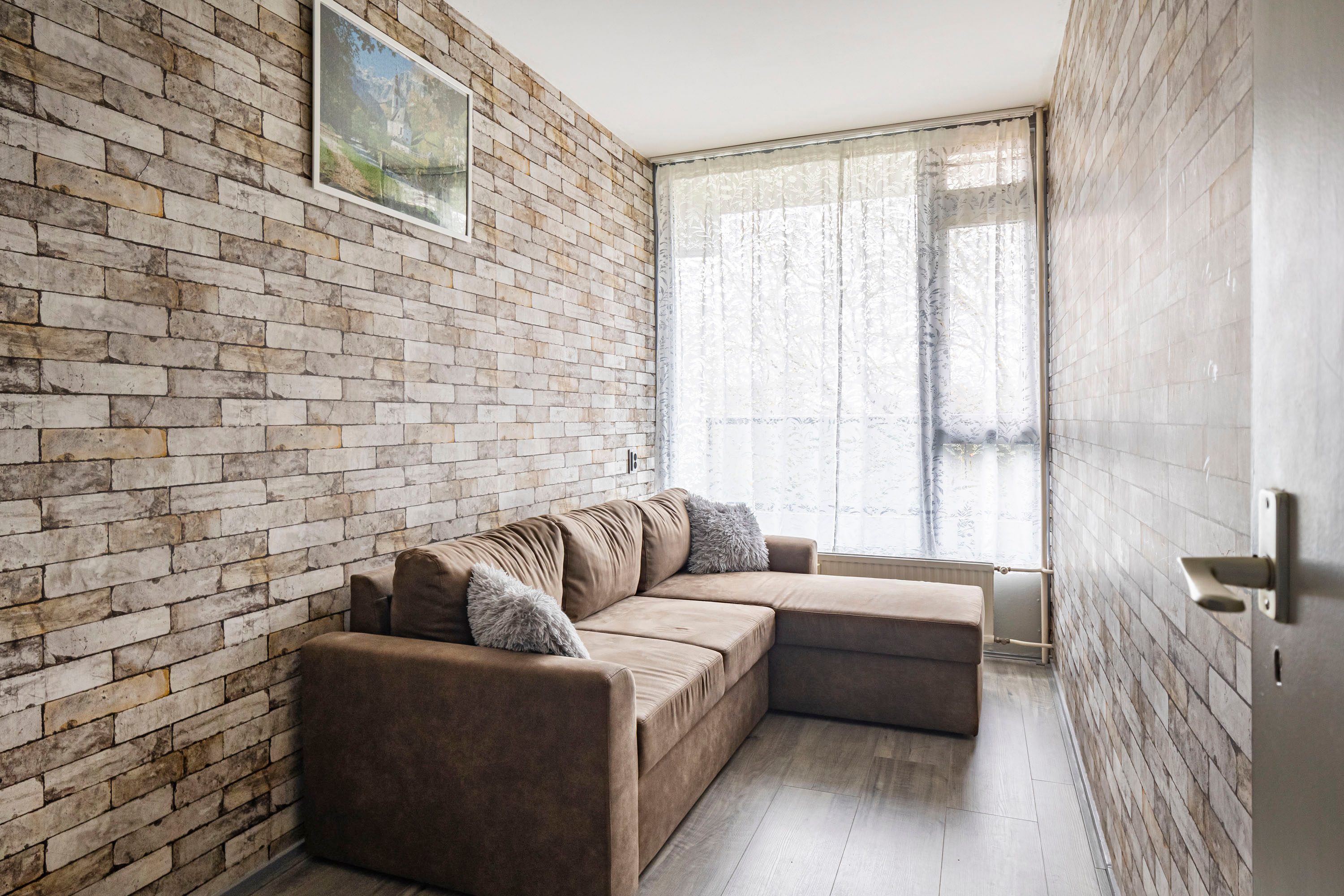 Door een lift of de trap kom je bij de 5de verdieping. Eenmaal aangekomen bij het appartement kom je via de entree, waar tevens de meterkast is gesitueerd, bereik je de ruime woonkamer van 25,5 m². Dankzij het grote raam aan de achterzijde valt er volop natuurlijk licht binnen. Er is voldoende ruimte voor een comfortabele hoekbank en het eetgedeelte is hier eveneens gesitueerd.