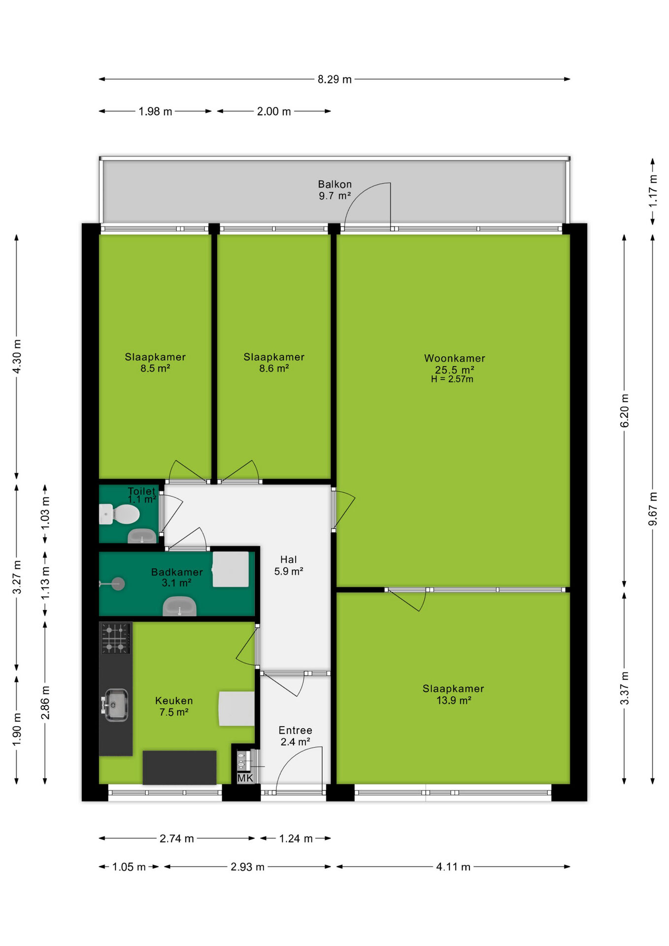- Balkonligging: Oost