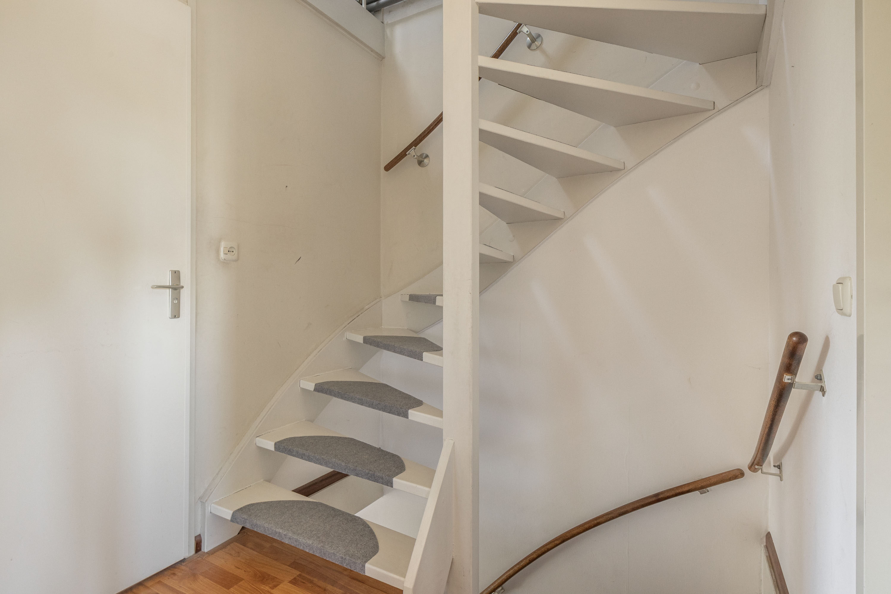 Met de vaste trap bereik je de tweede verdieping, waar je op de overloop voldoende bergruimte aantreft, naast de aansluitingen voor zowel de wasmachine als de droger. Ook vind je hier de vierde slaapkamer van 10,6 m², die dankzij de dakkapellen verzekerd is van veel natuurlijk licht. Deze veelzijdige kamer kan tevens dienstdoen als sport- of werkkamer.