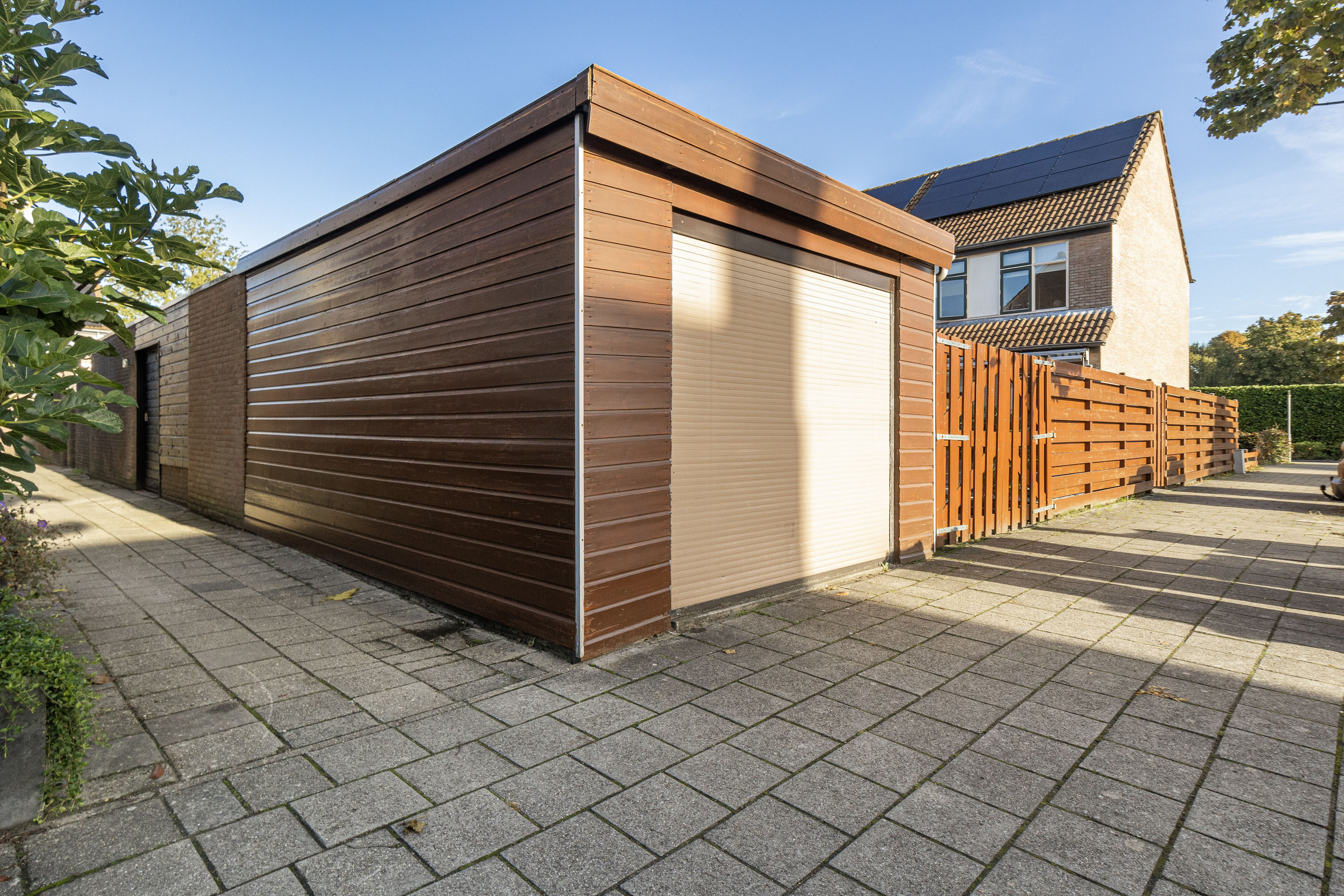 De royale, op het zuidwesten gelegen tuin is zowel vanuit de woonkamer als via de achterom toegankelijk. De tuin biedt volop mogelijkheden om een fijne loungehoek en een speelhoek voor de kinderen te creëren. Aan de achterzijde is tevens een overkapping, berging van 5,8 m² en garage van 17,6 m² aanwezig, die via de zijkant bereikbaar is en ideaal is voor het parkeren van de auto of het opbergen van diverse spullen.