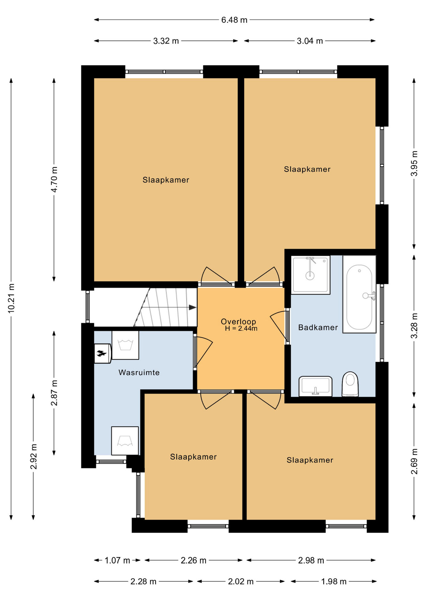 - Vier ruime slaapkamers en een grote complete badkamer.