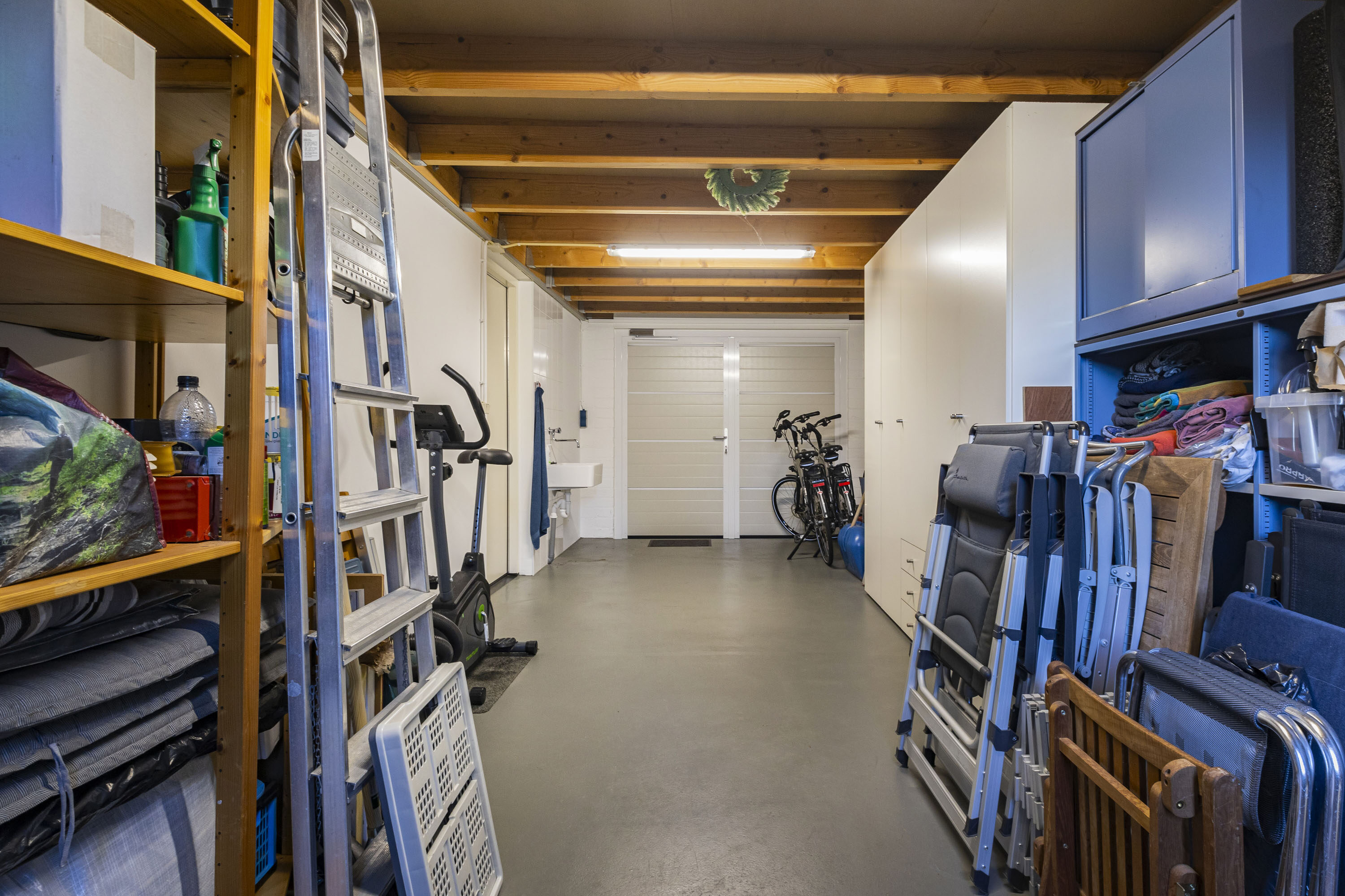 - Grote (23 m2) inpandig bereikbare garage met uitstortgootsteen en Hormann geïsoleerde dubbele deuren.