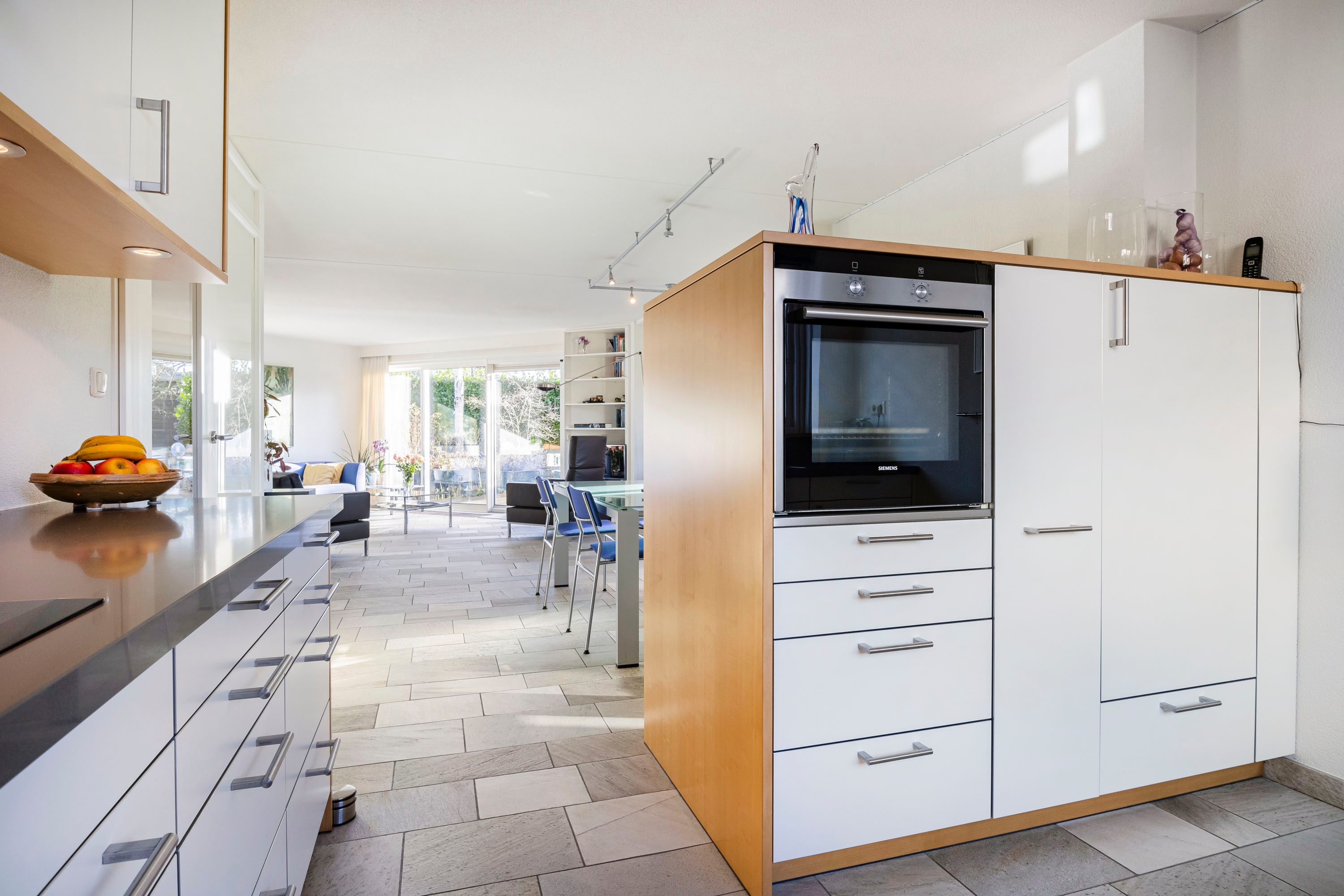 half hoge kastenwand met vernieuwde Siemens inbouwapparatuur, waarvan de vaatwasser in 2025 is vernieuwd.