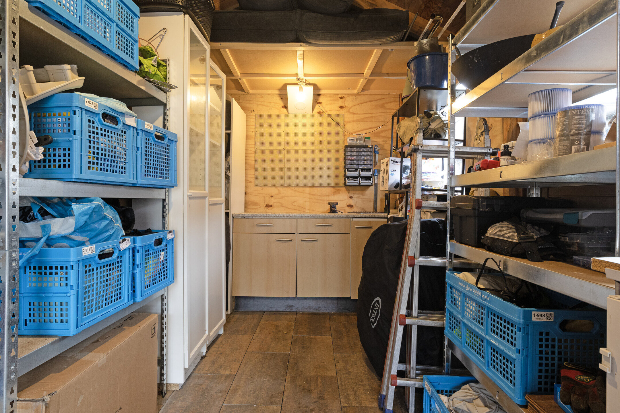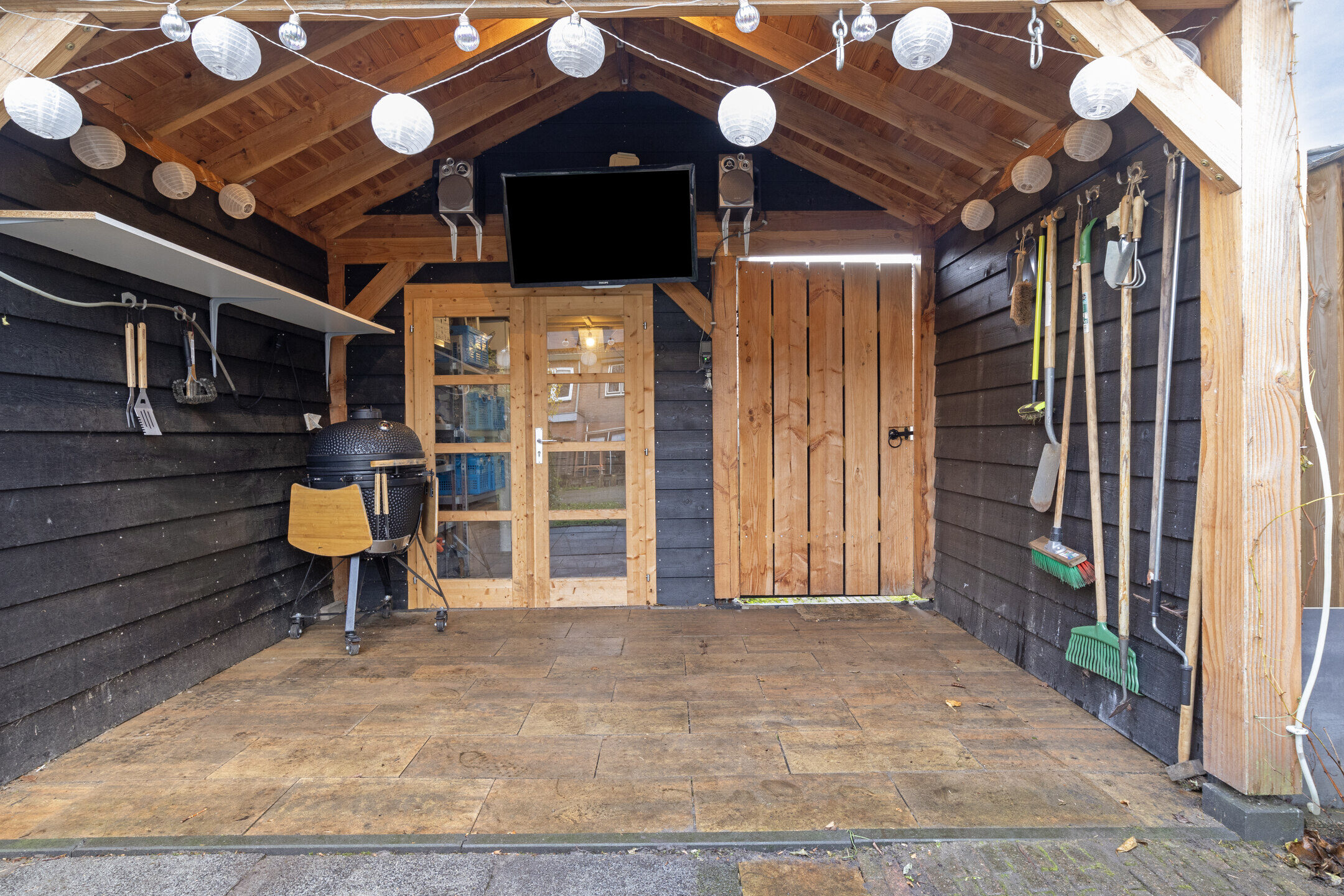 Achter de woning ligt een heerlijk diepe en zonnige tuin, die veel vrijheid biedt. De tuin is op het oosten gelegen, waardoor u hier van veel zonuren kunt genieten. Achterin de tuin staat twee bergingen. Hiervan wordt er één gebruikt voor de fietsen en de 2e voor opslag van gereedschap en andere spullen. Uiteraard mag een gezellige veranda niet ontbreken!