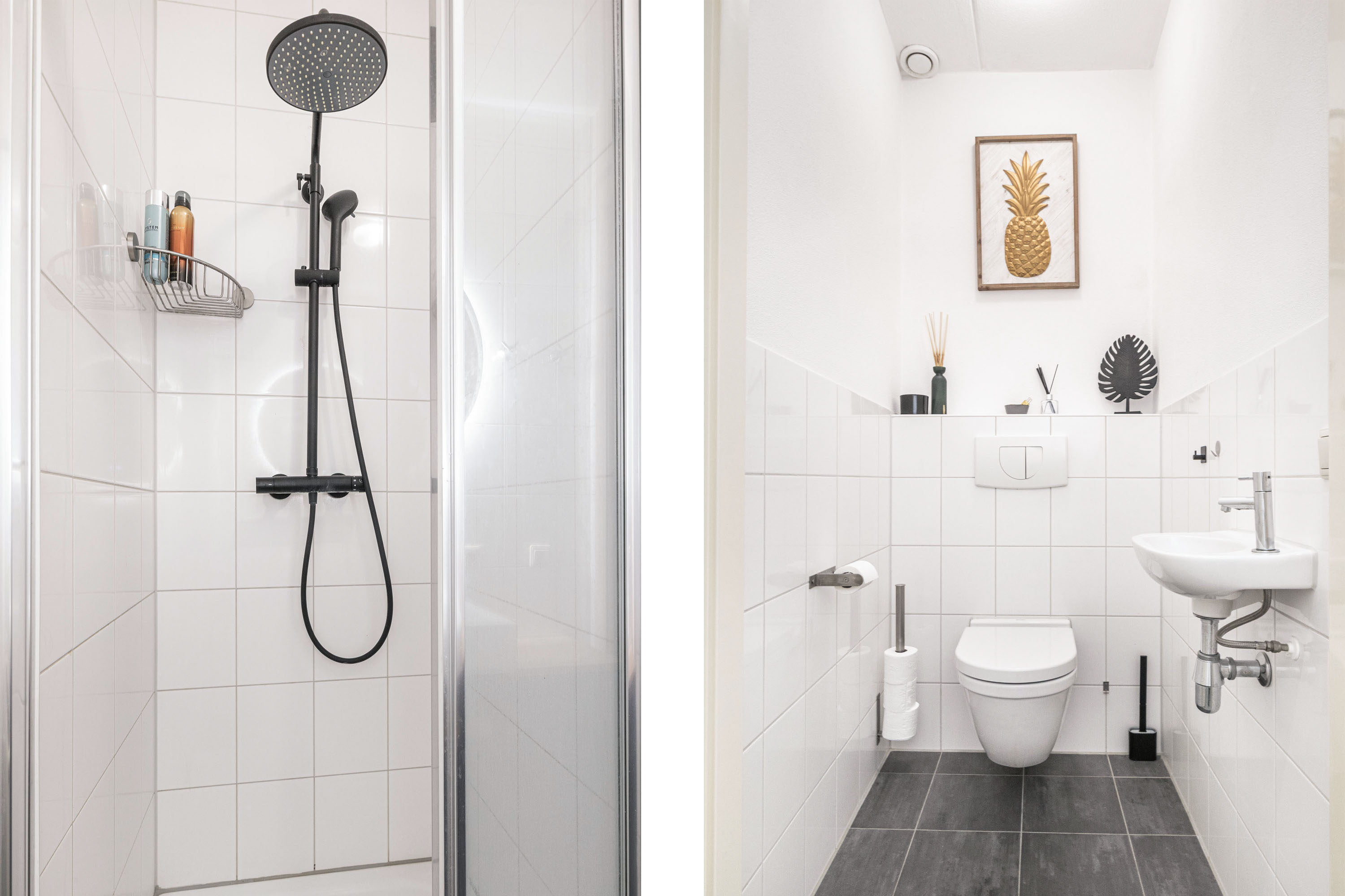 Het appartement beschikt verder over een slaapkamer van 9,4 m² met raampartij, en een ruime badkamer van 3 m². Deze badkamer is voorzien van een royaal wastafelmeubel, een stortdouche en een planchet. Tevens zijn hier de aansluitingen voor de wasmachine en droger aanwezig. Het aparte toilet bevindt zich in een aangrenzende ruimte. Tot slot is er een tweede kamer welke nu in gebruik is als inpandige berging van 4,4 m², ideaal voor extra opslagruimte.